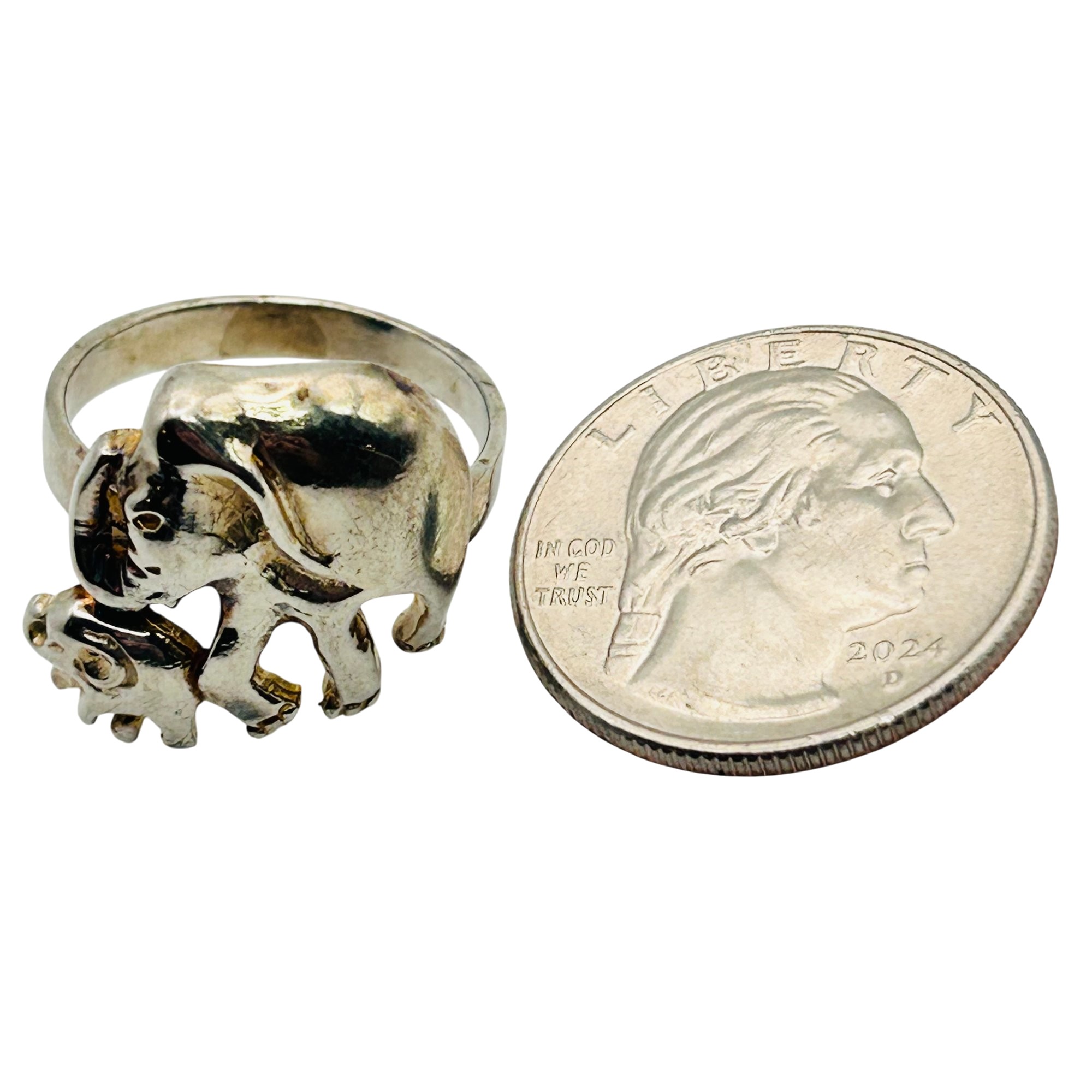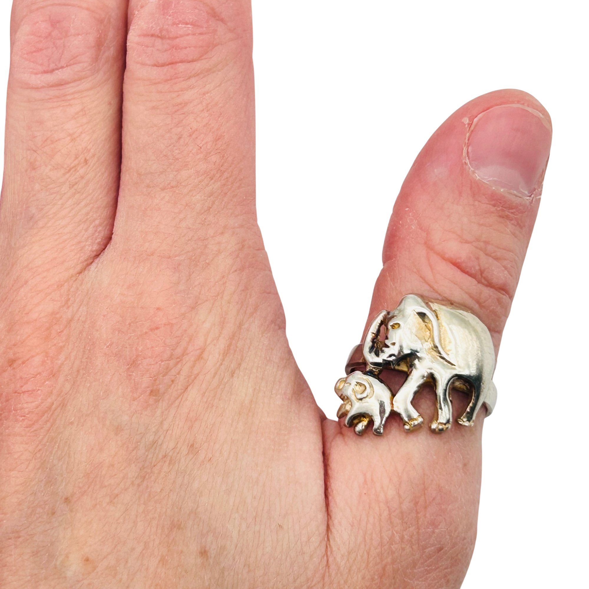 Sterling mom and baby elephant ring. Size 8.5. 6.69 g.