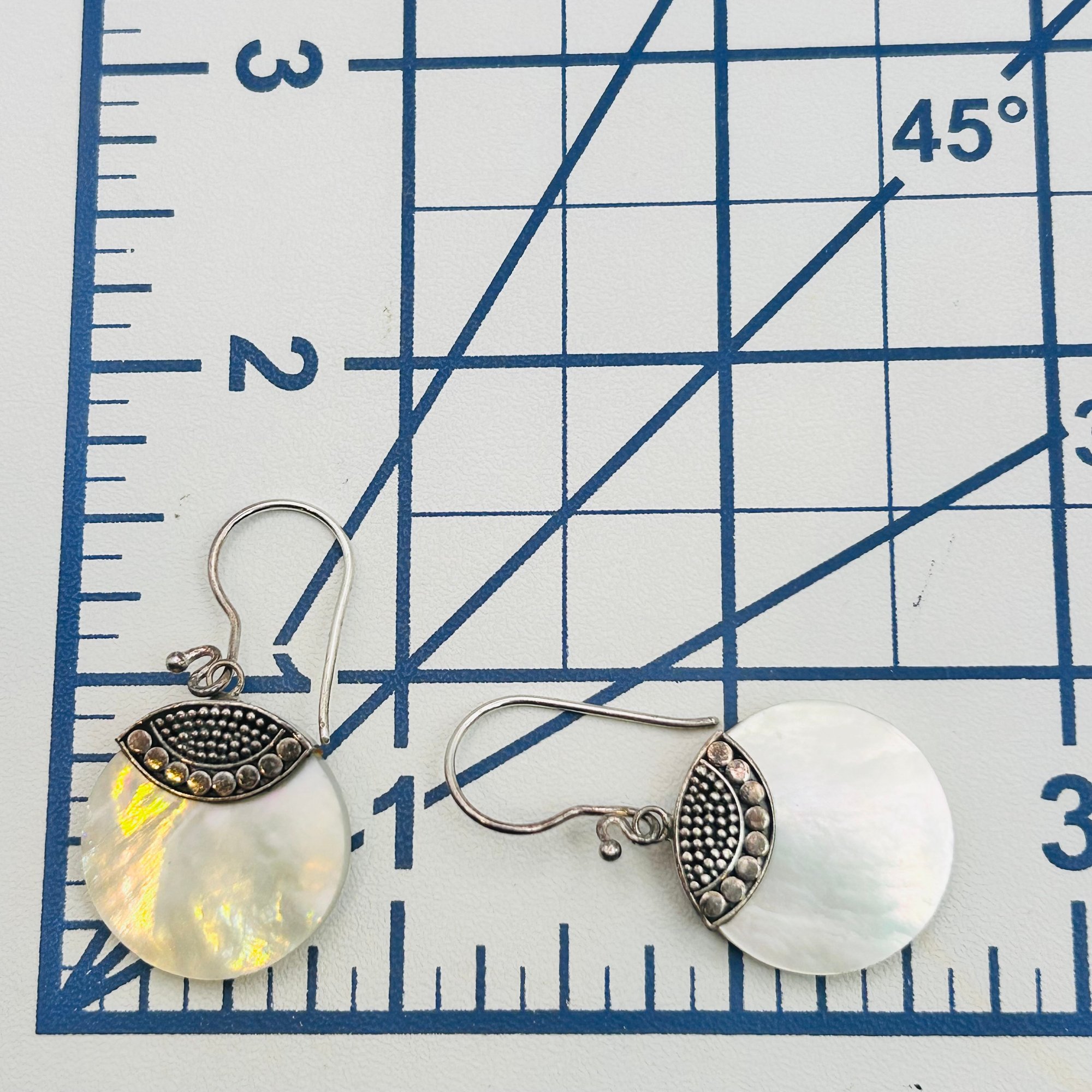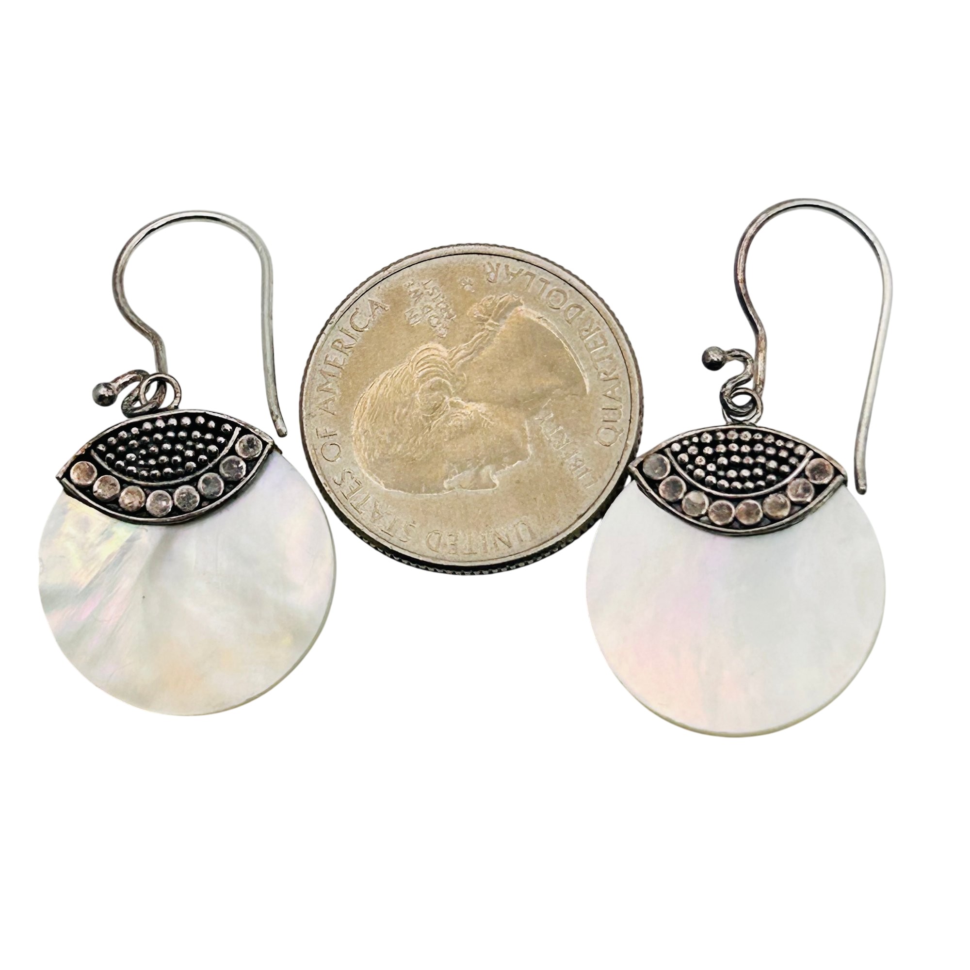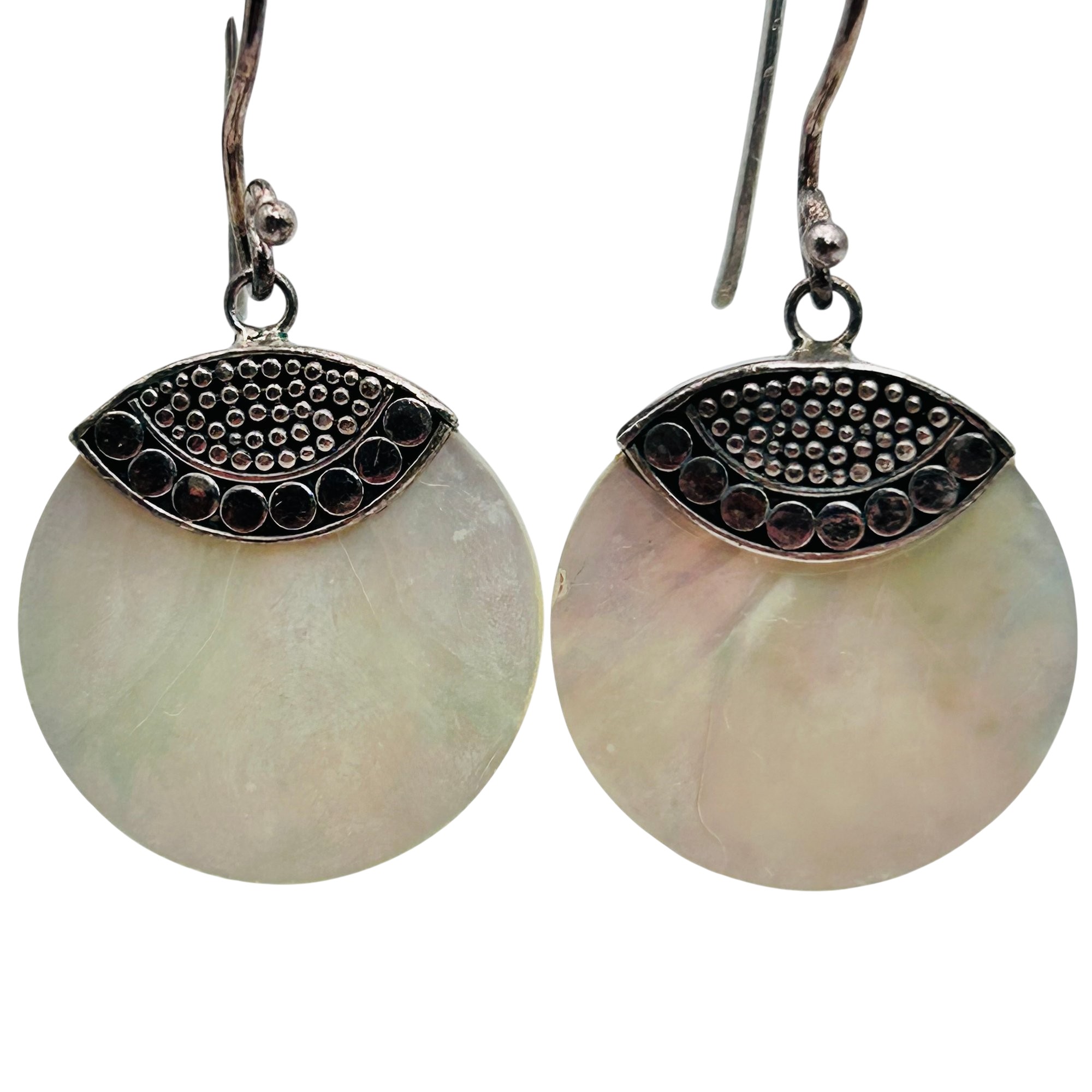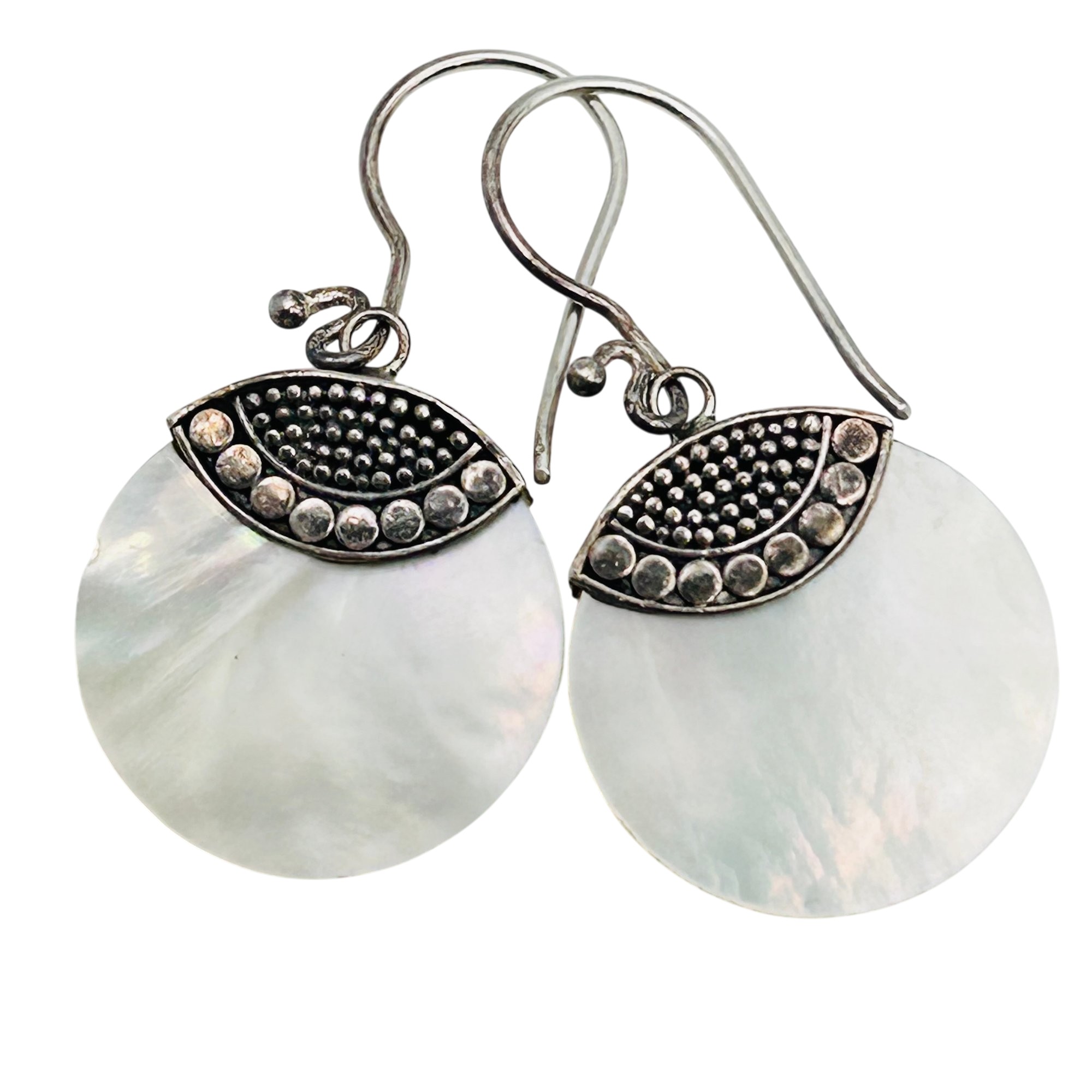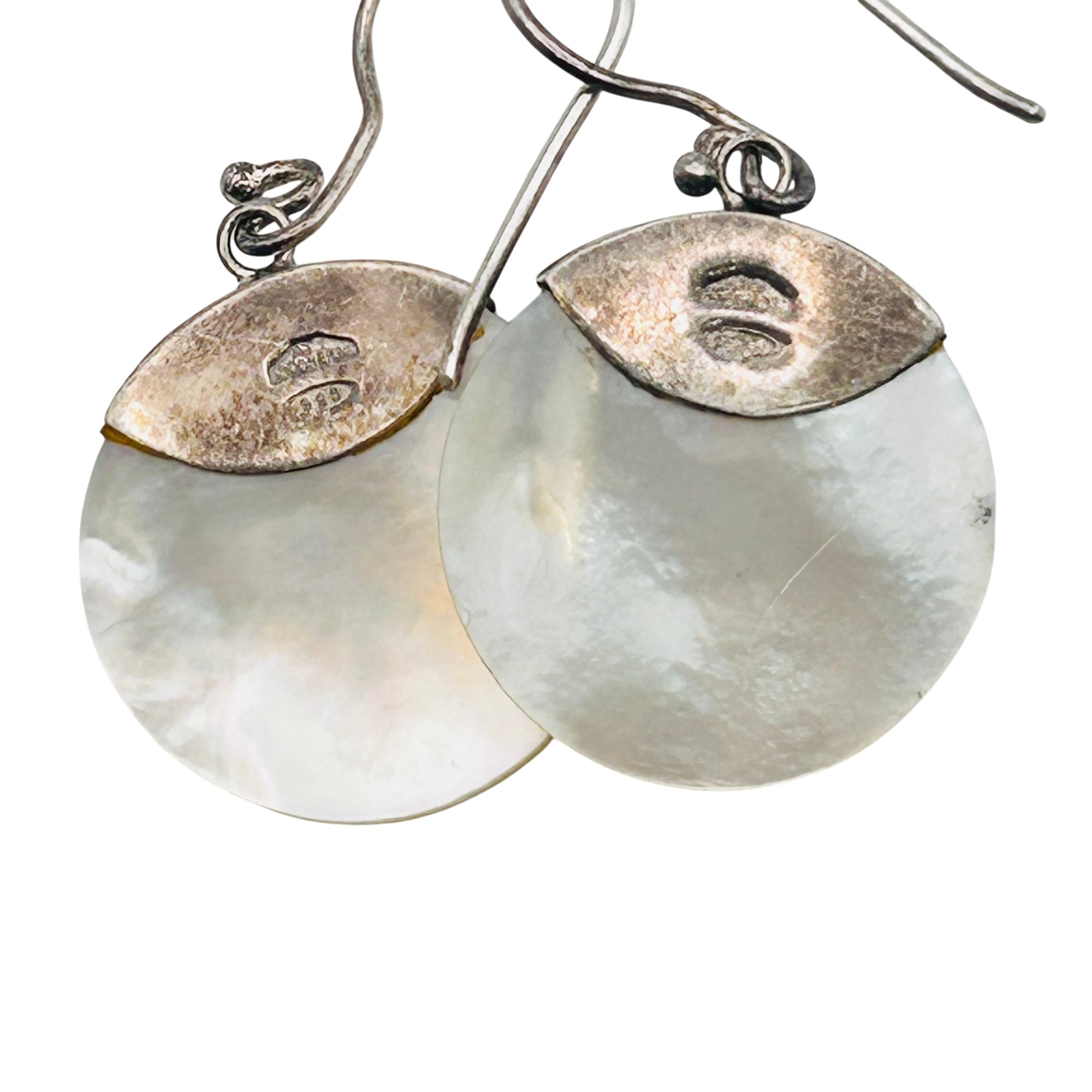 ATI Sterling mother of pearl round hook back earrings. 6.9g