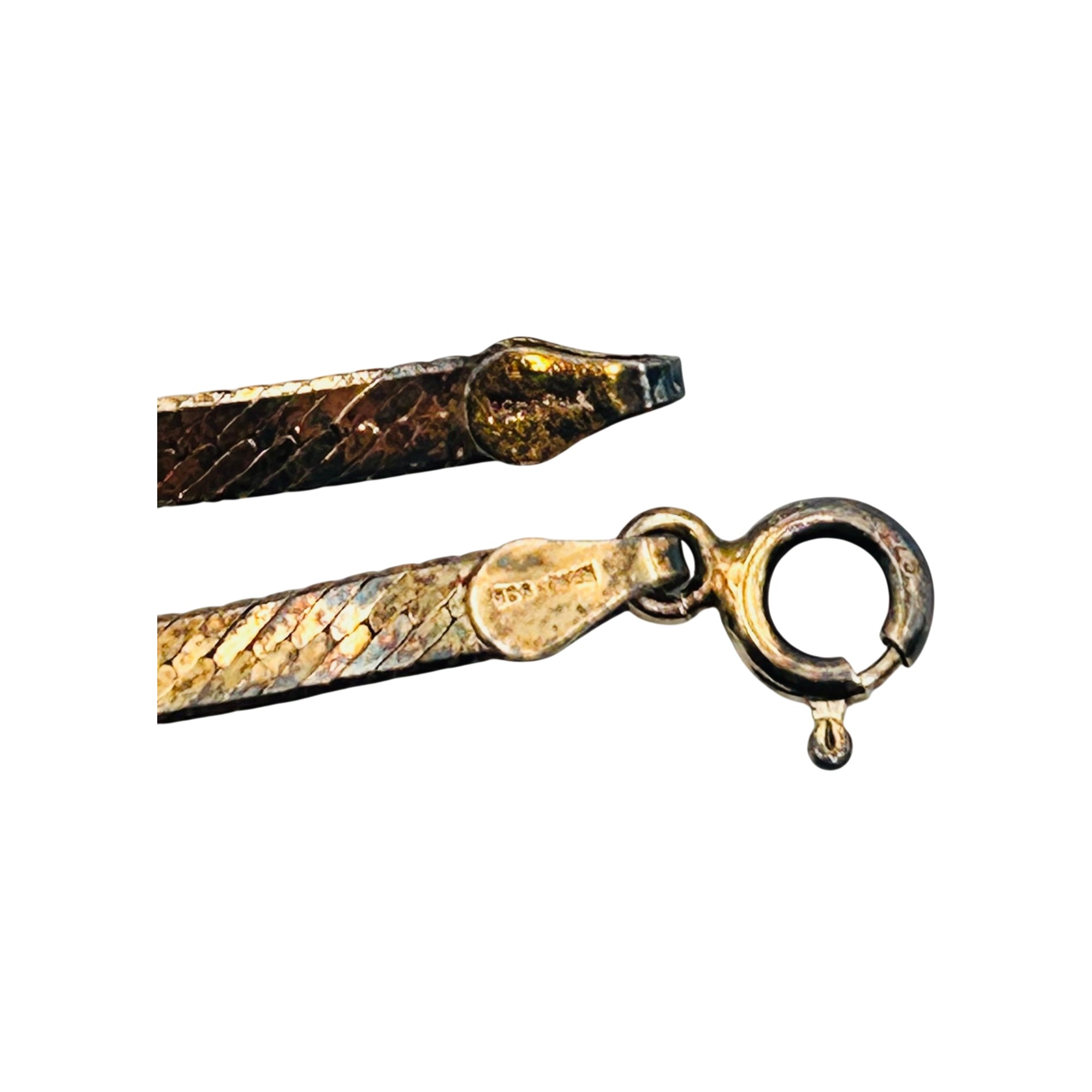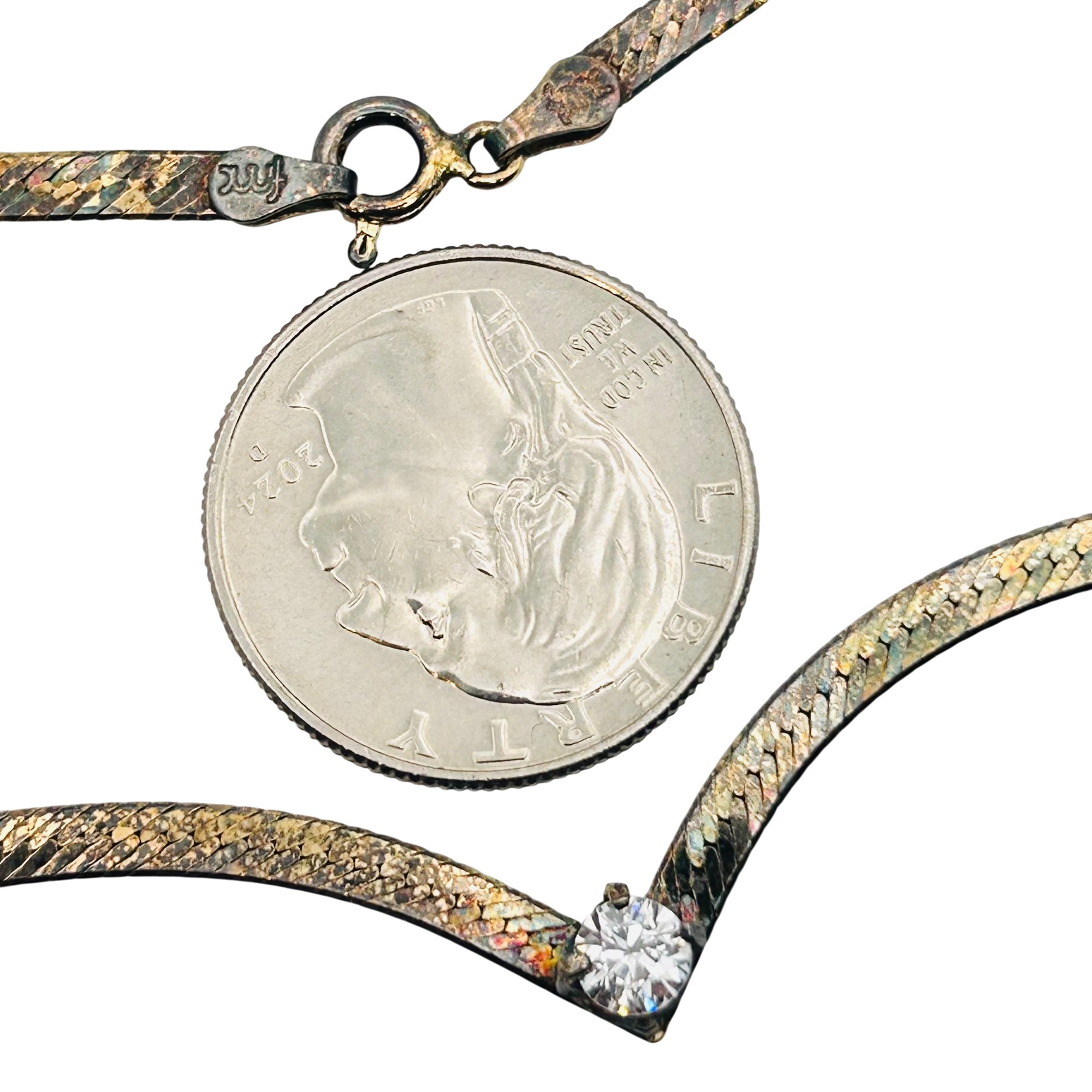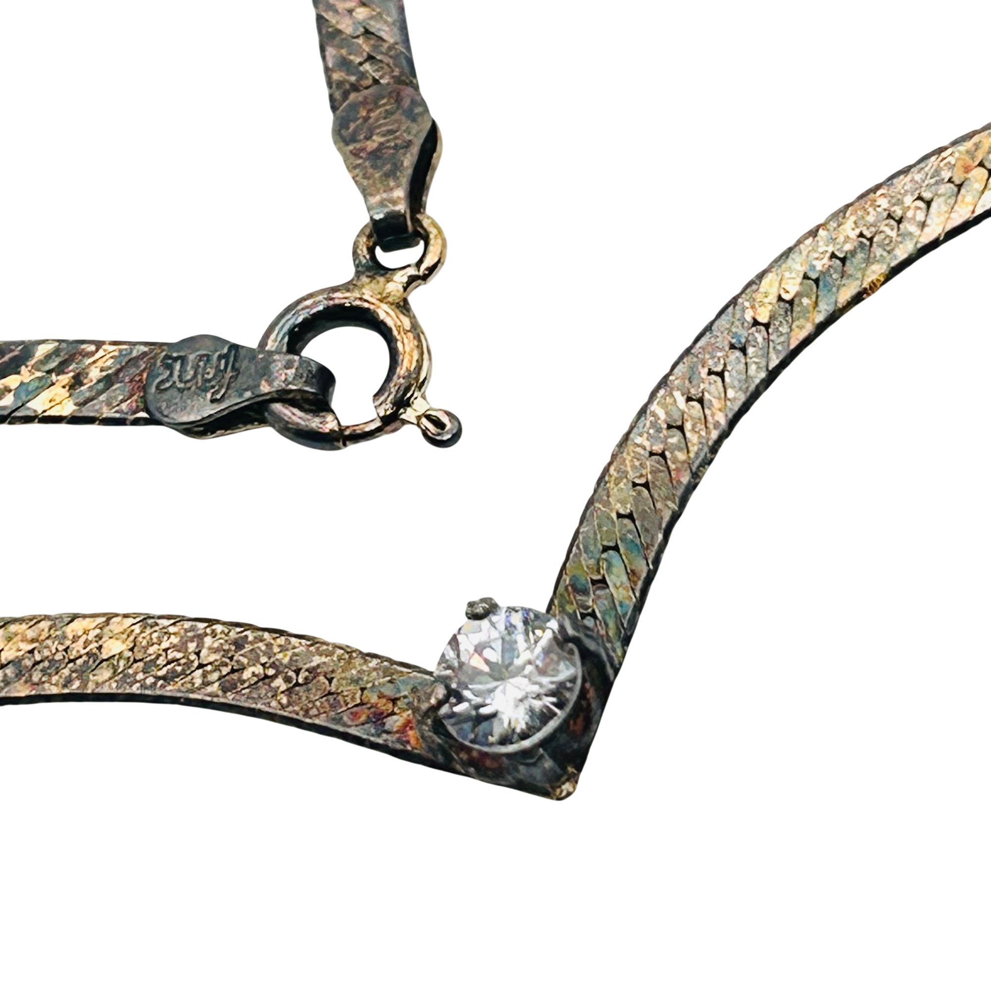 FMC Italy Sterling flat new chain clear stone pendant. Flat snake chain Necklace. 6.40g. 17 inches.