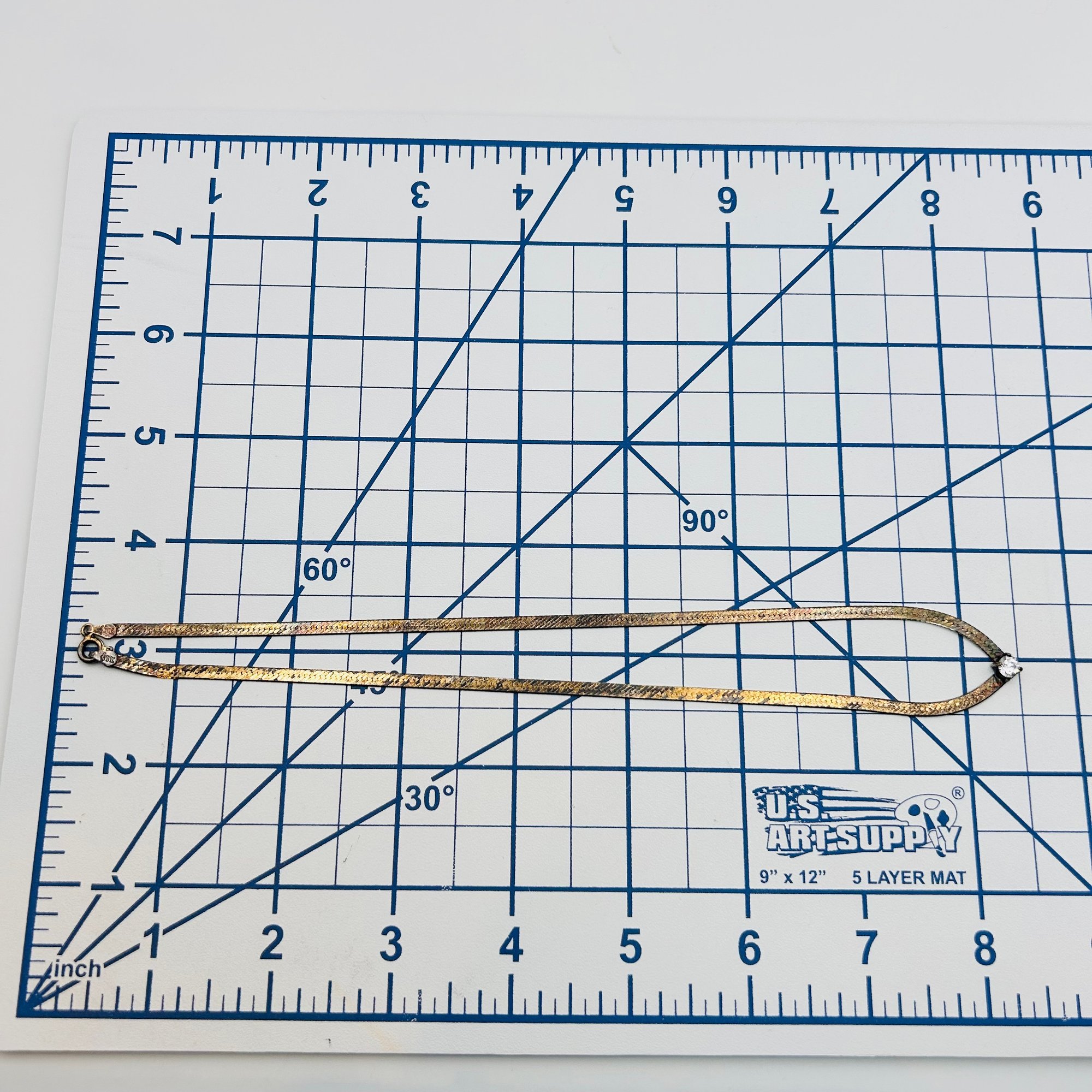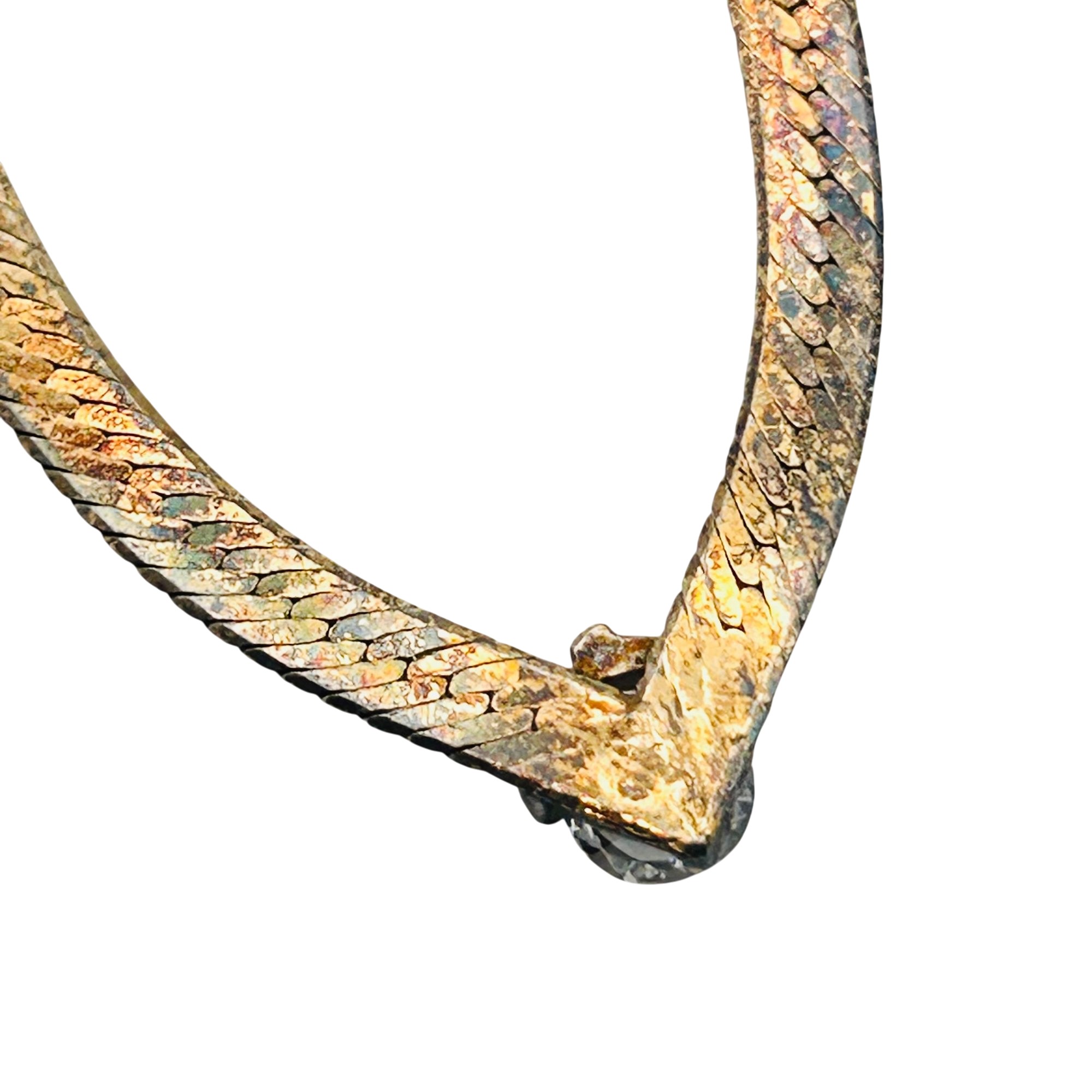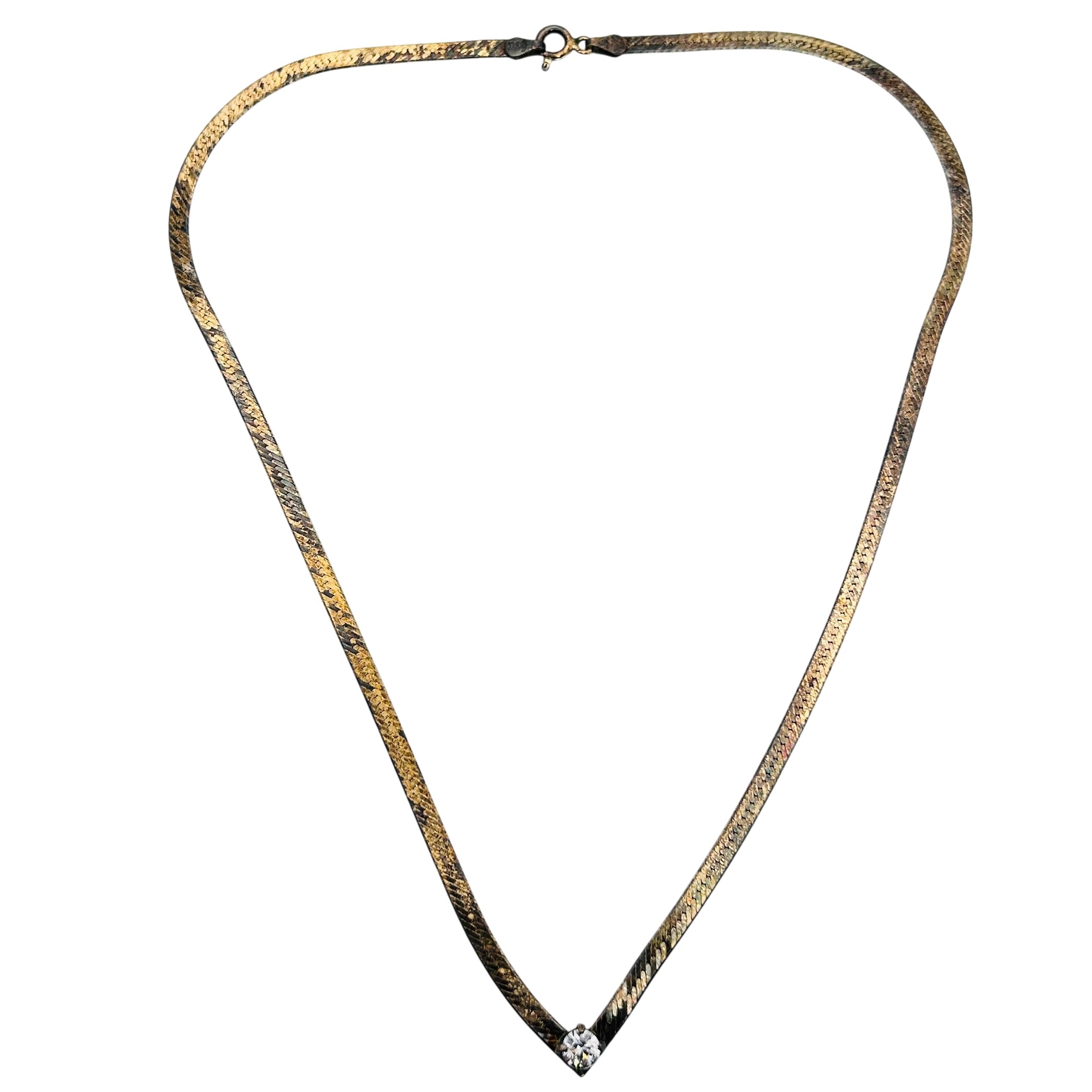 FMC Italy Sterling flat new chain clear stone pendant. Flat snake chain Necklace. 6.40g. 17 inches.