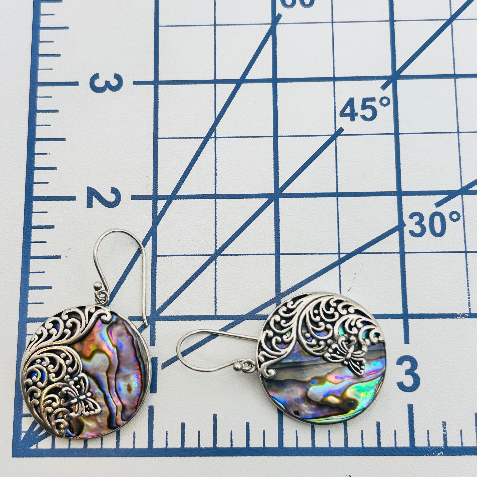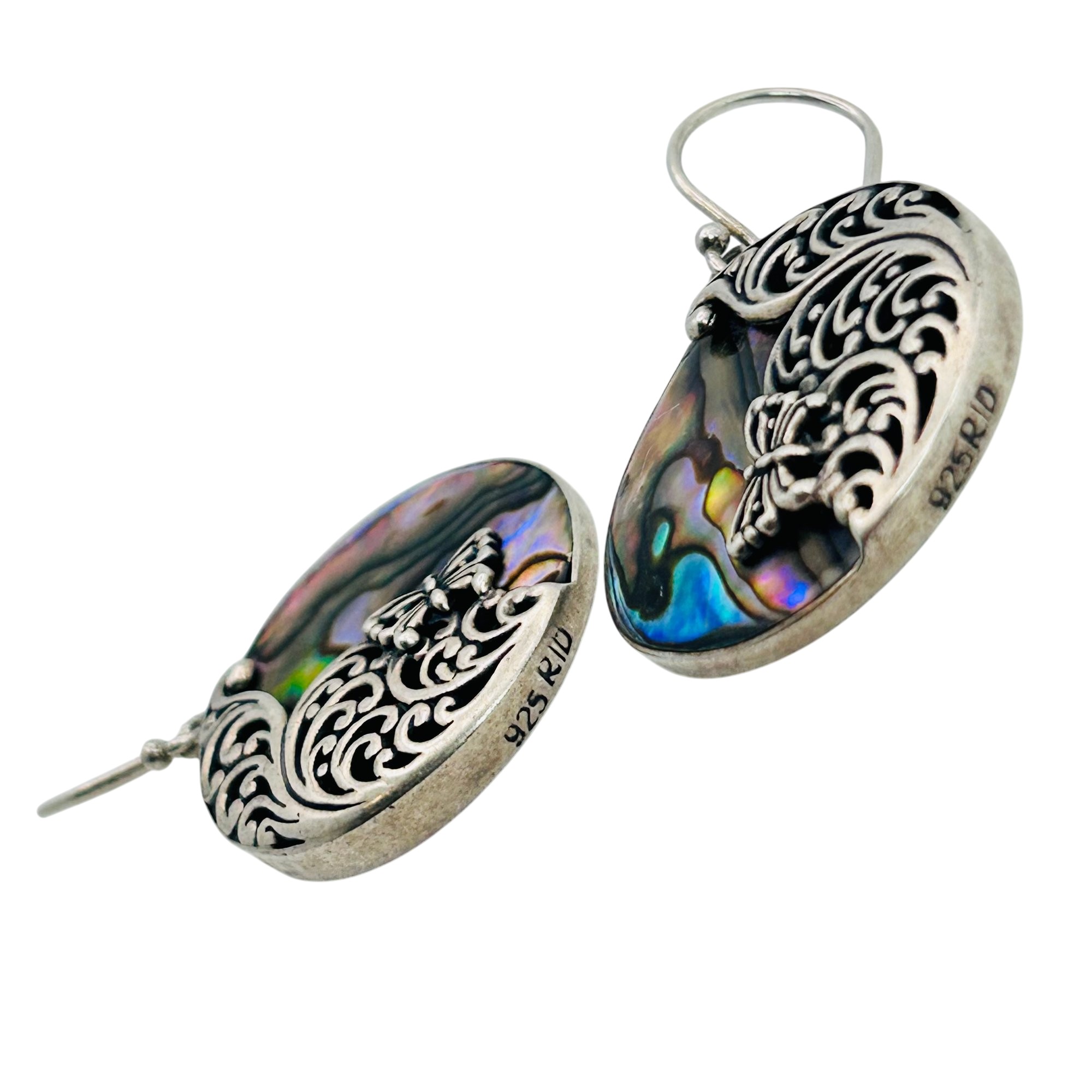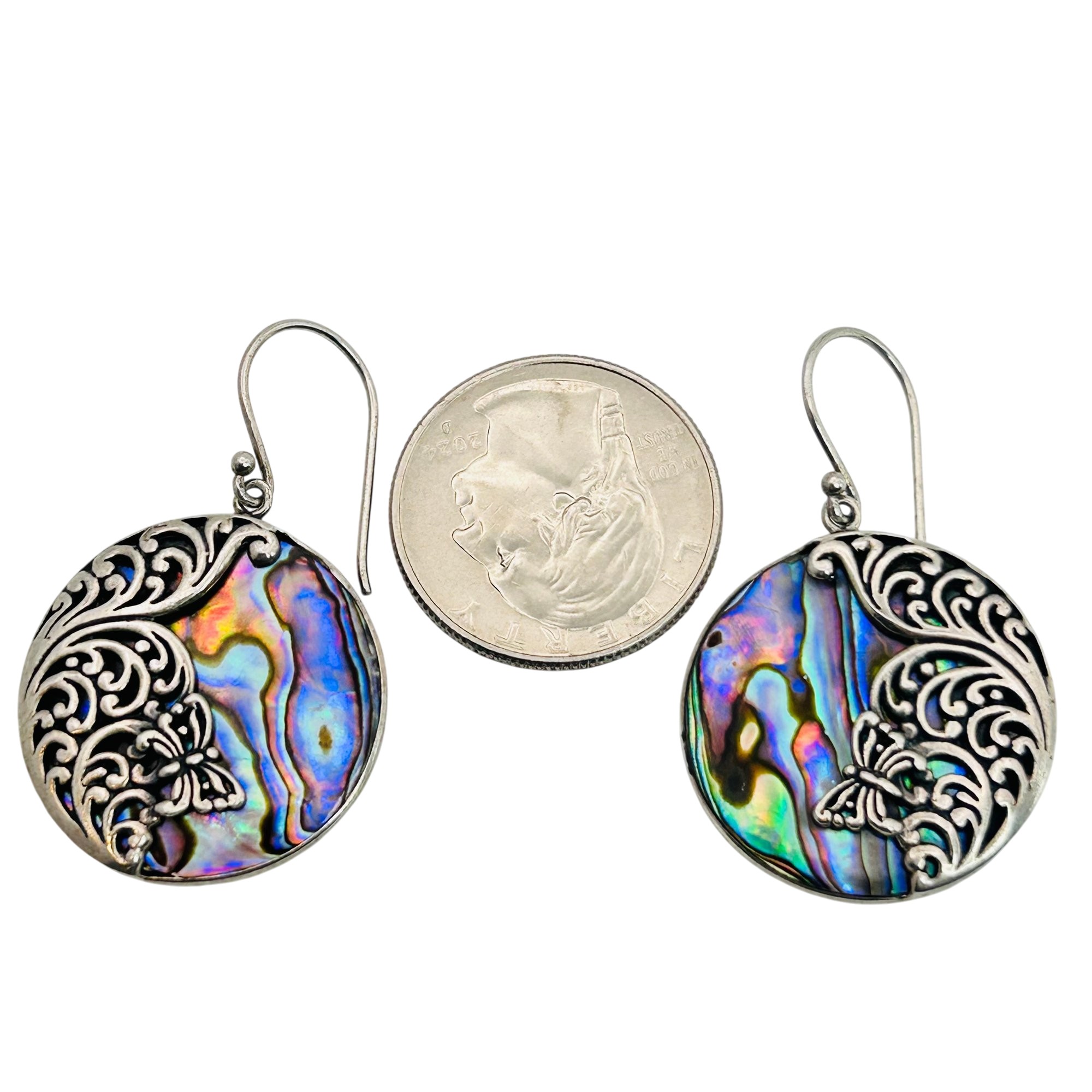 RID ABALONE Sterling round dangle earrings. 9.84 g.