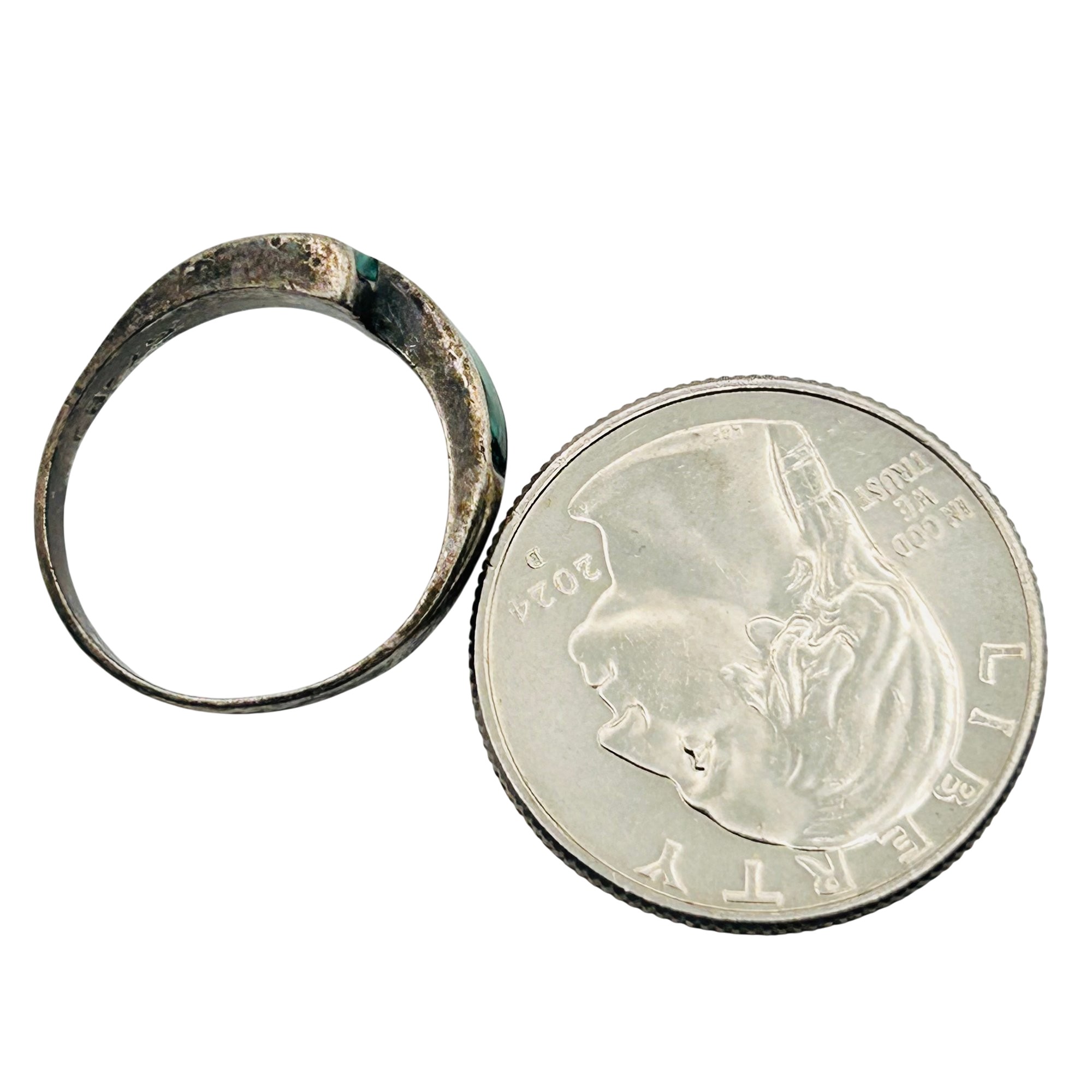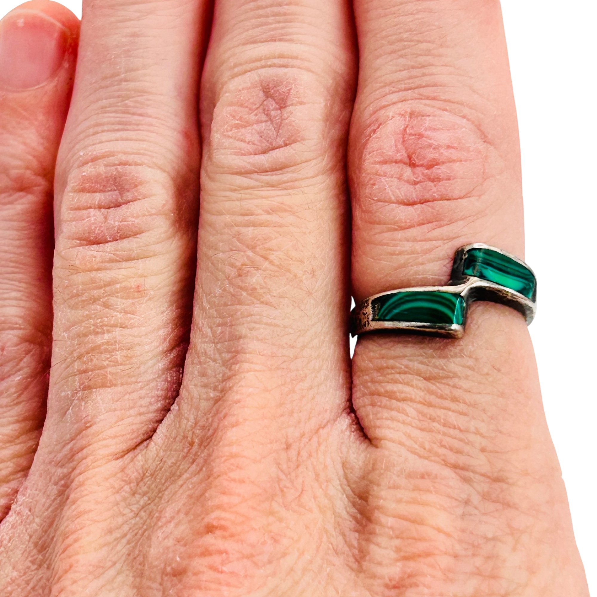 Mexico MALACHITE sterling ring. Size 6. 2.35g