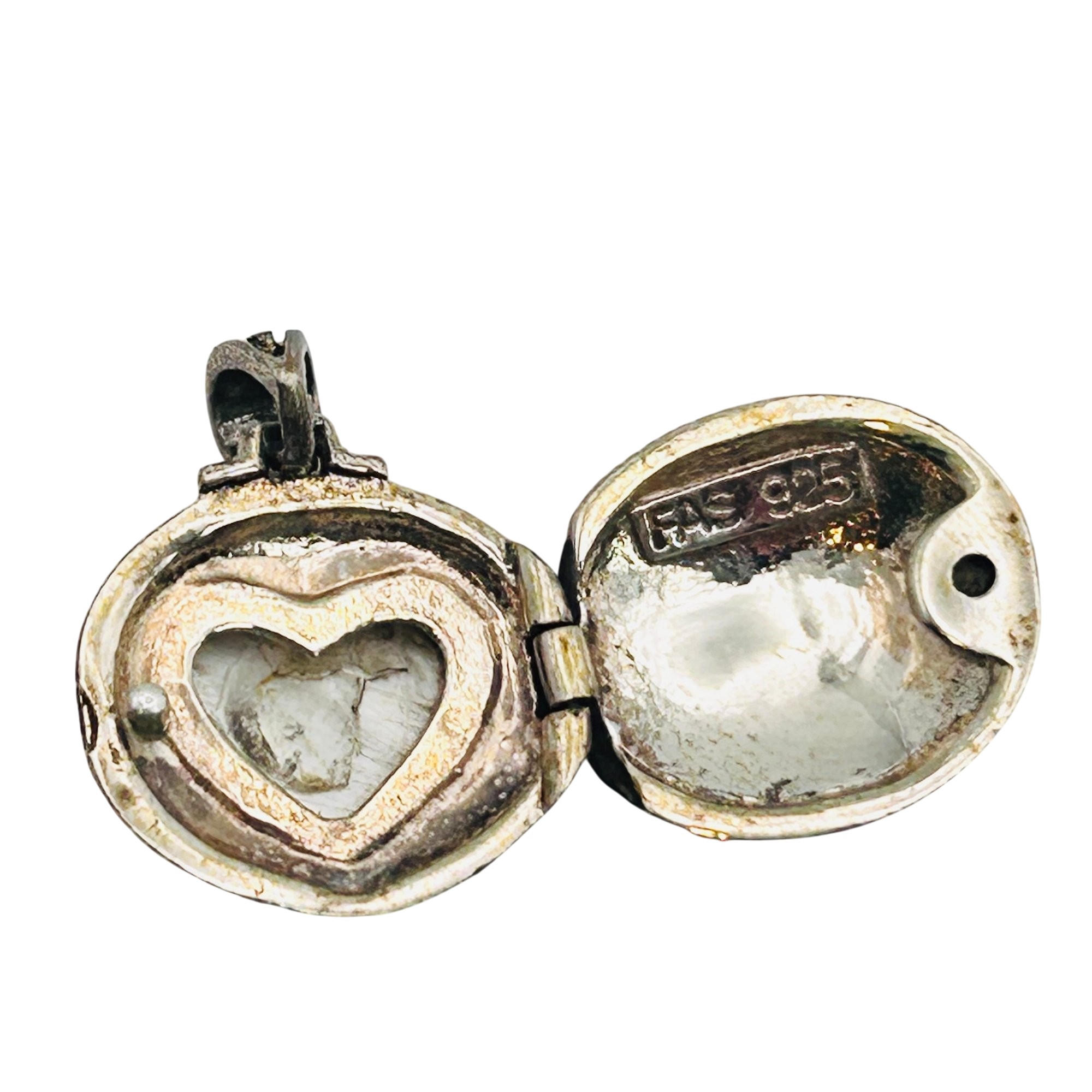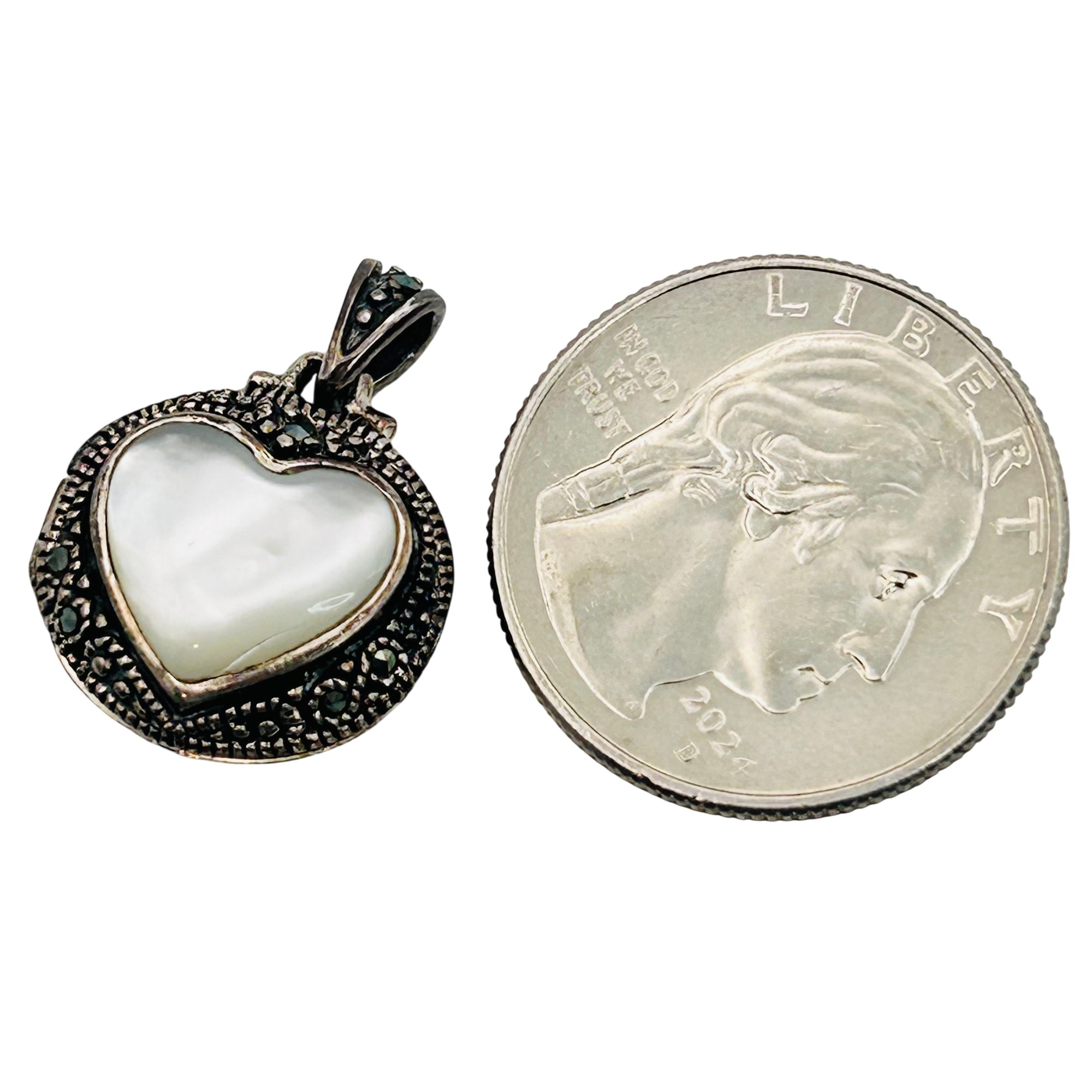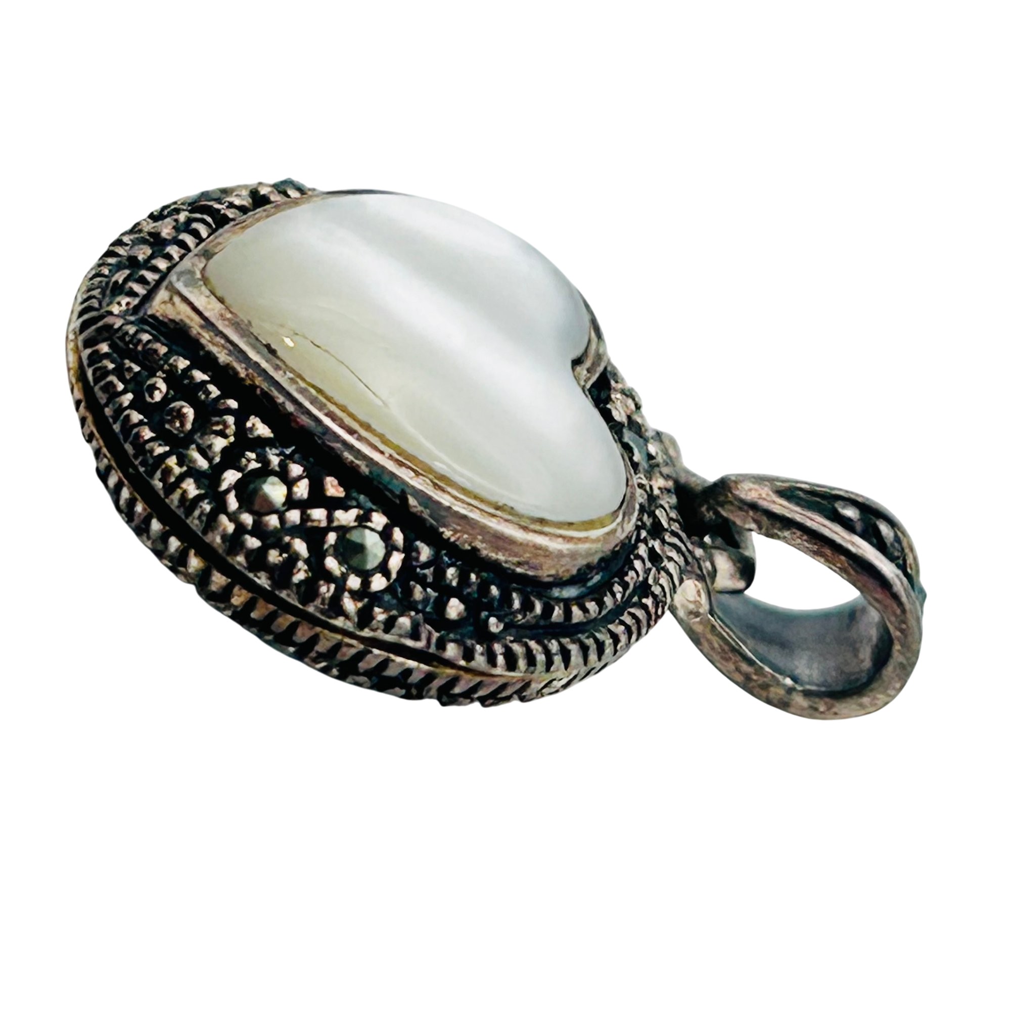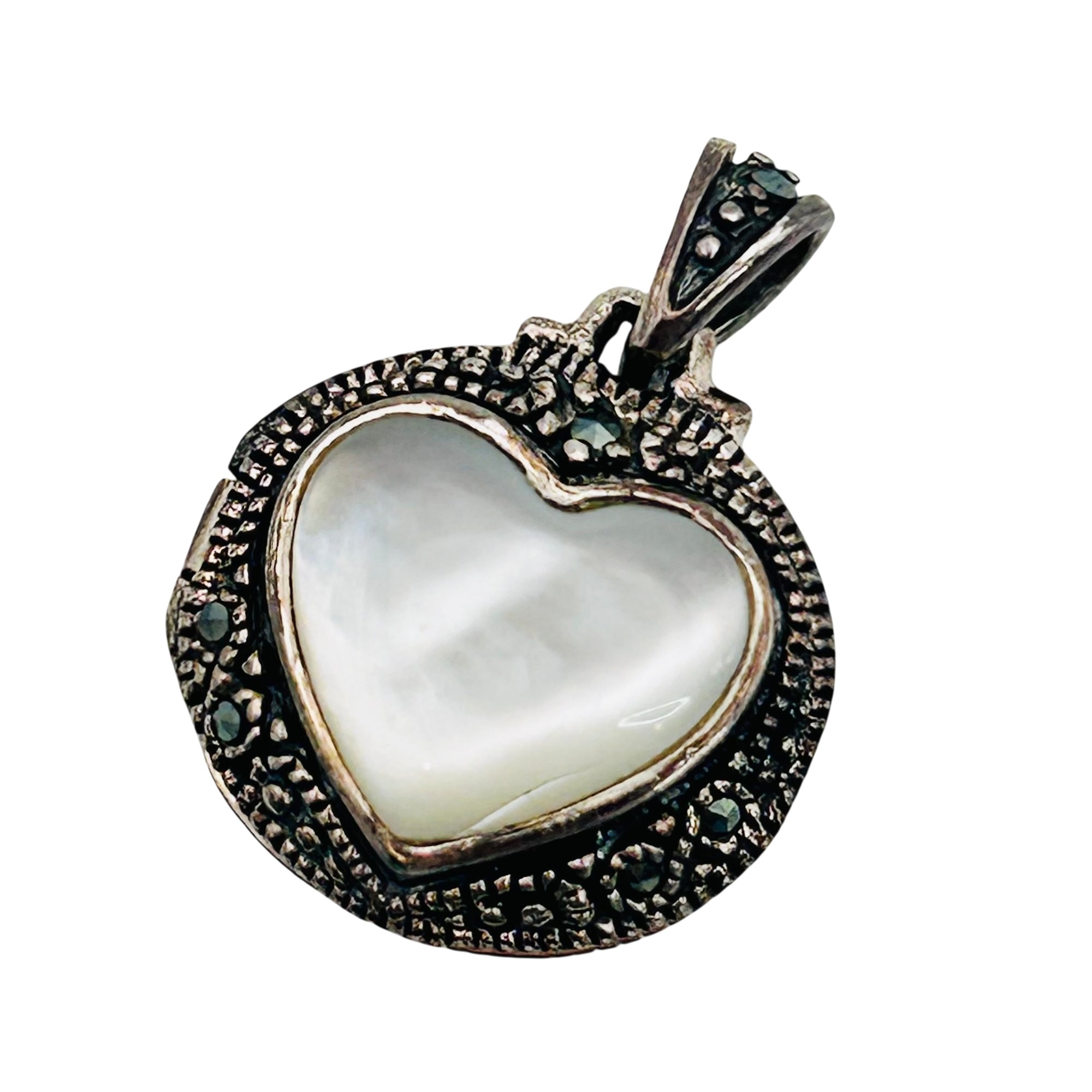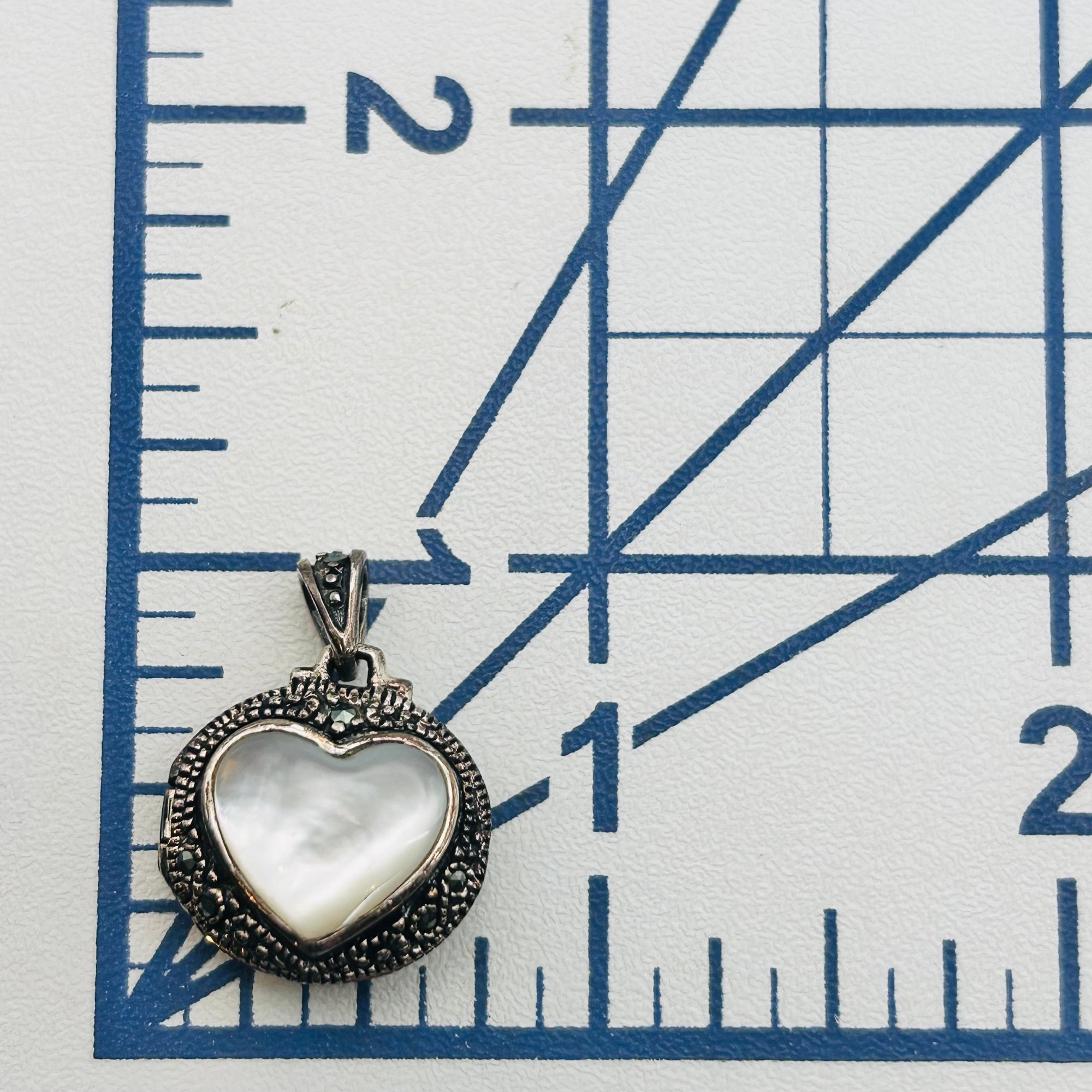 FAS Sterling Mother Of Pearl And Marcasite Heart Locket Pendant