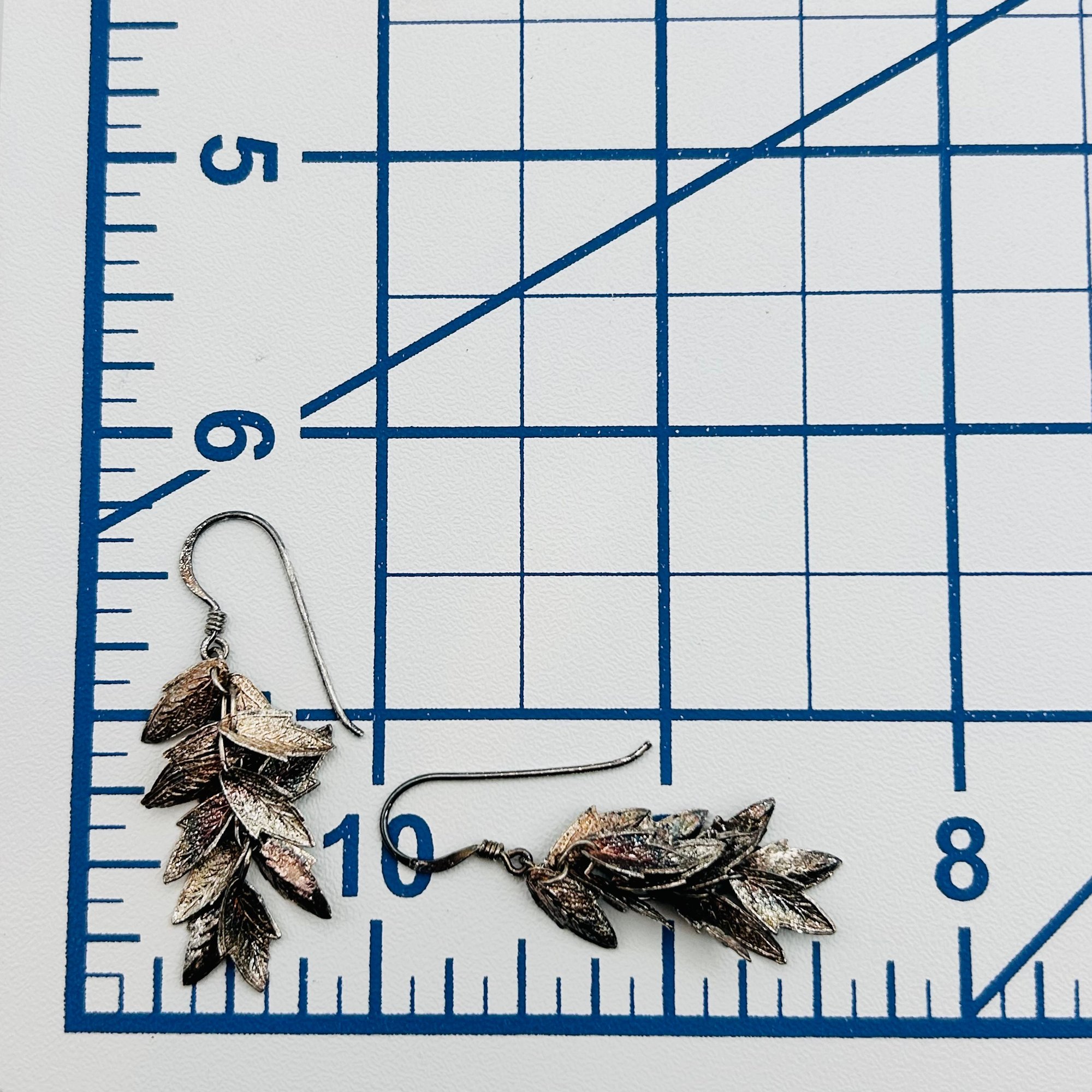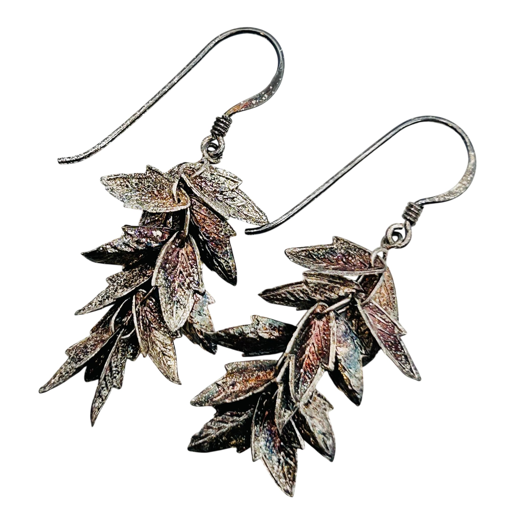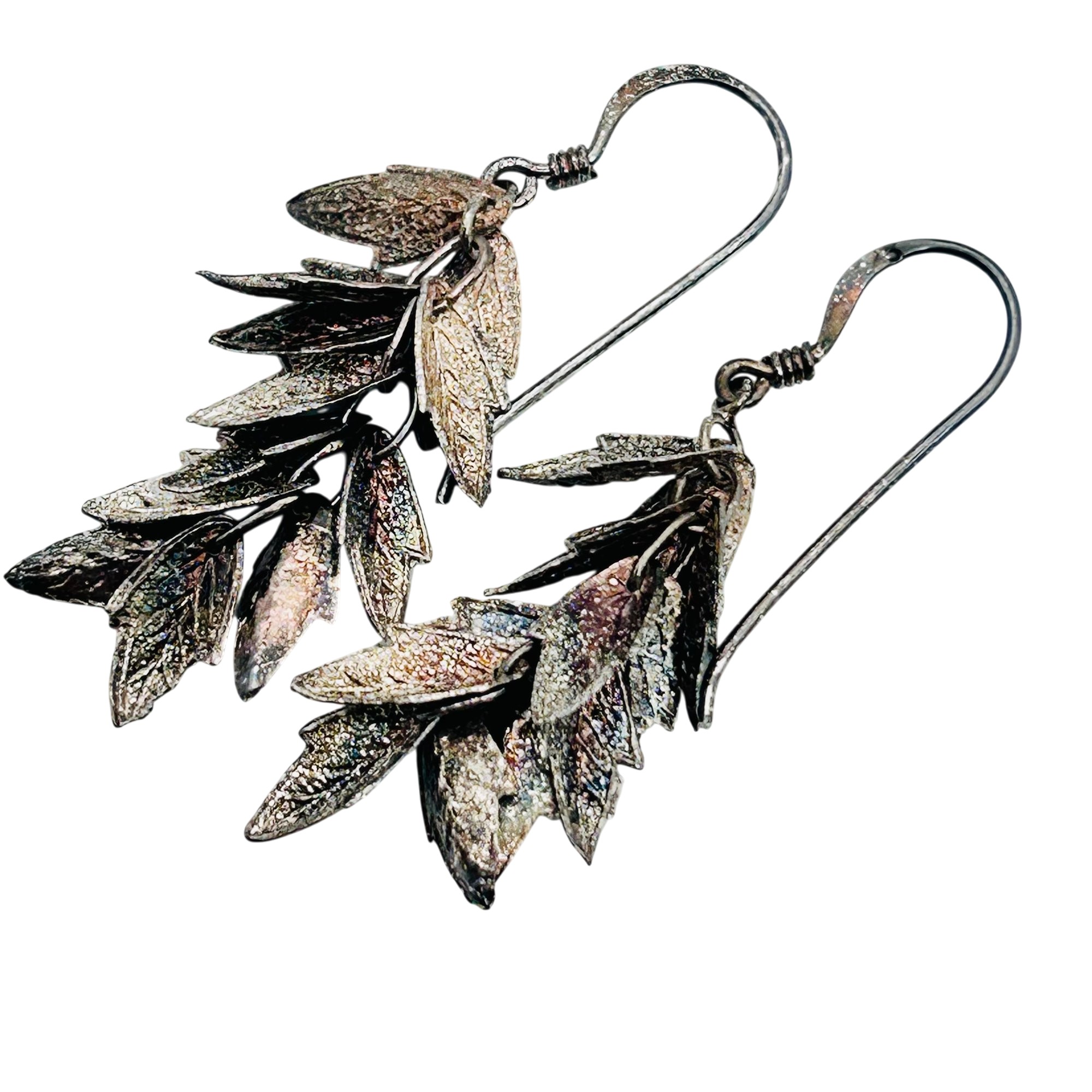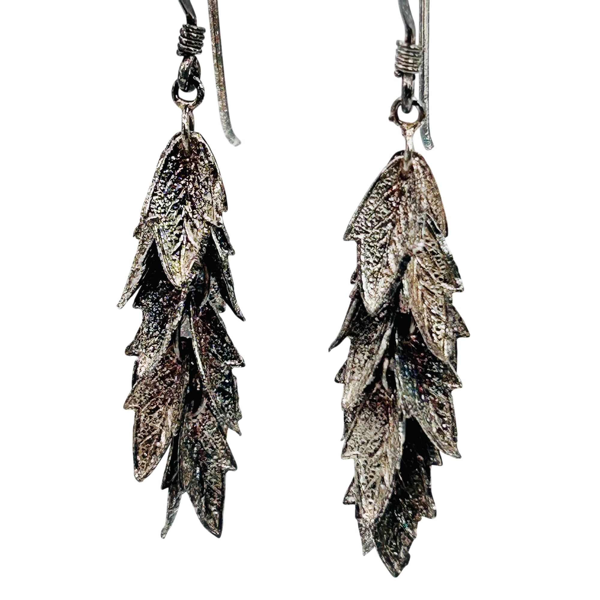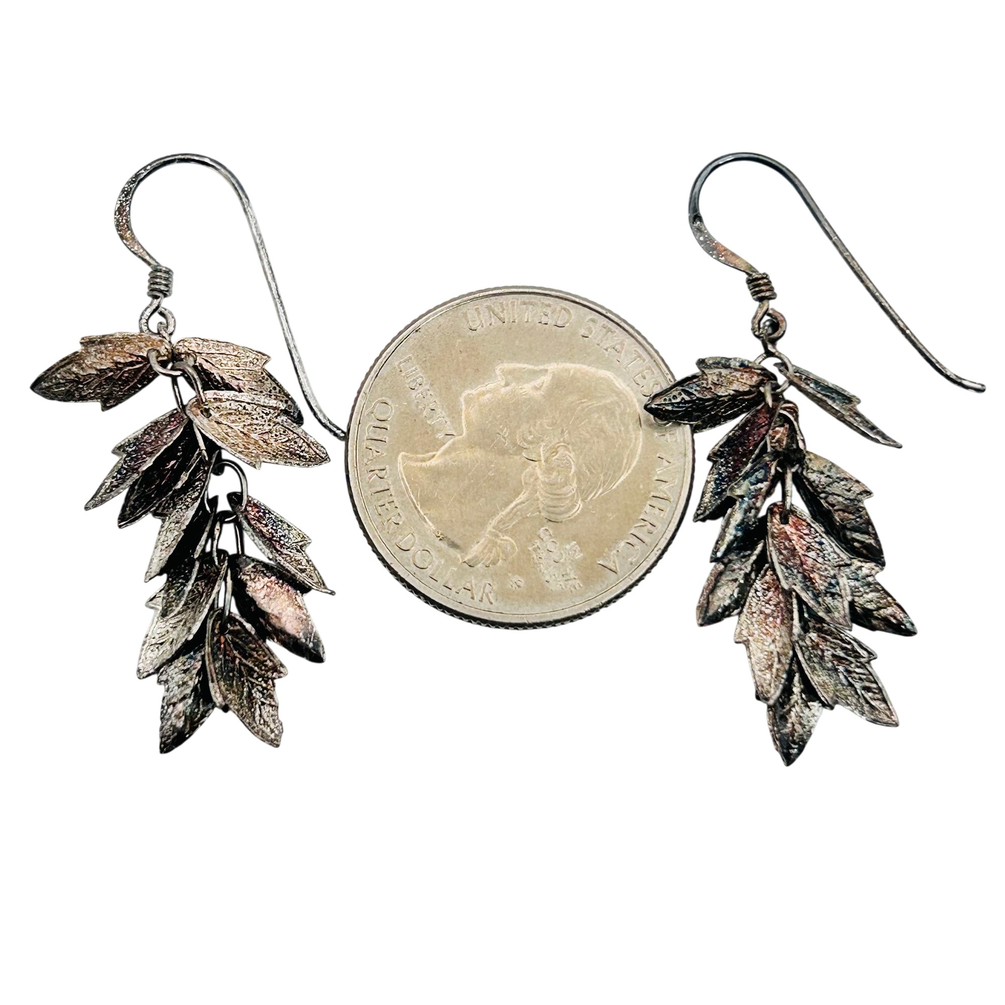 Sterling leaf cluster dangle hook back earrings. 2.83 g.