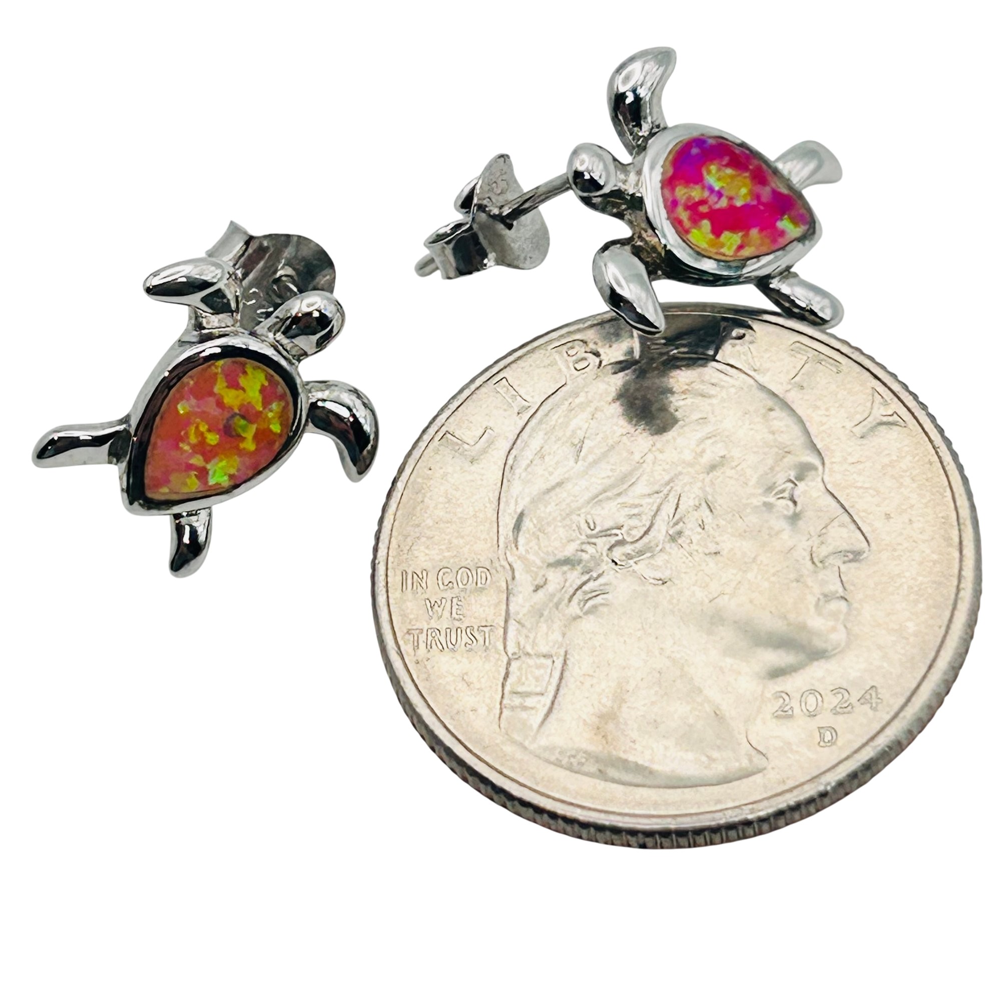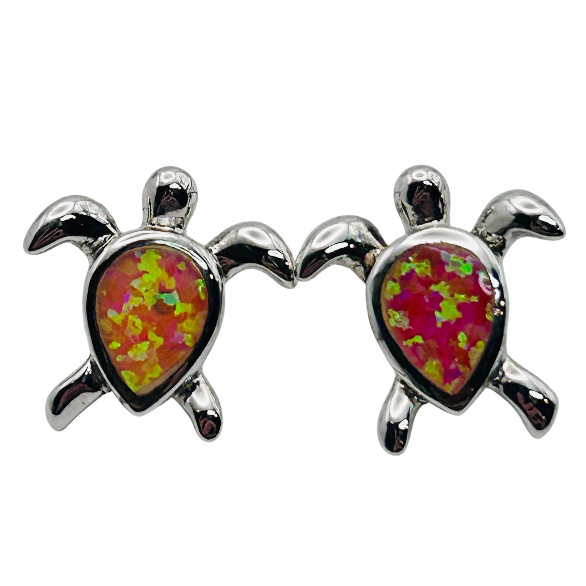 Pink OPAL Sterling turtle earrings. 2.05g