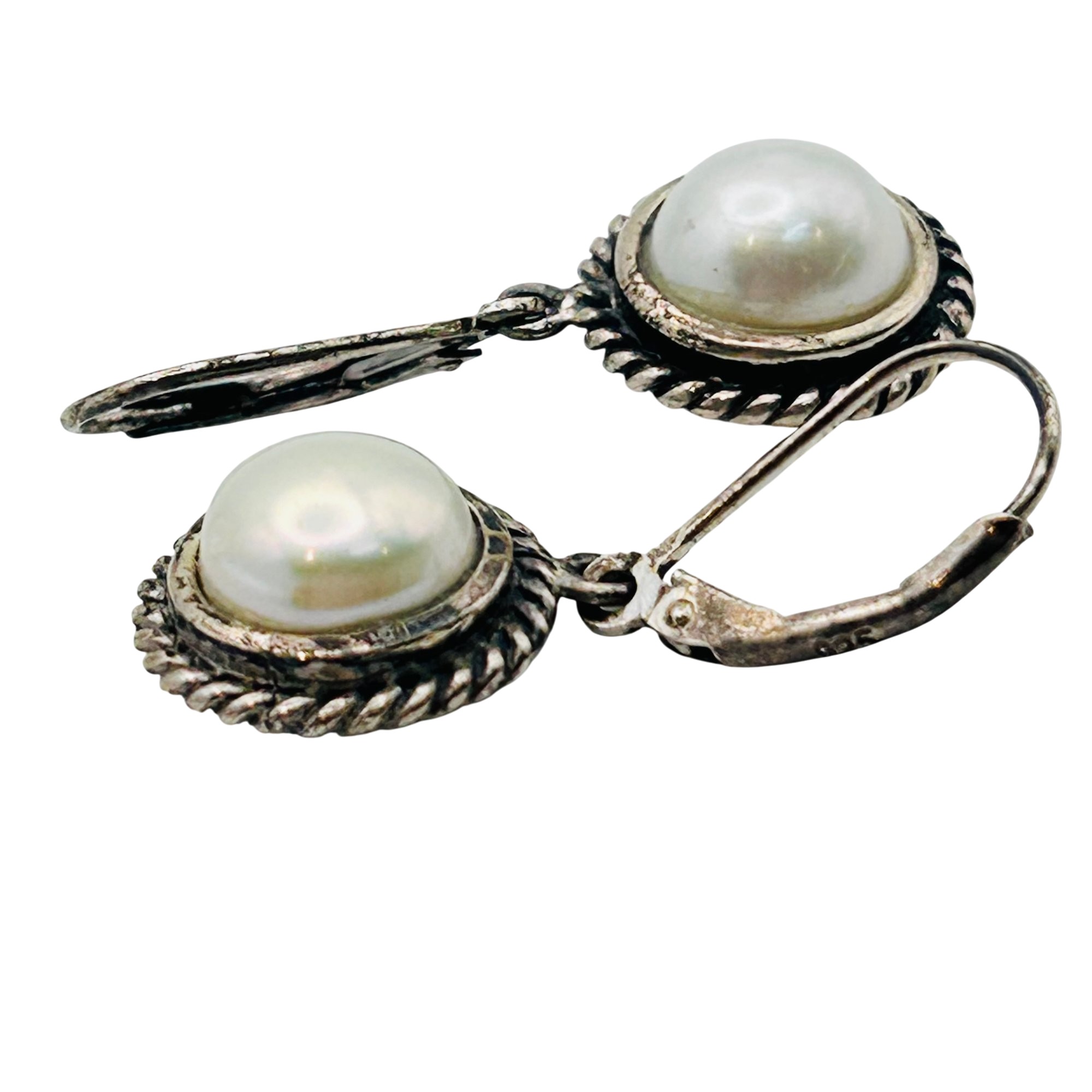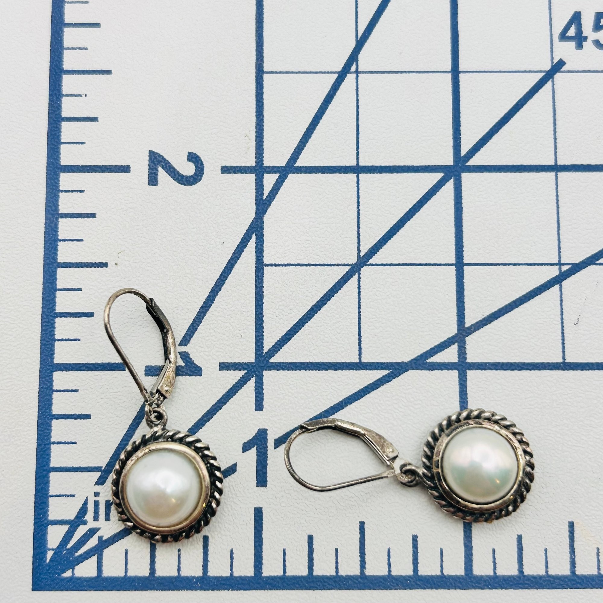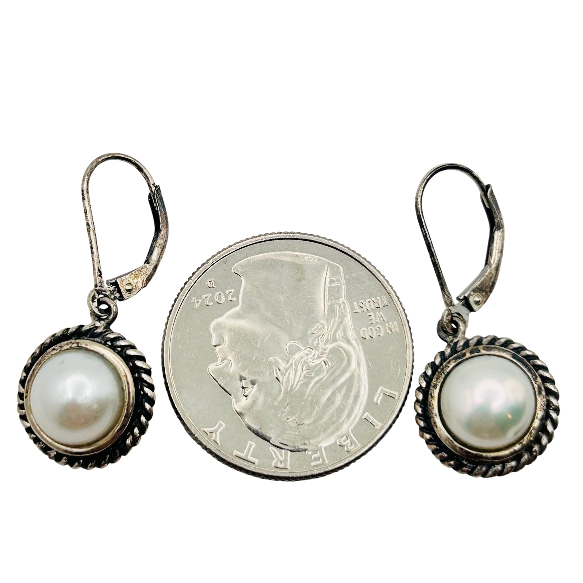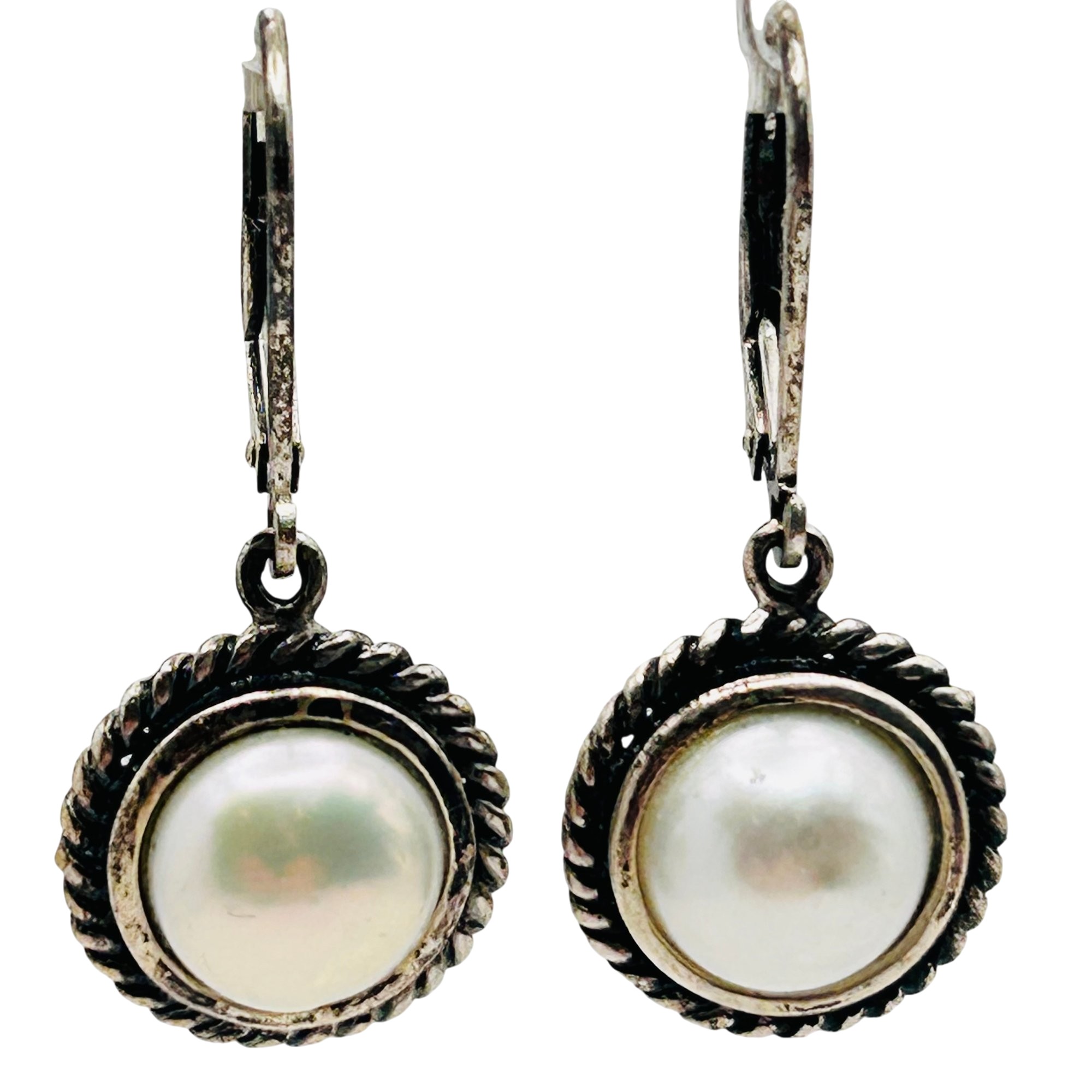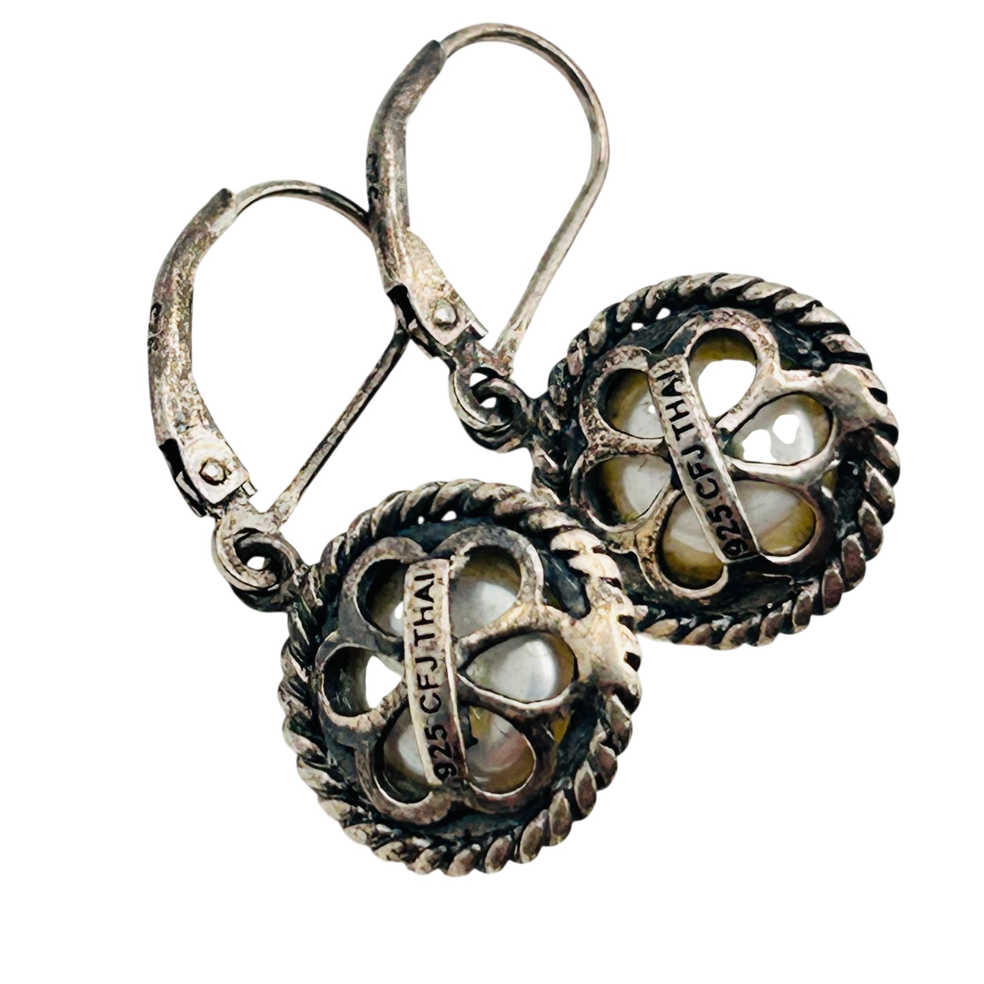 CFJ PEARL Sterling round lever back earrings. 4.90g
