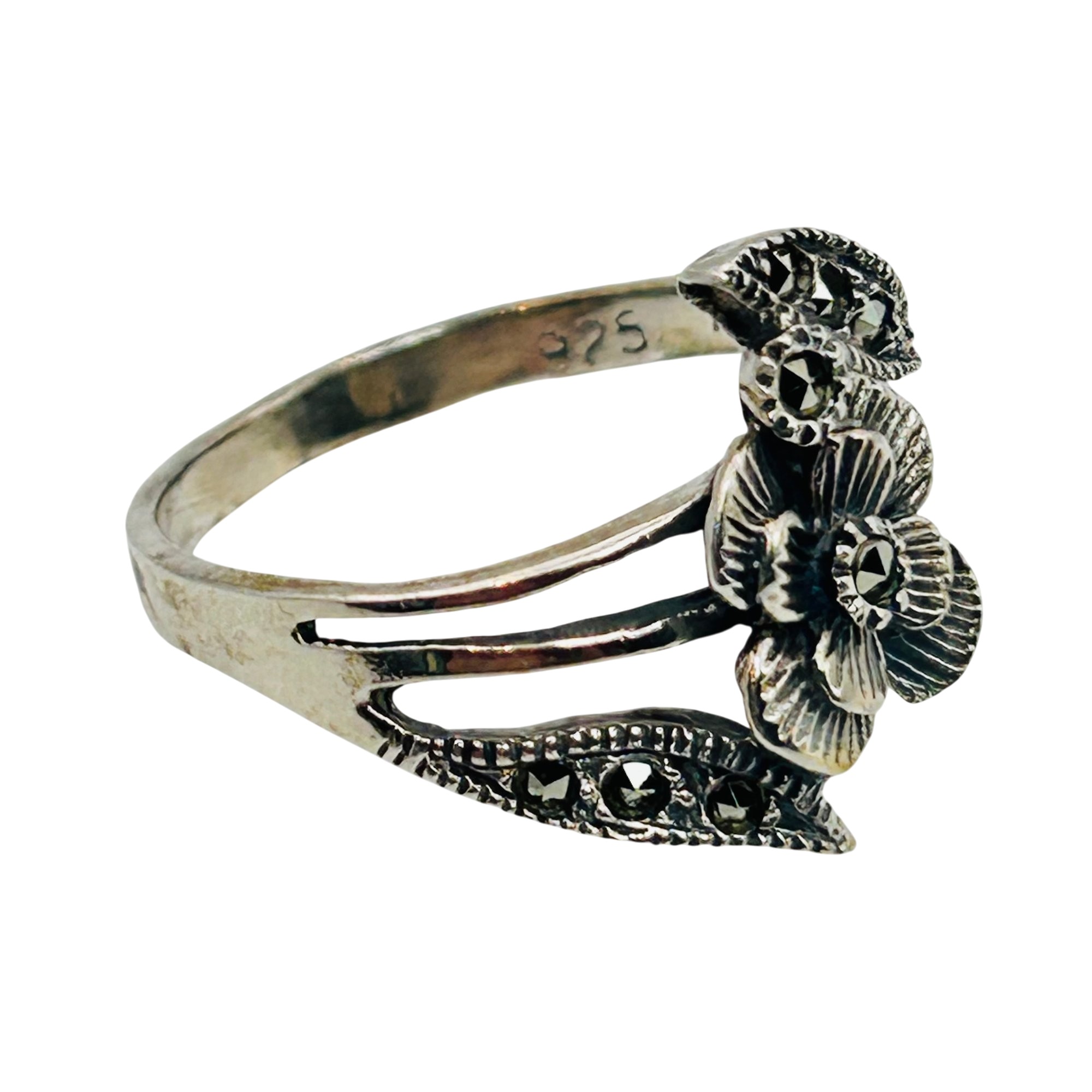 CW MARCASITE Sterling flower ring. Size 7. 2.18g