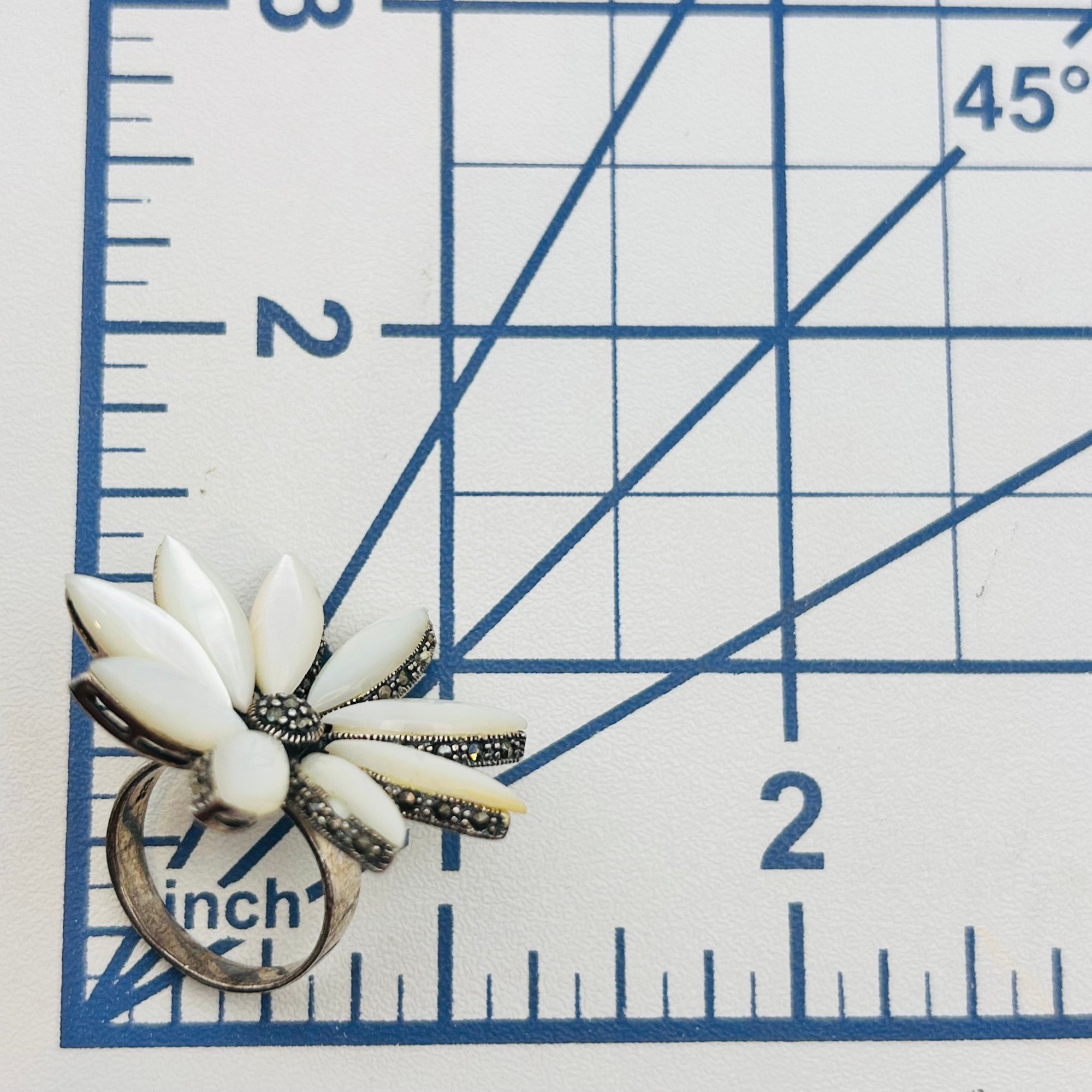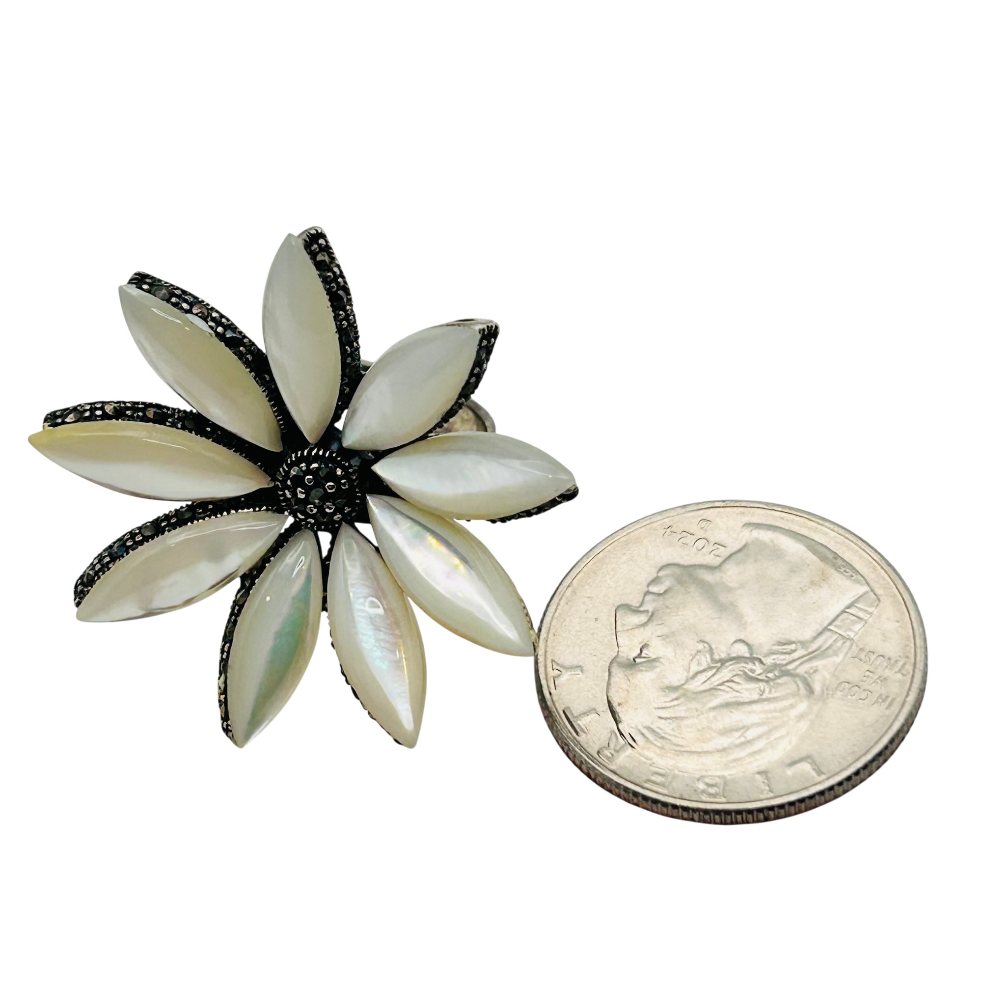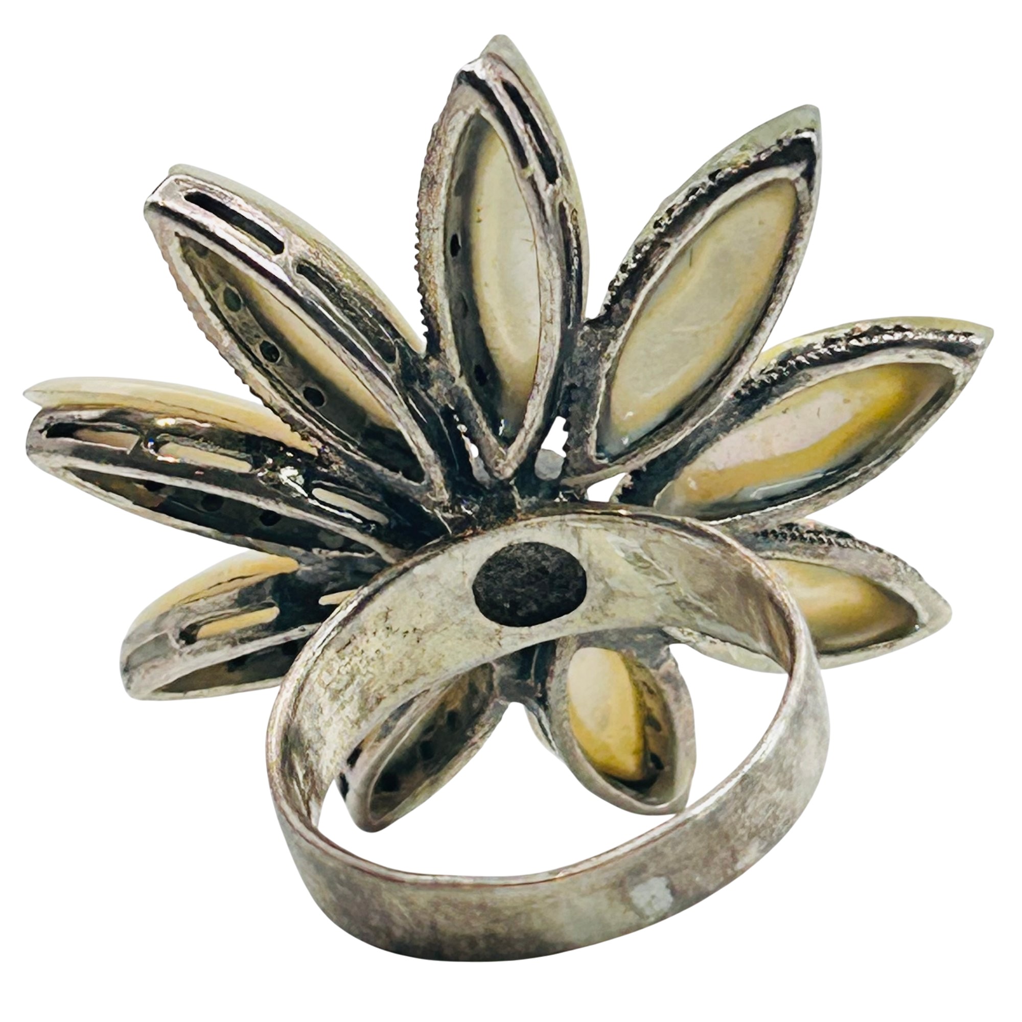 MOTHER OF PEARL MARCASITE Sterling statement ring. Size 5.5. 8.92g
