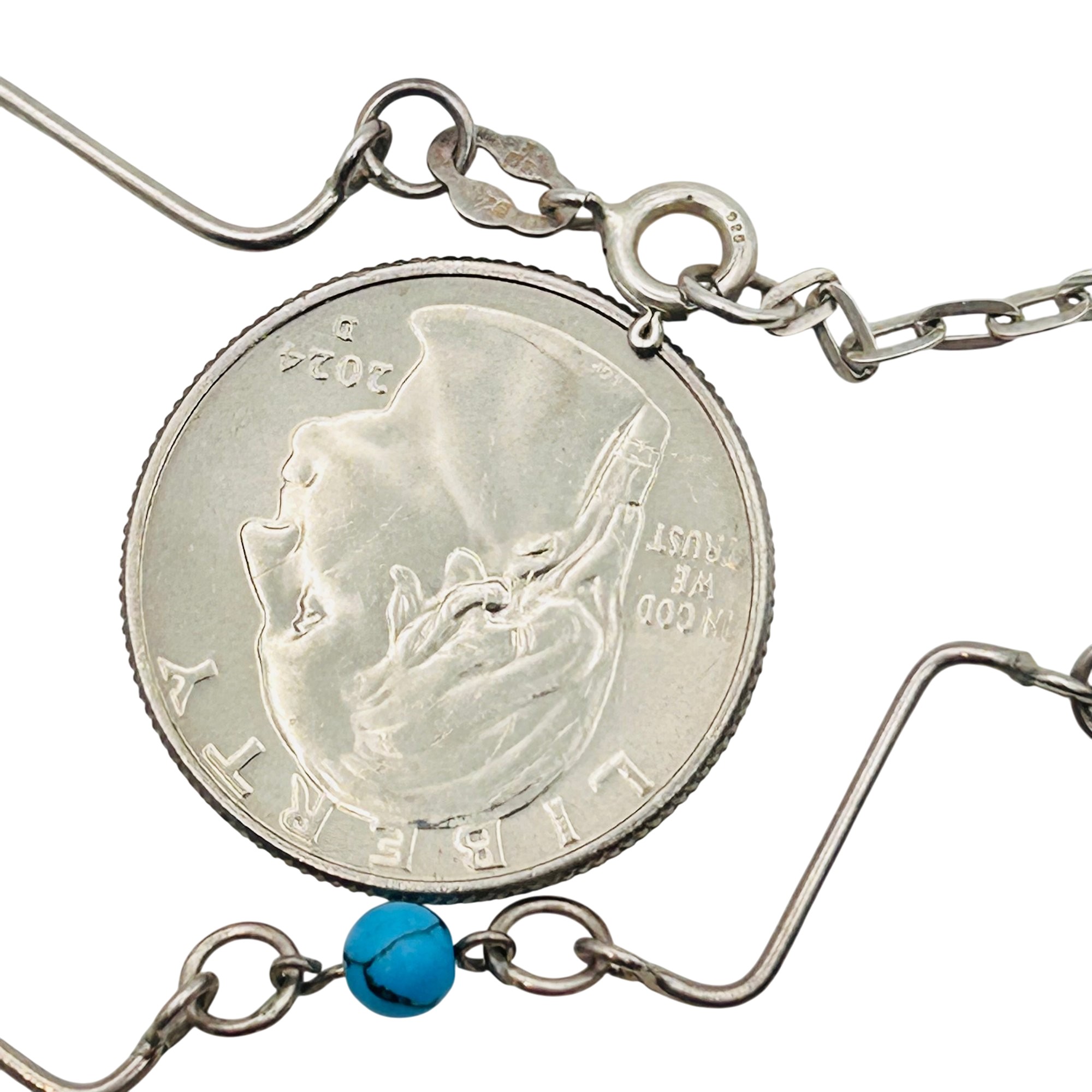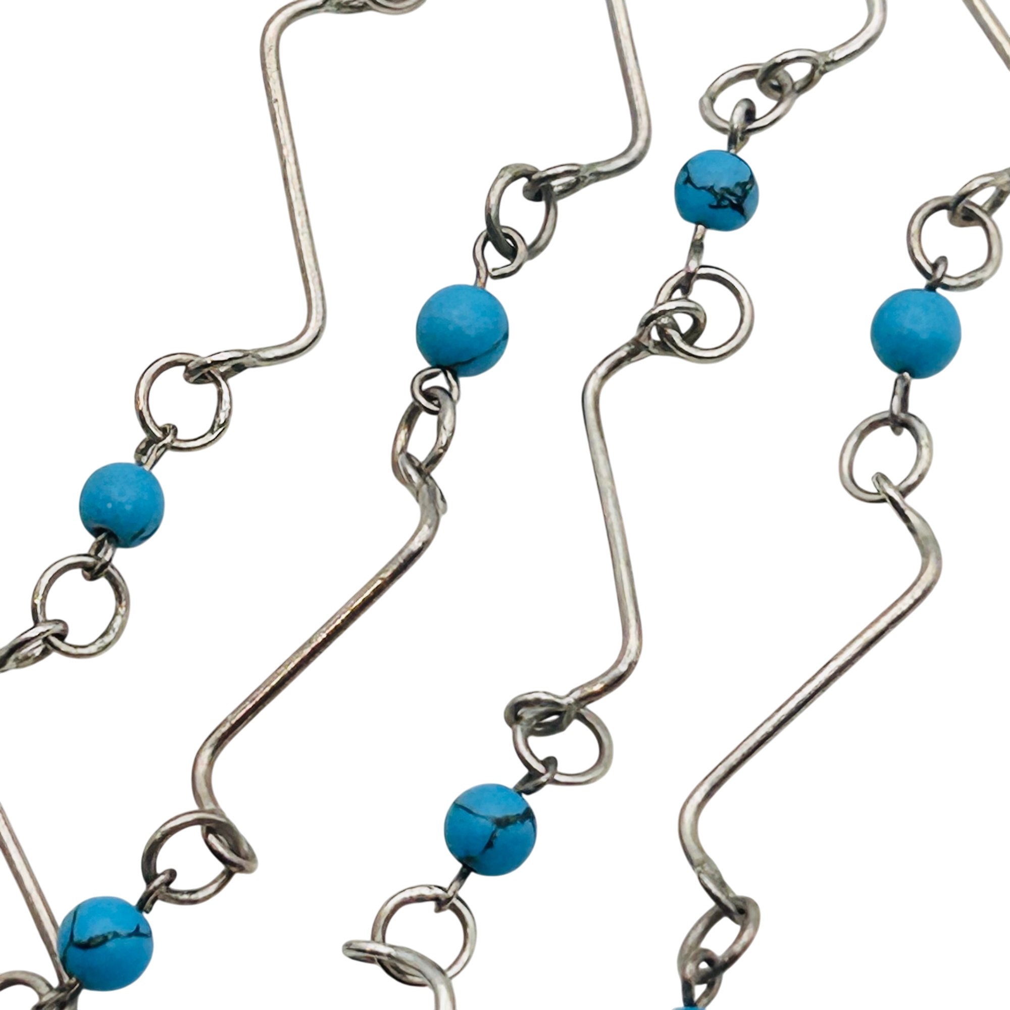 Turquoise sterling curvy chain adjustable necklace. 5.54 g. 18 inches.