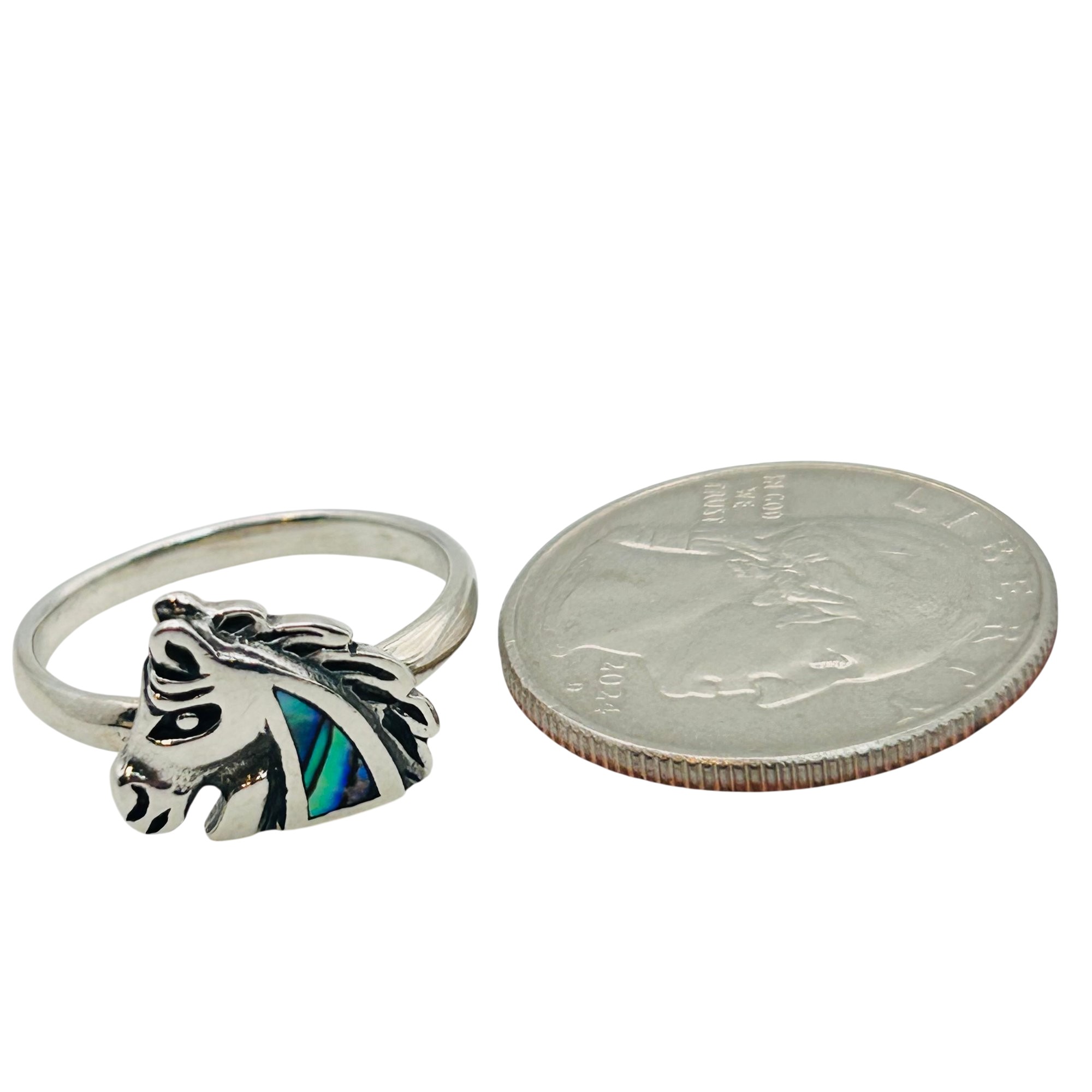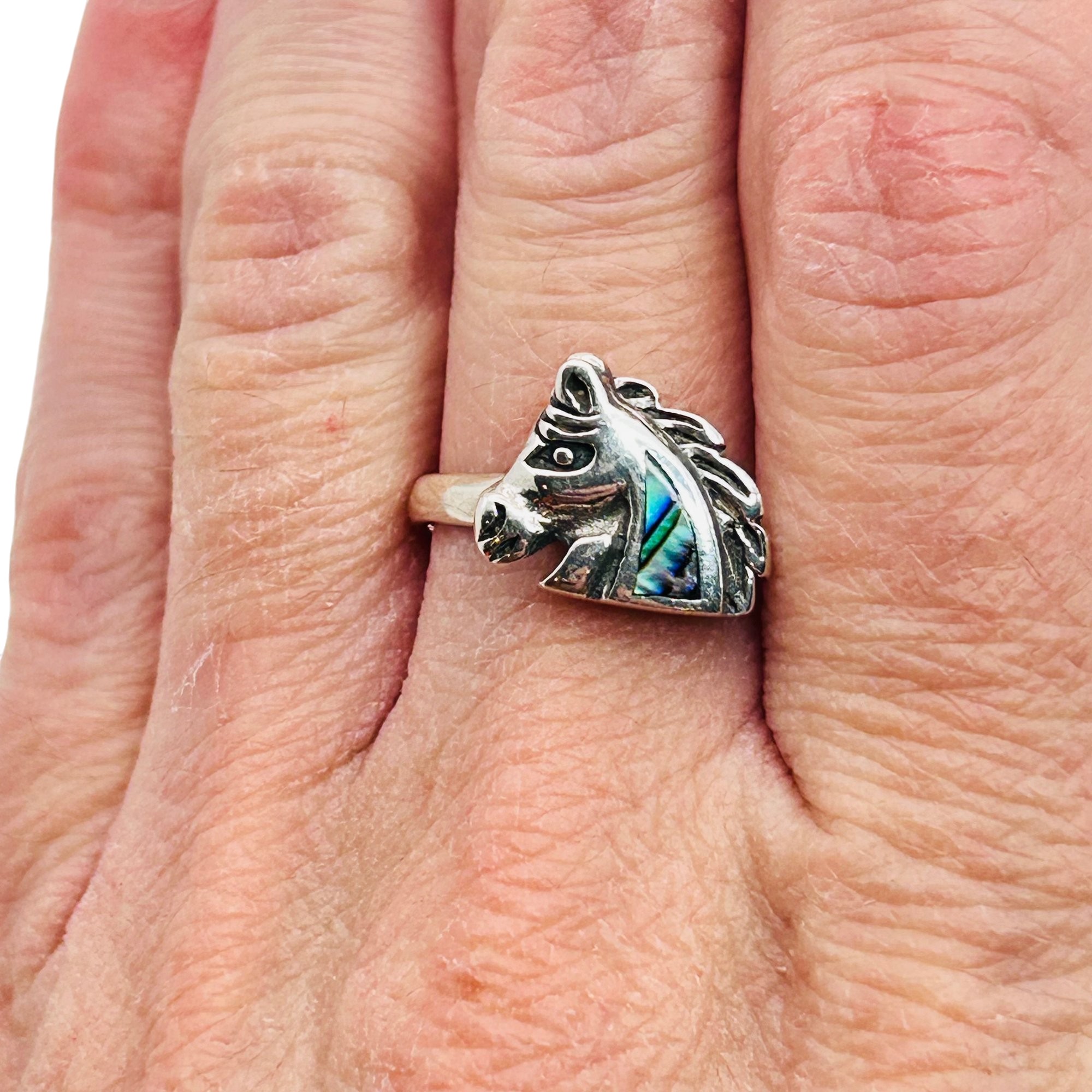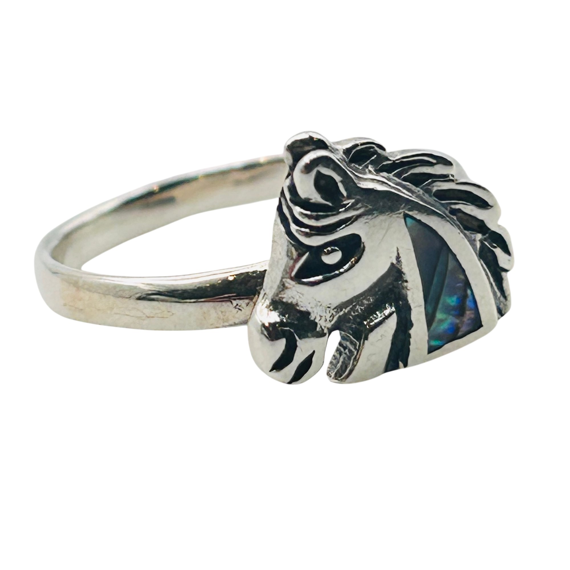 ABALONE Sterling horse ring. Size 7.5. 2.36 g.