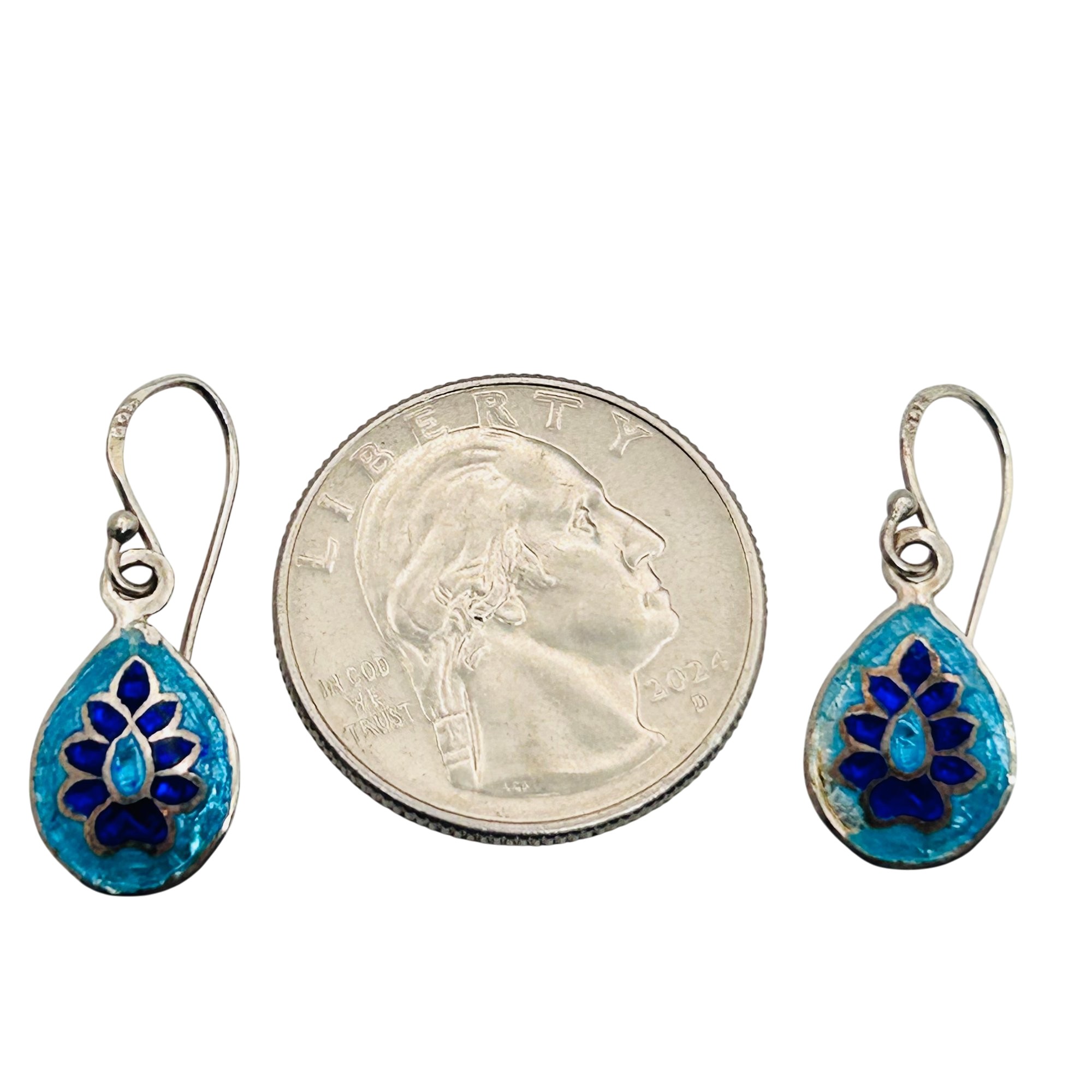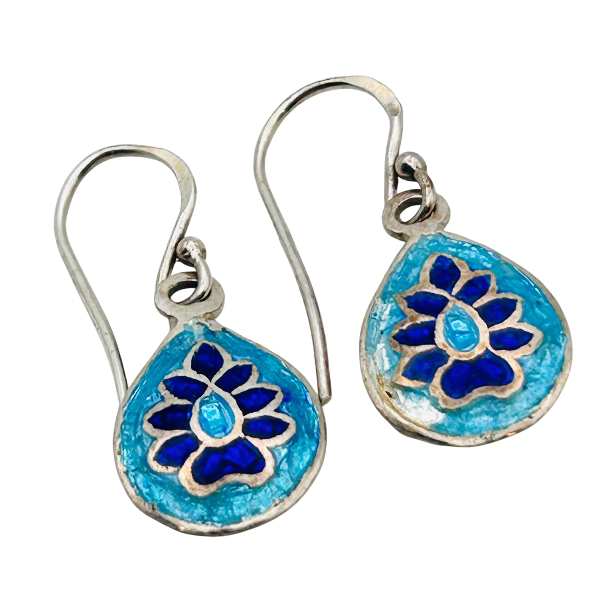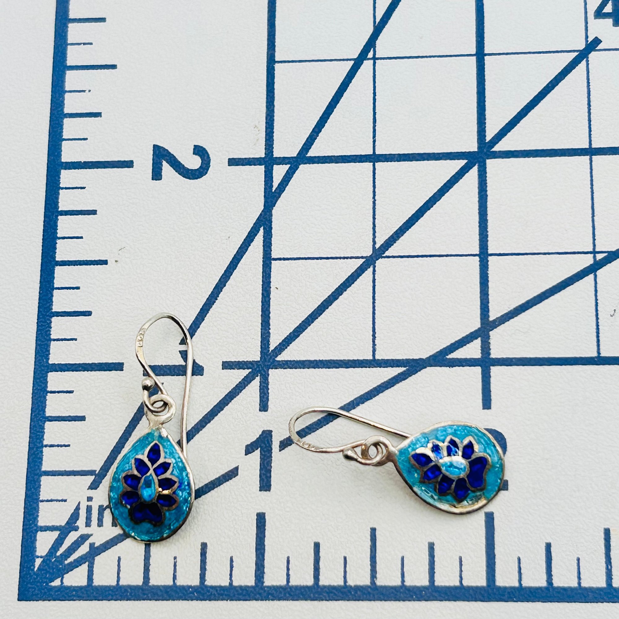 Enamel Sterling hook back earrings. 1.49g
