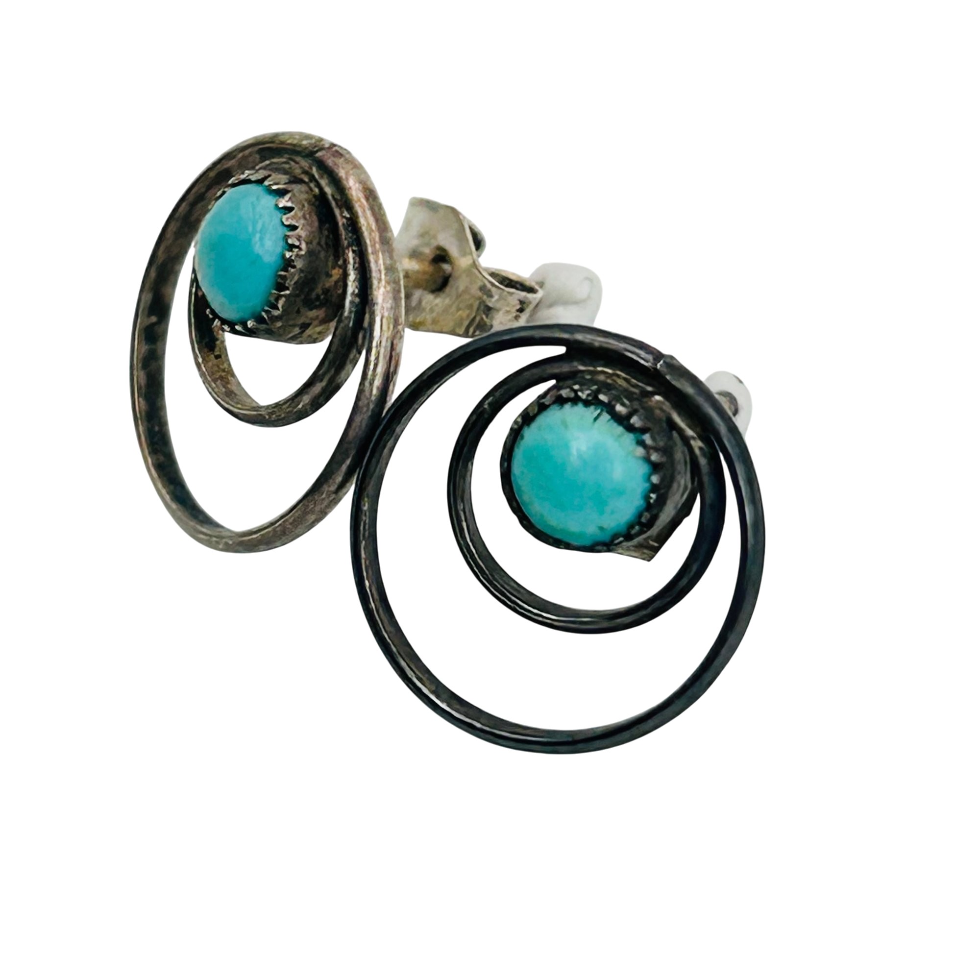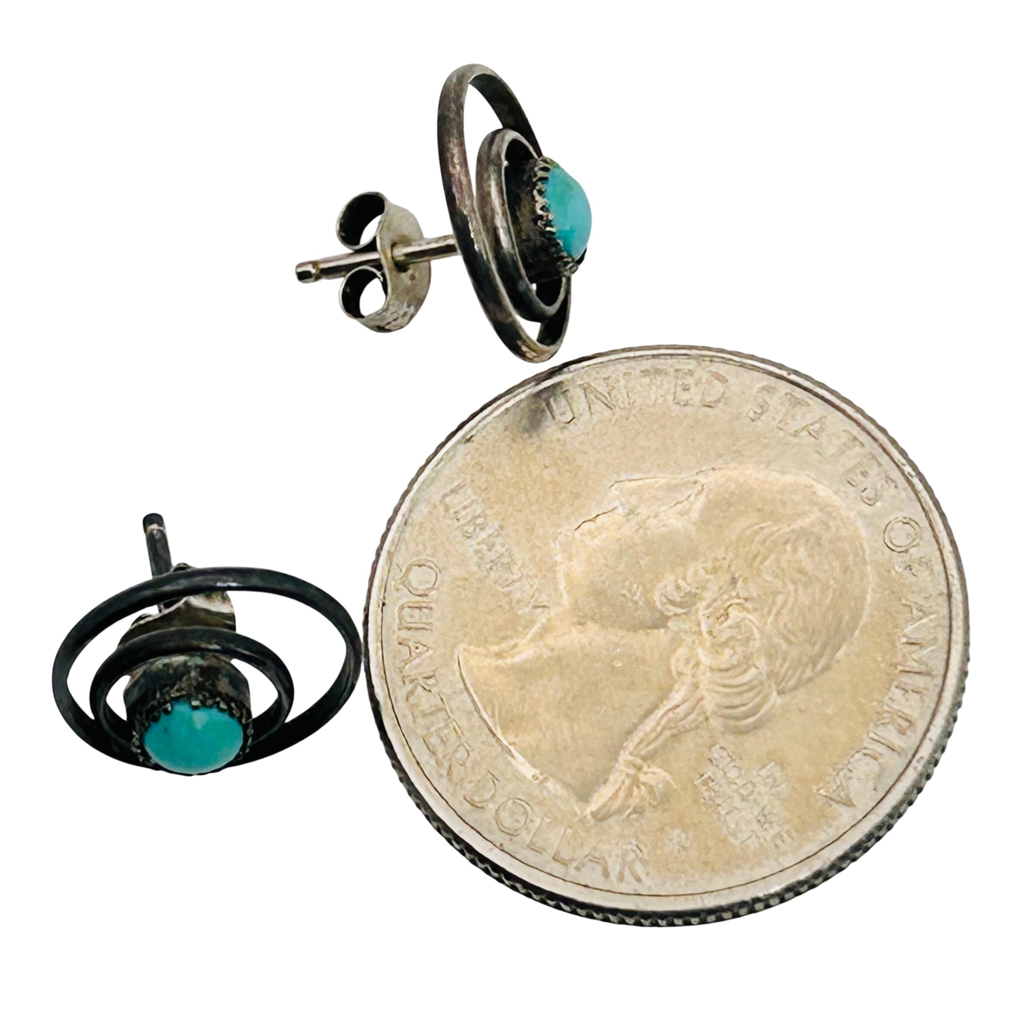 Southwest sterling turquoise double circular stud earrings 1.4g
