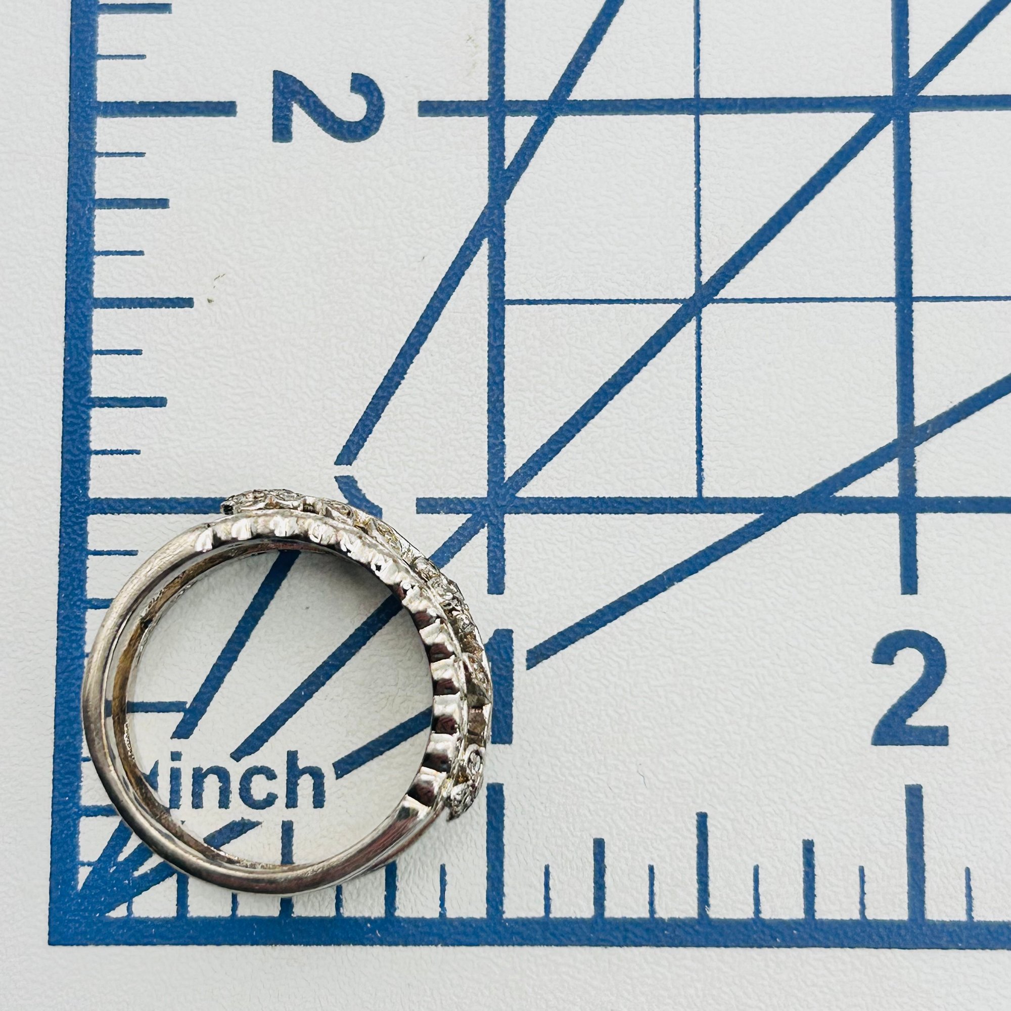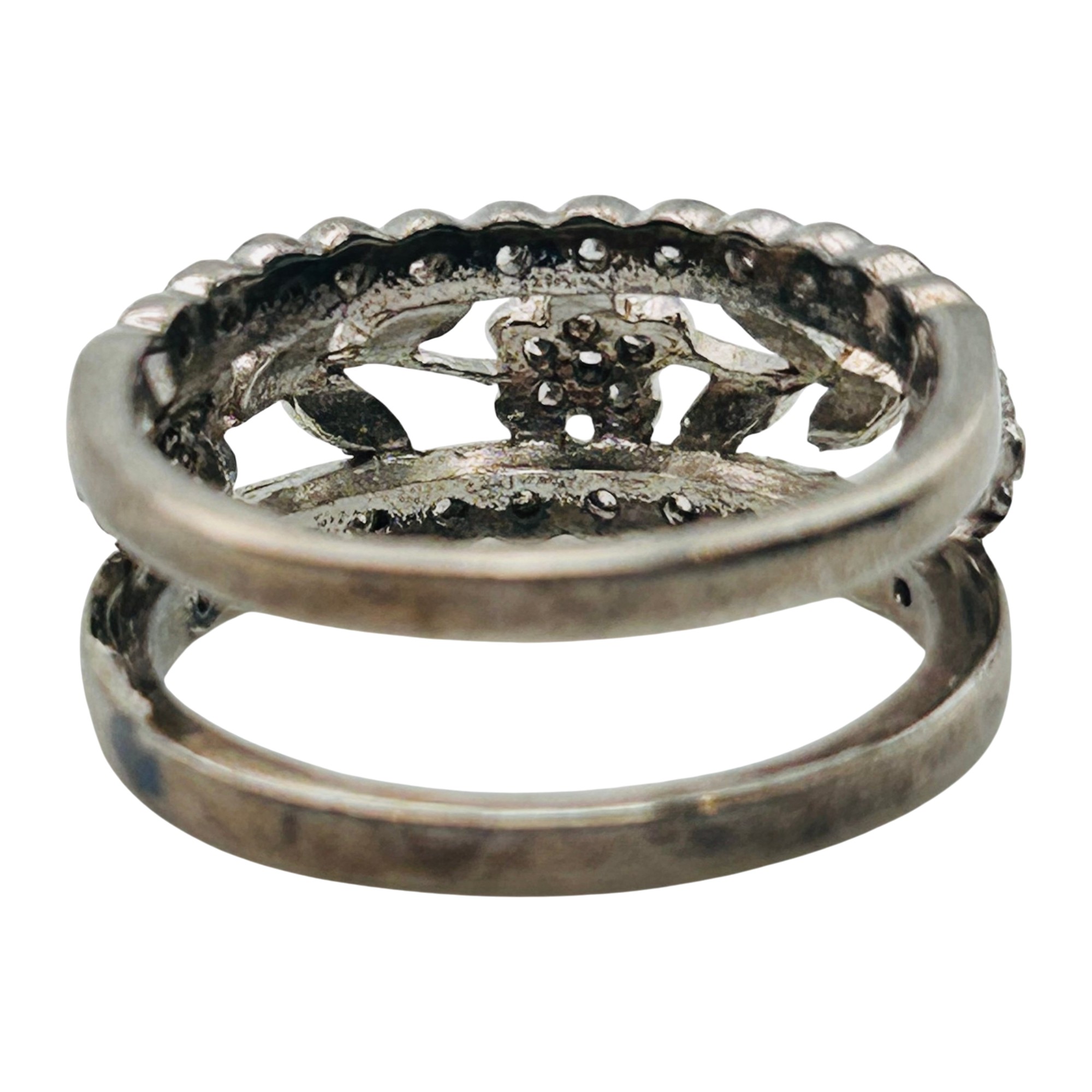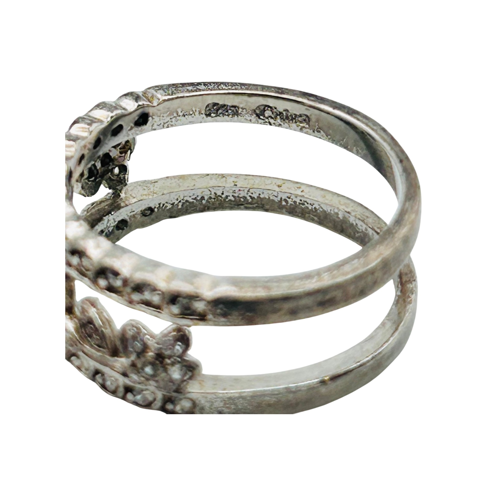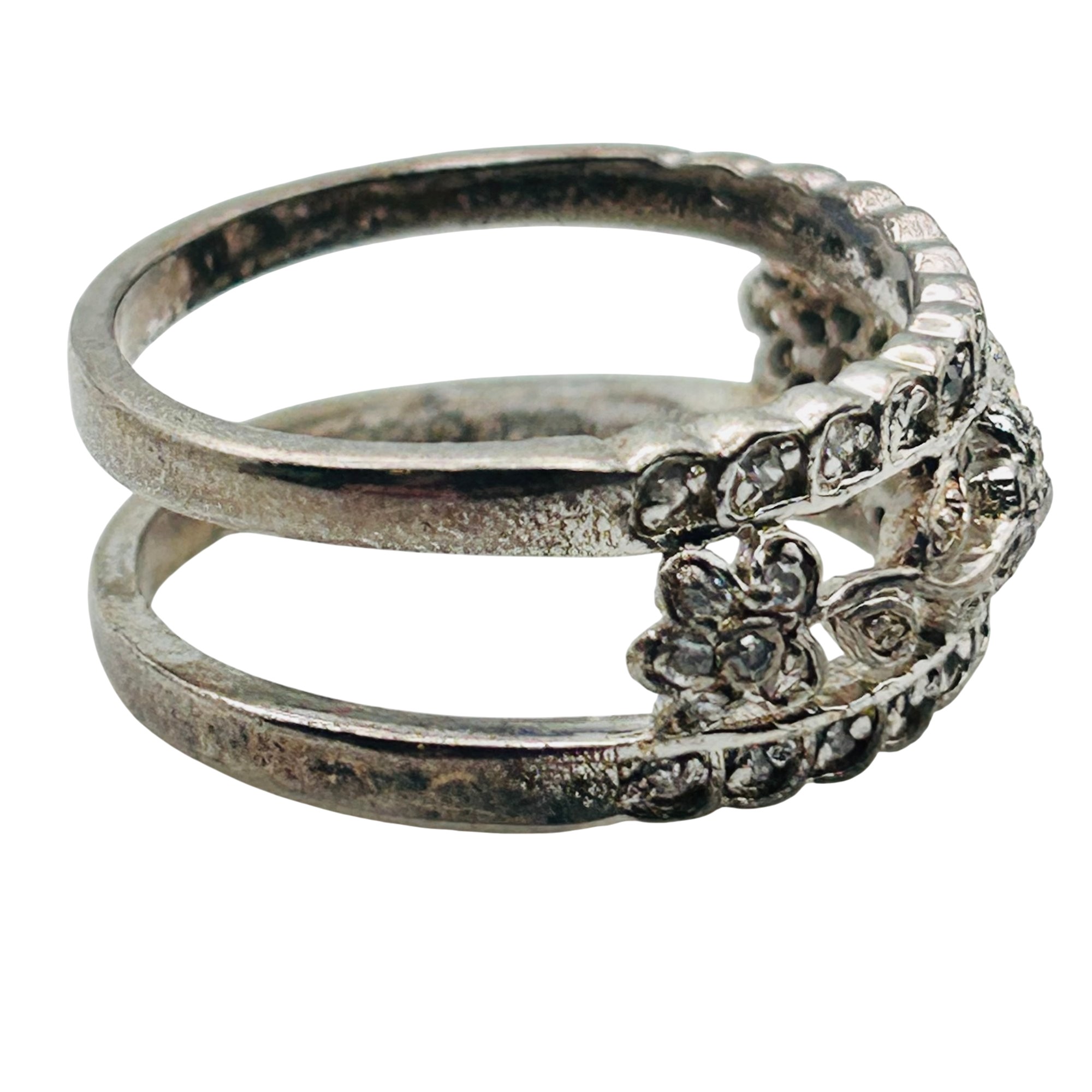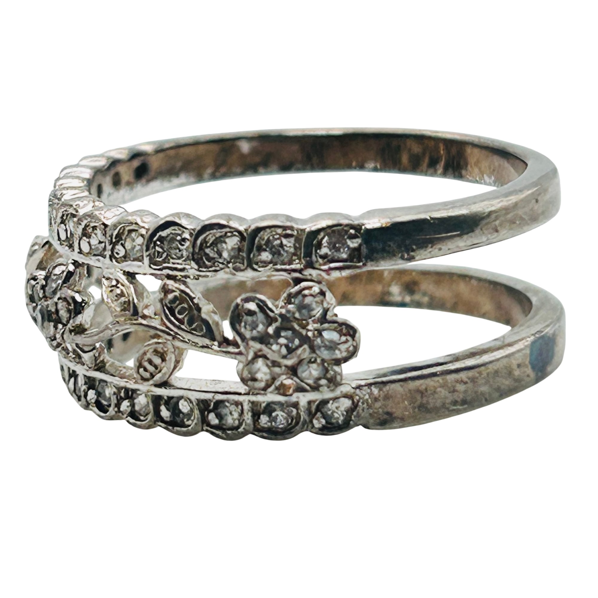 Sterling clear stone flower detail double band. Size 9. 5.25g