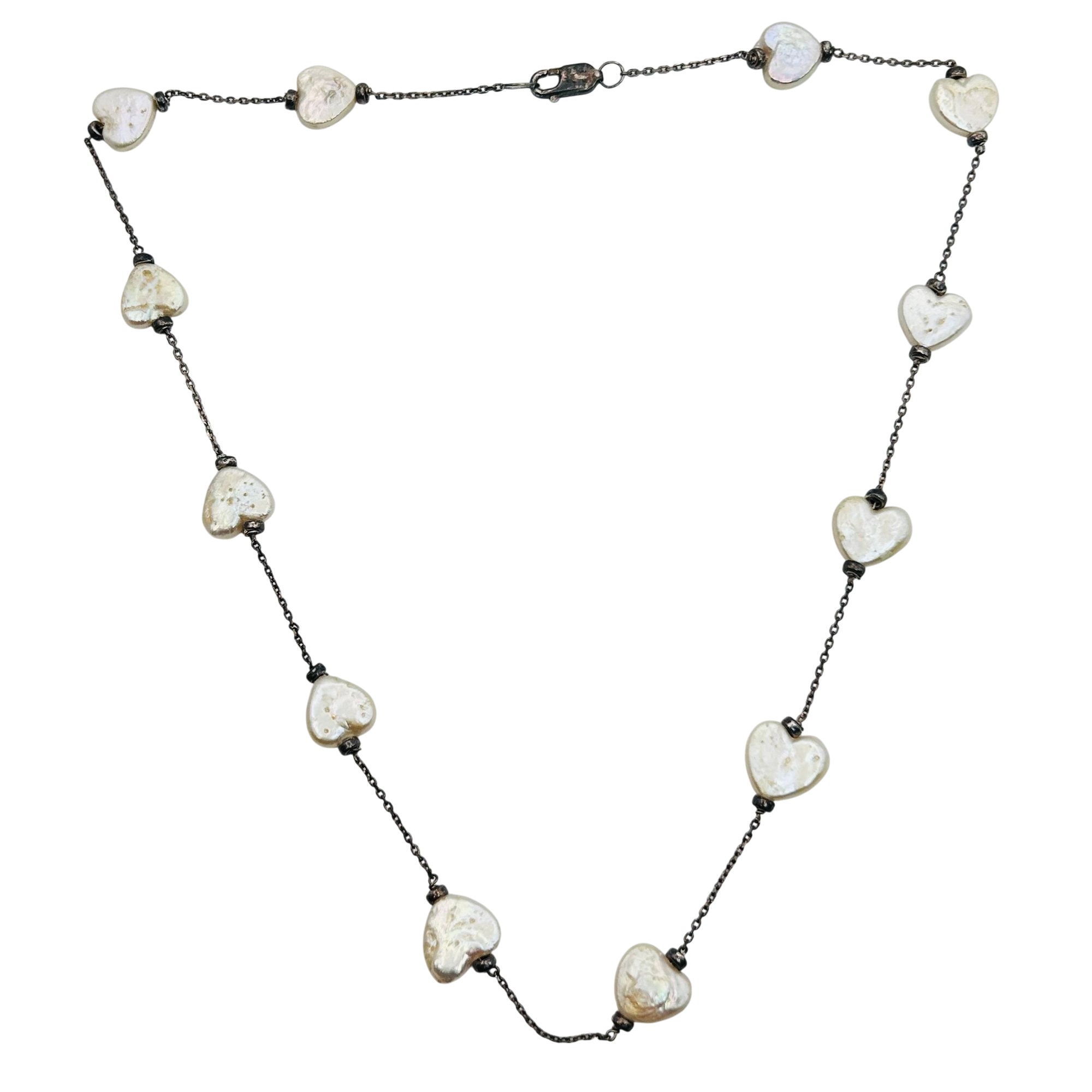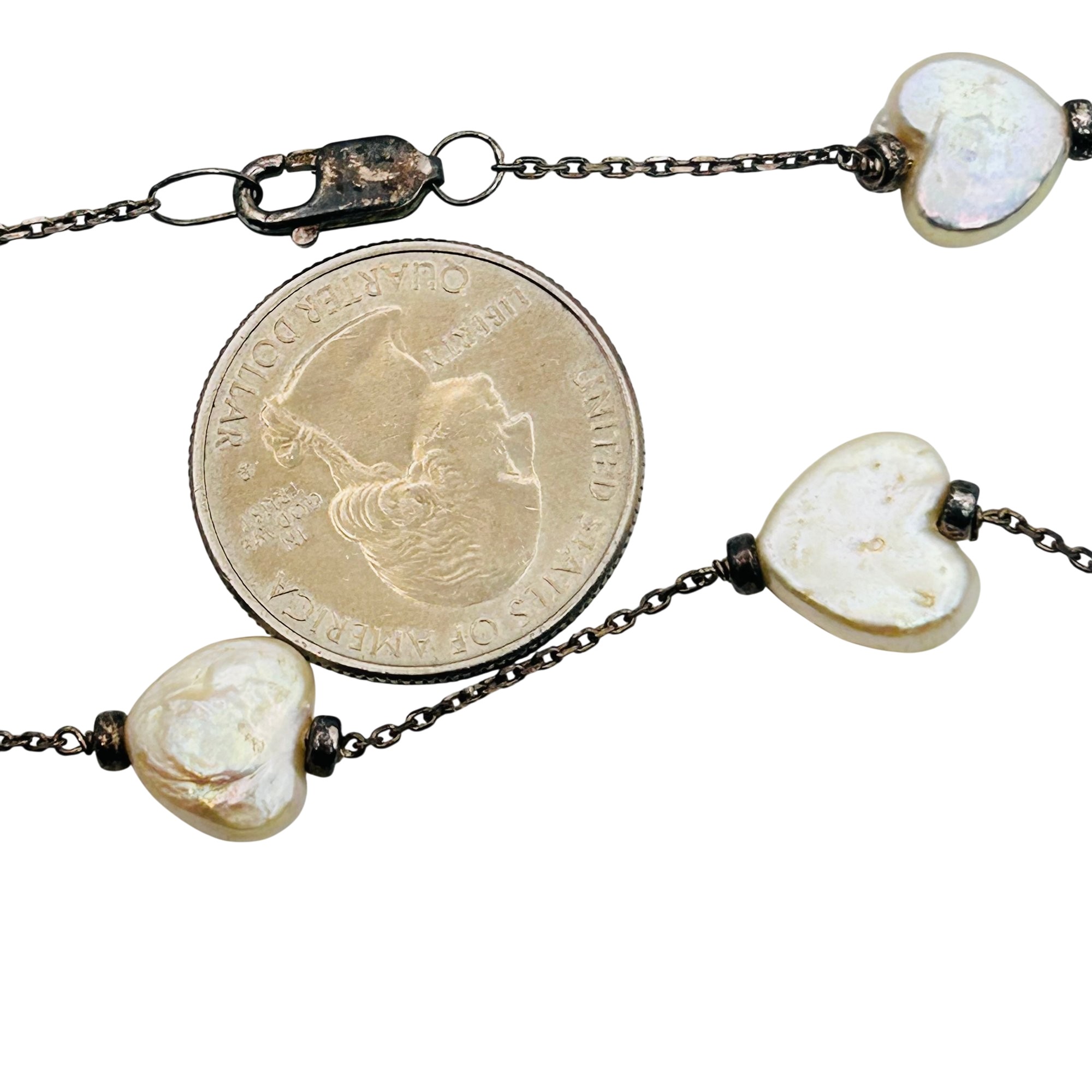 Sterling heart pearl cable chain necklace 10.1g