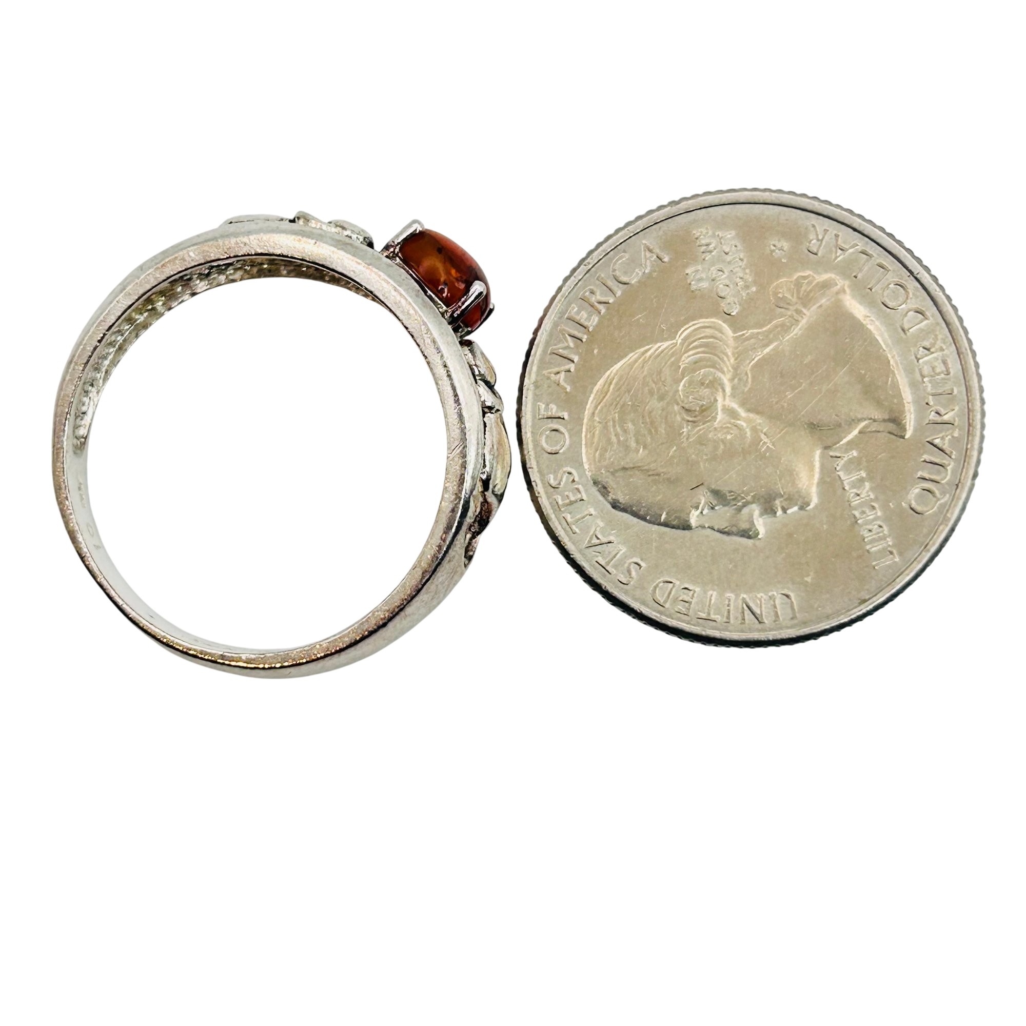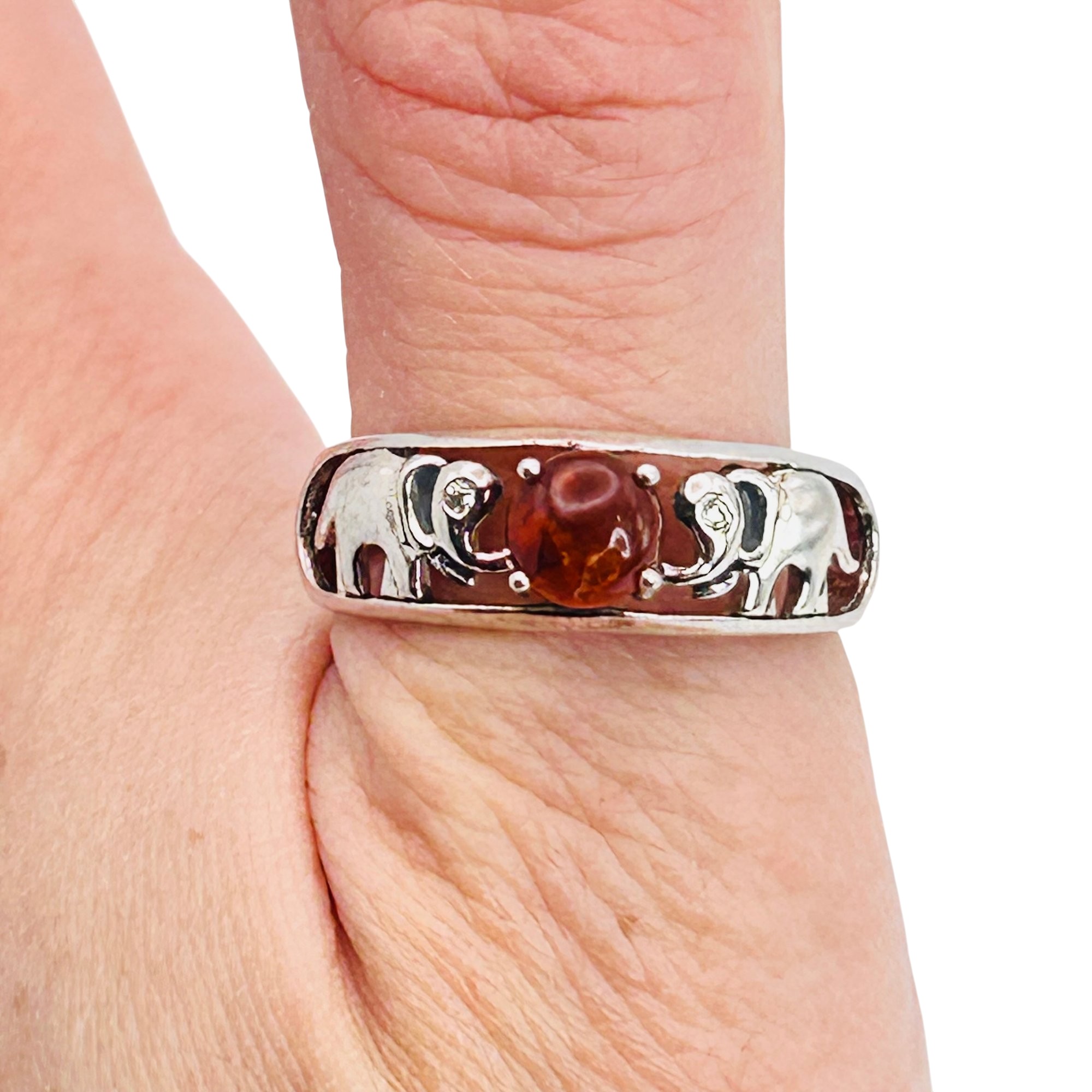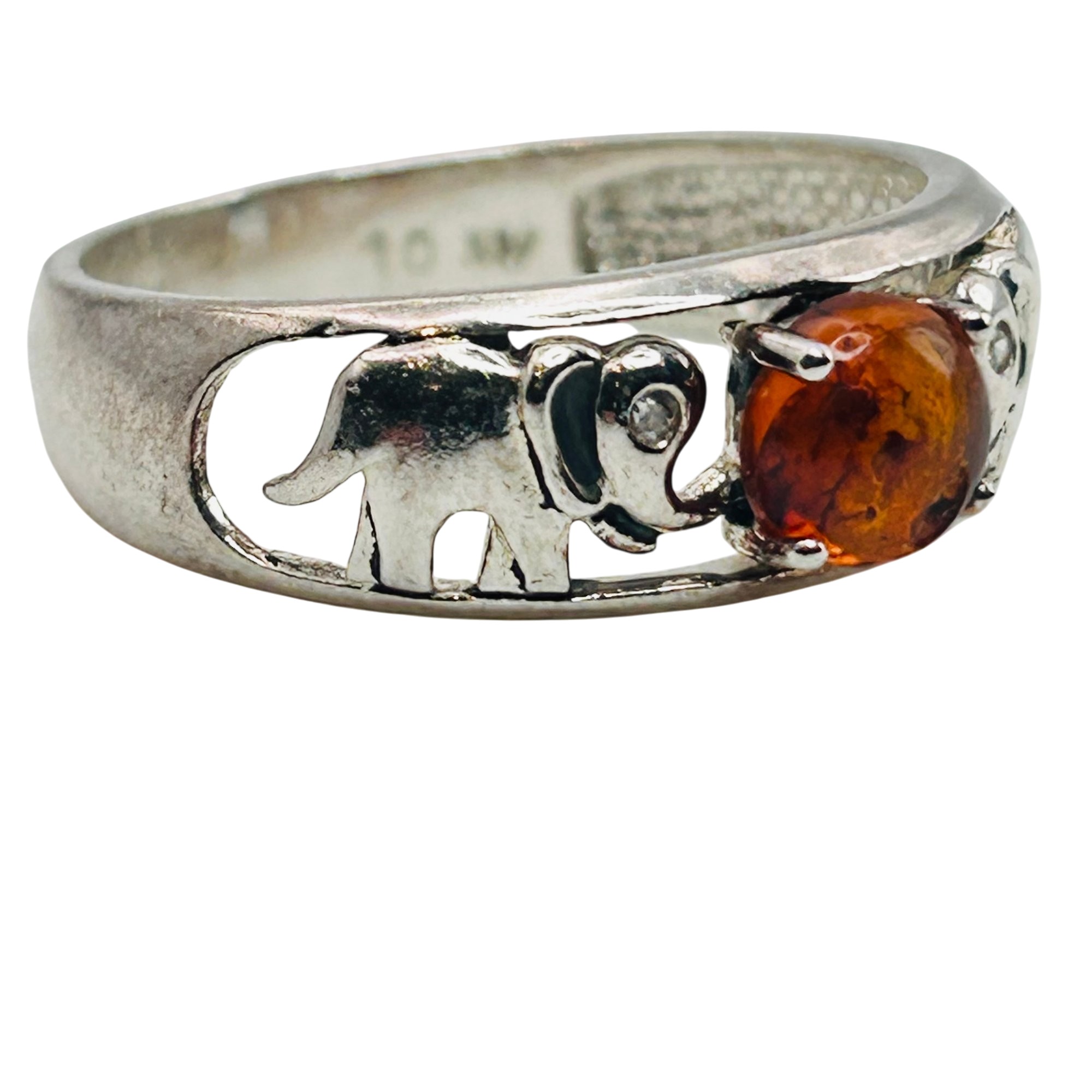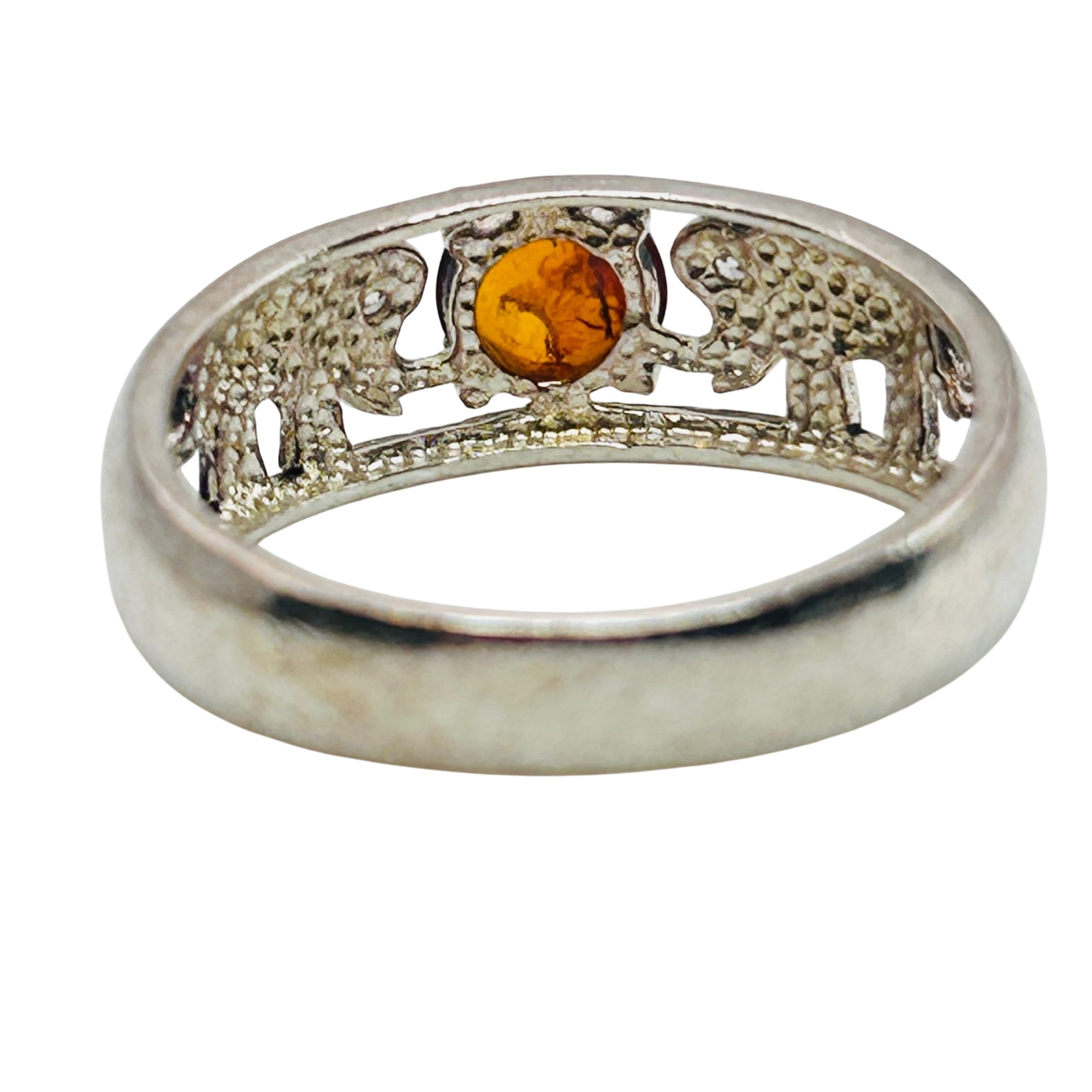 Sterling Amber elephant detail ring Size 10 3.6g
