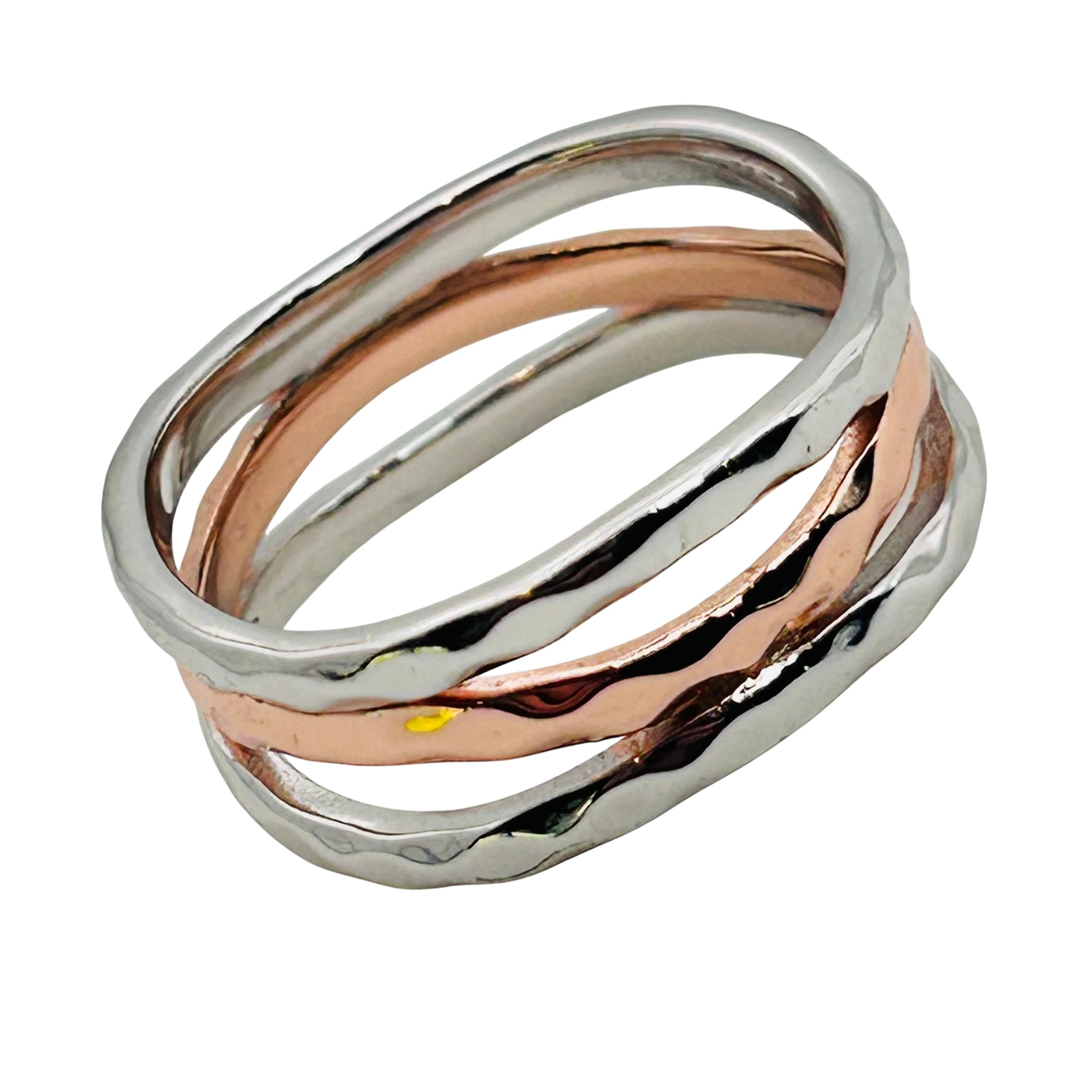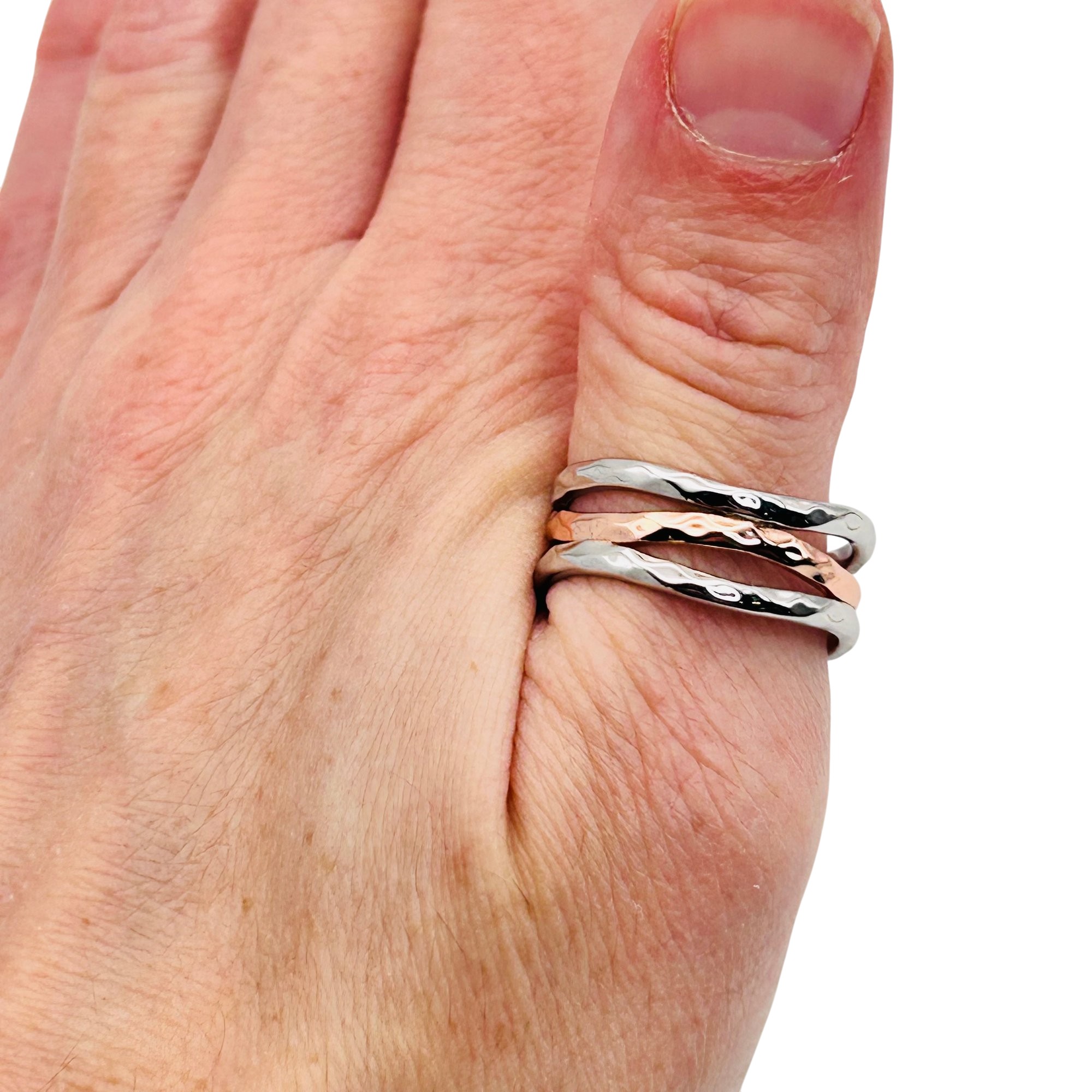 Sterling triple band hammered design ring. Size 9. 5.31g