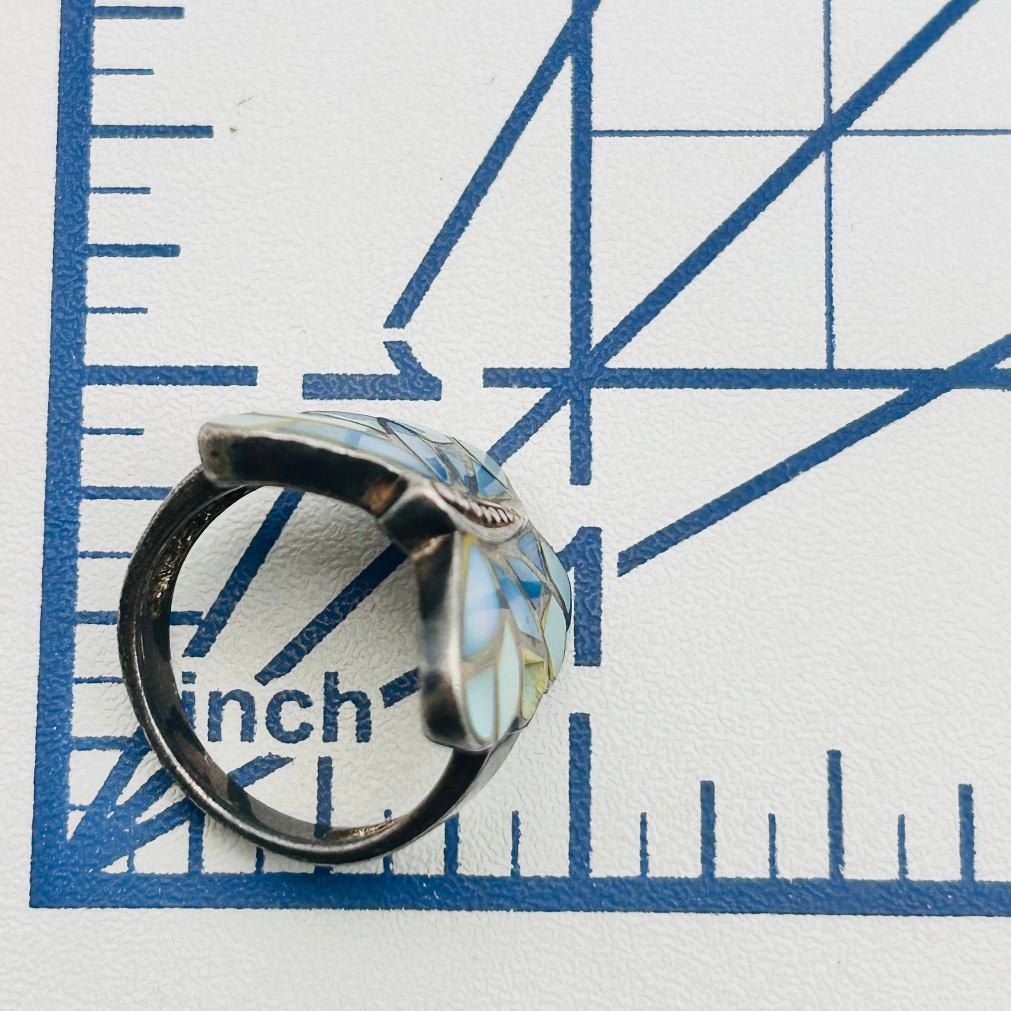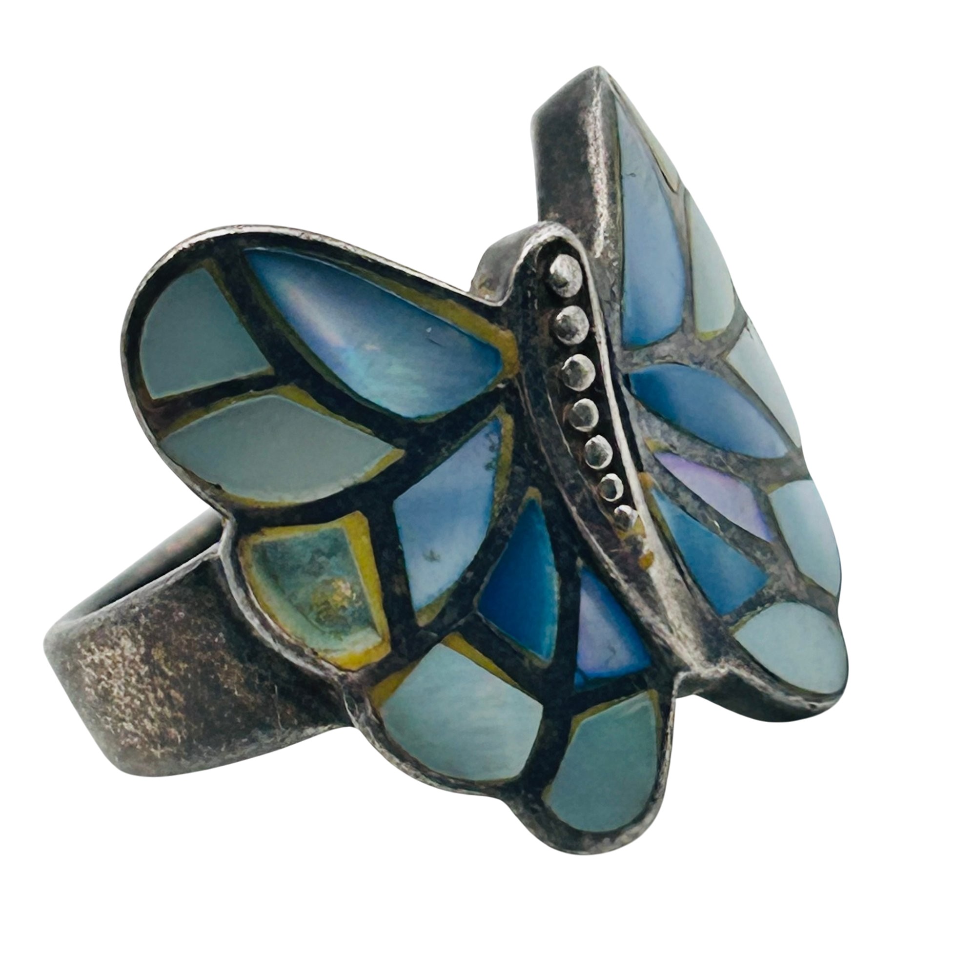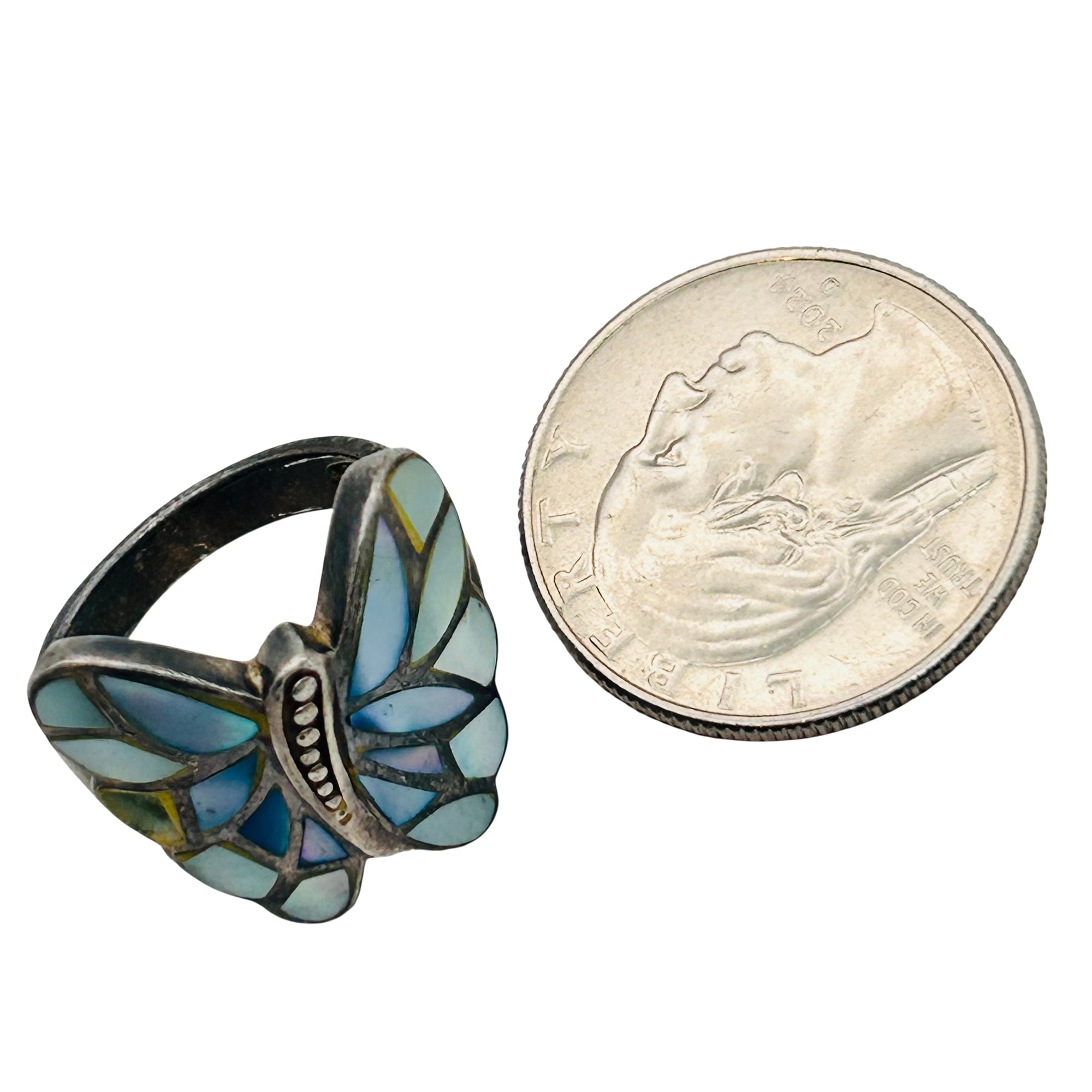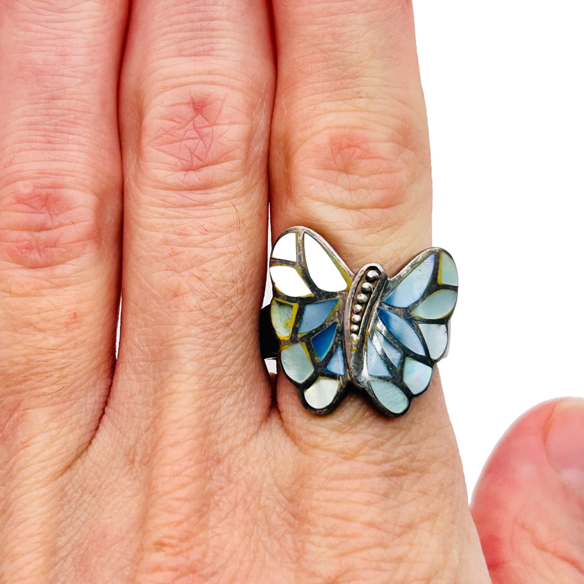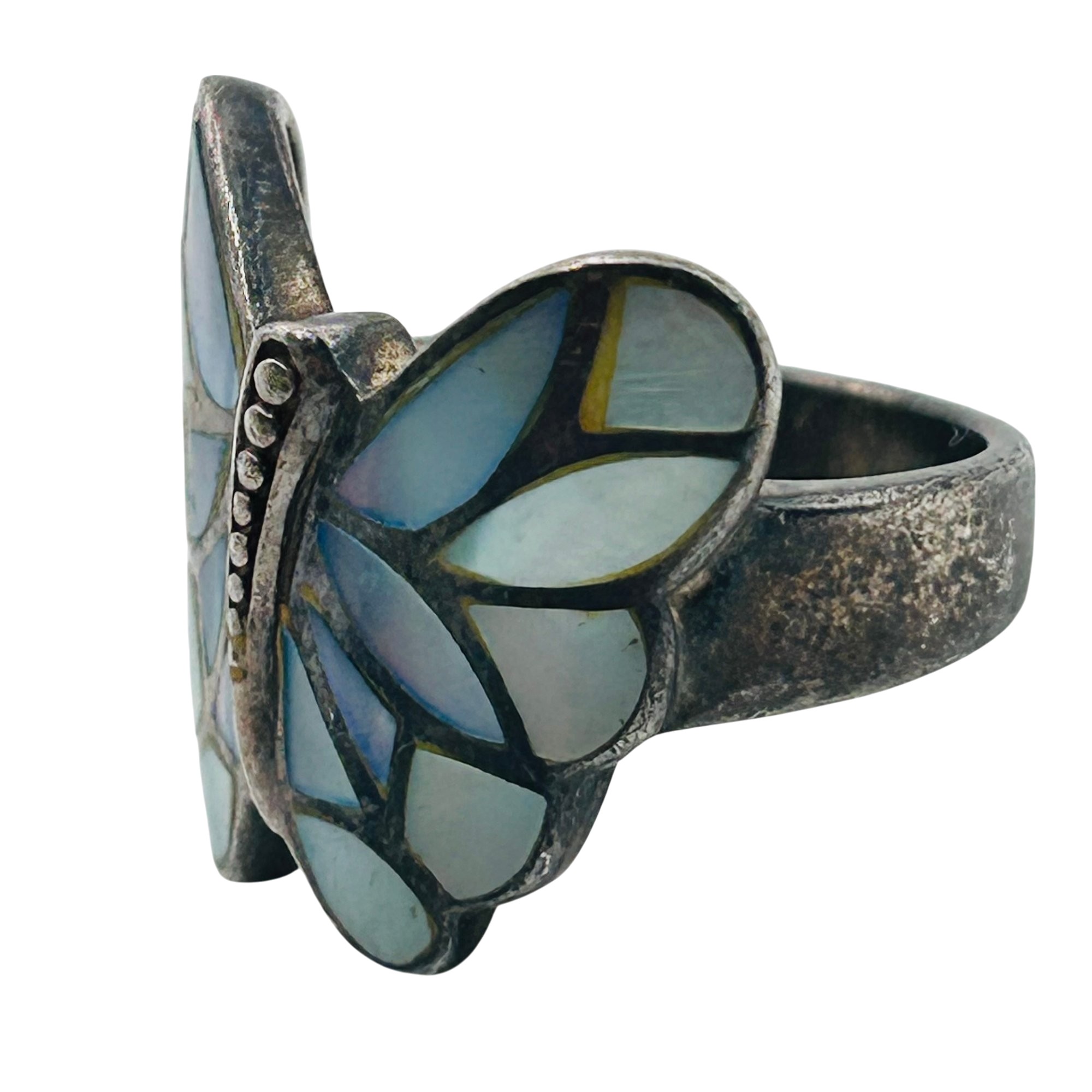 NF inlay mother of pearl Sterling butterfly ring. Size 6.5. 6.29g
