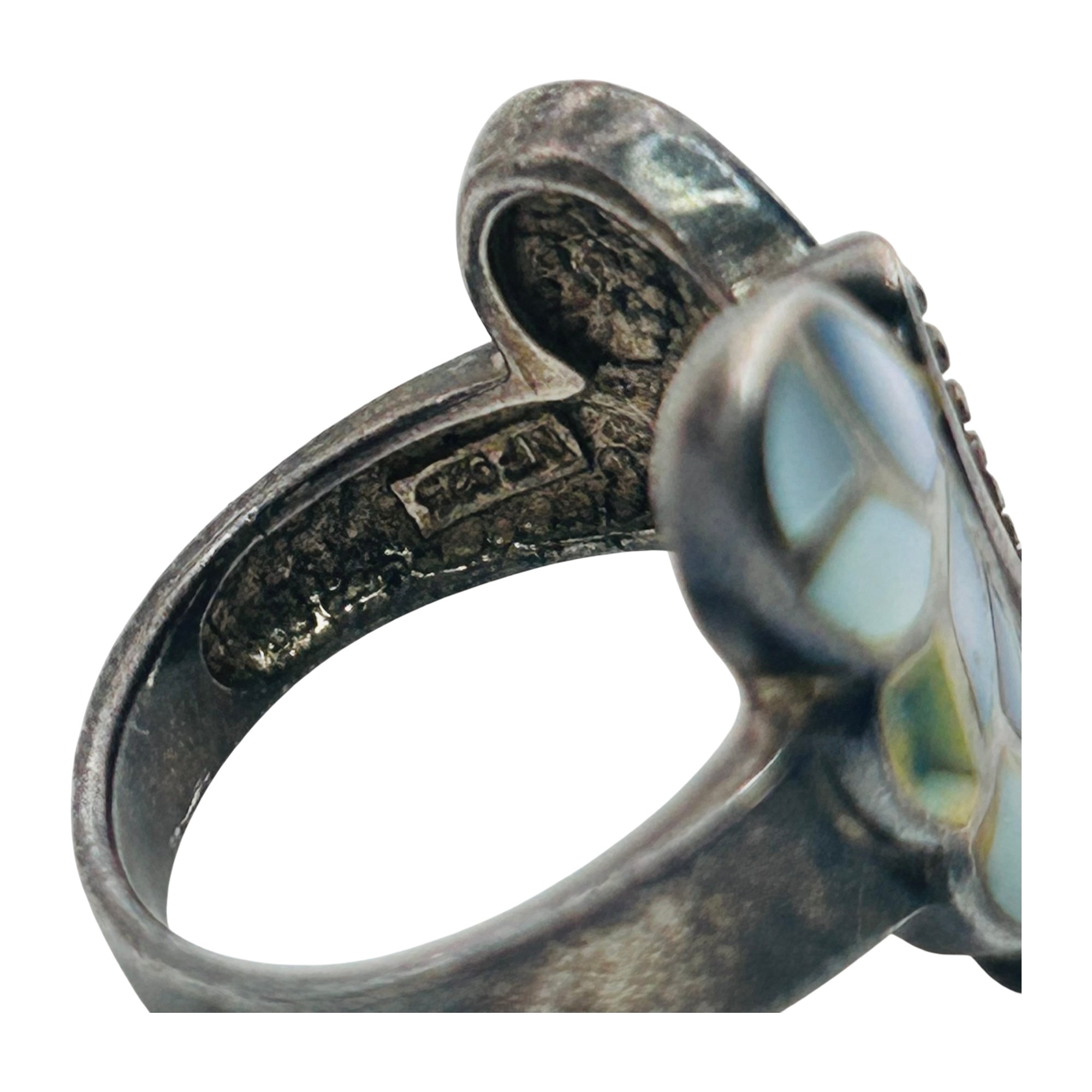 NF Sterling Inlay Mother Of Pearl Butterfly Ring Size 6.5