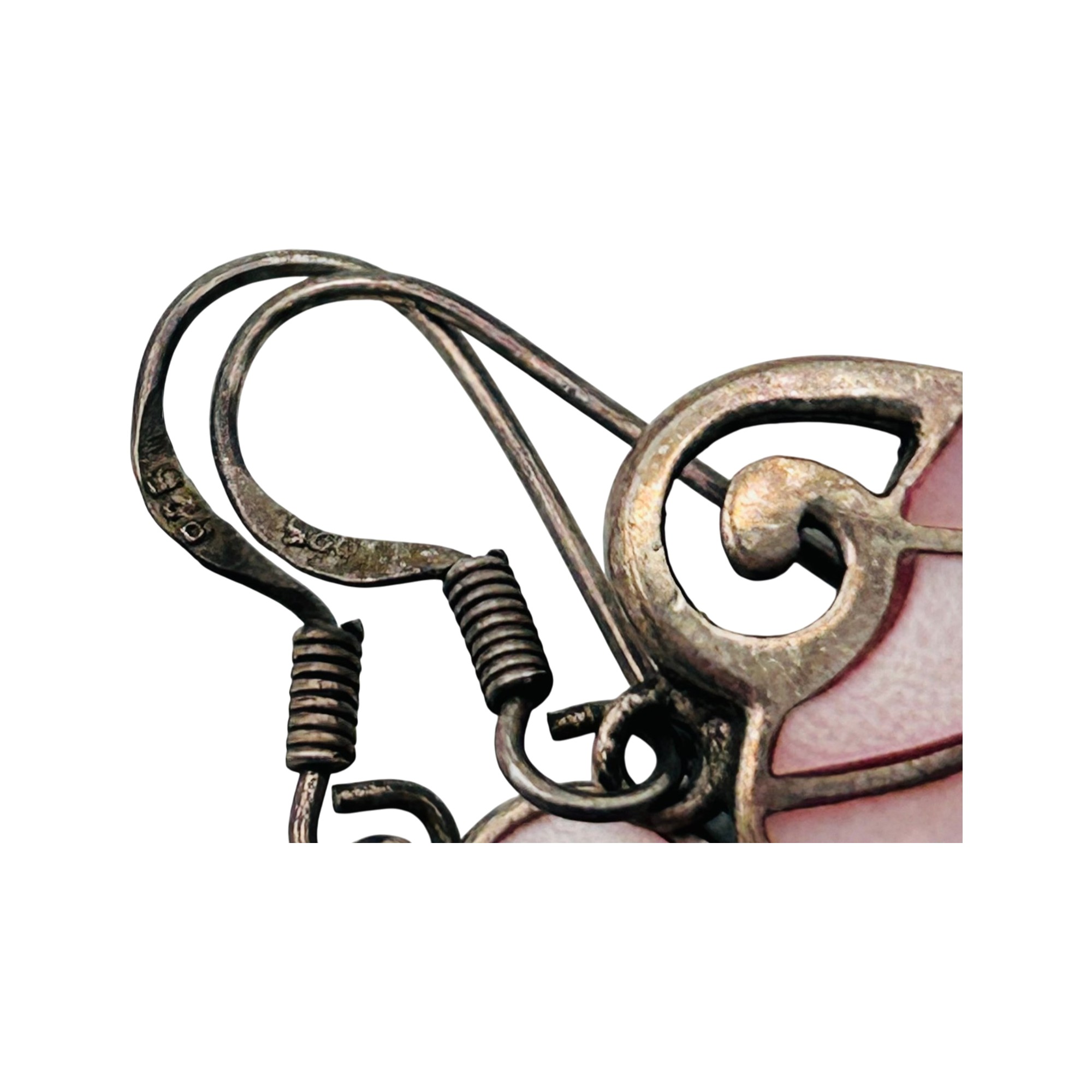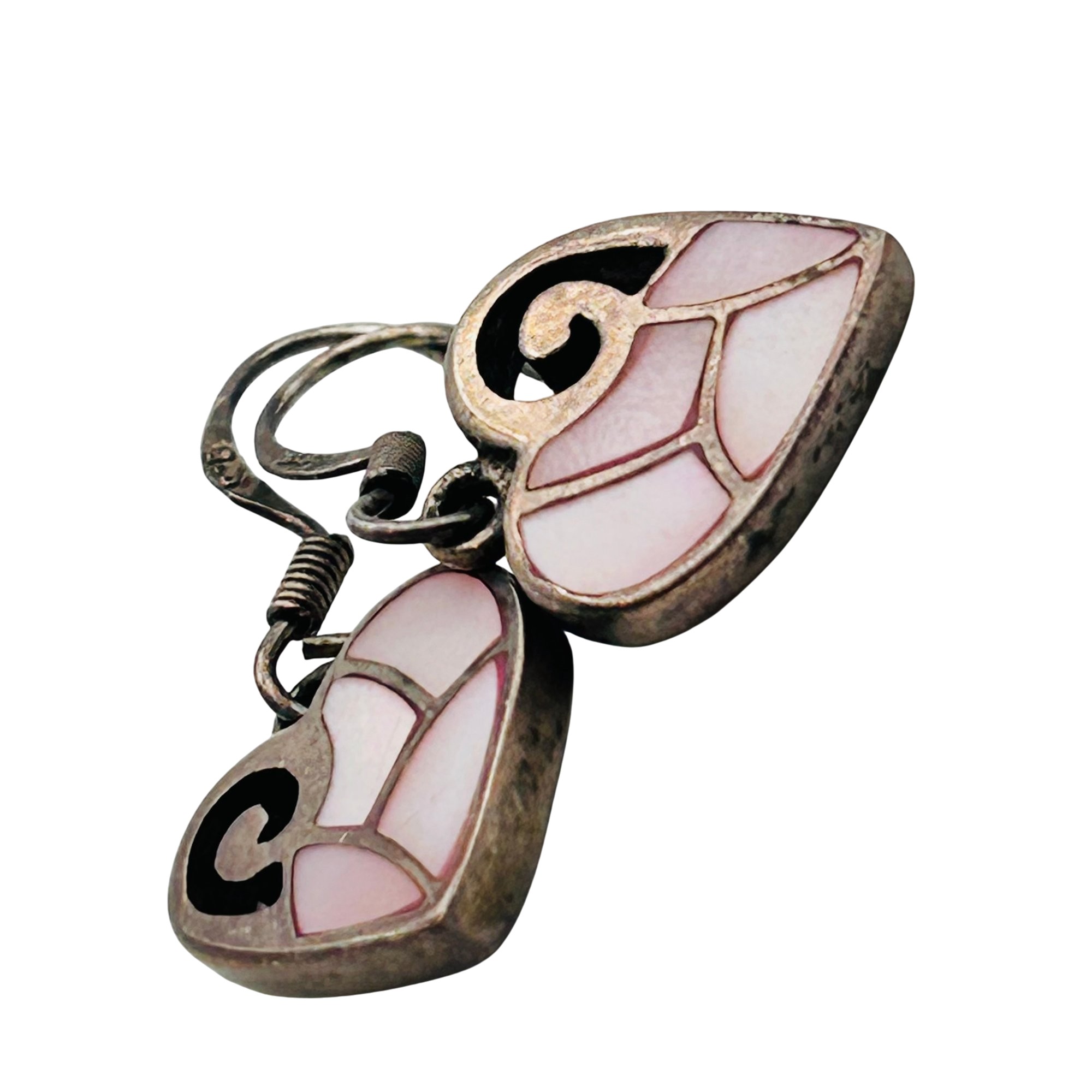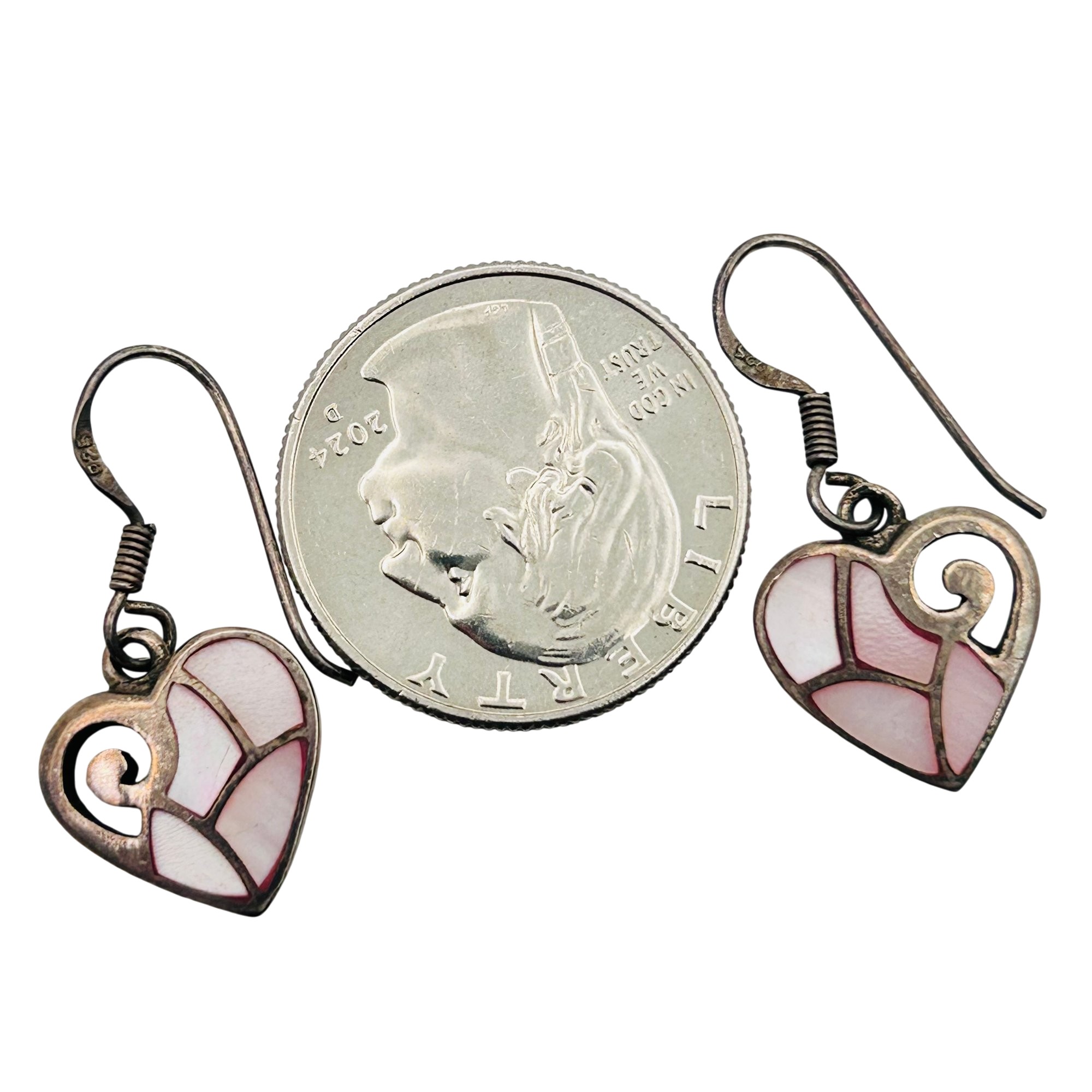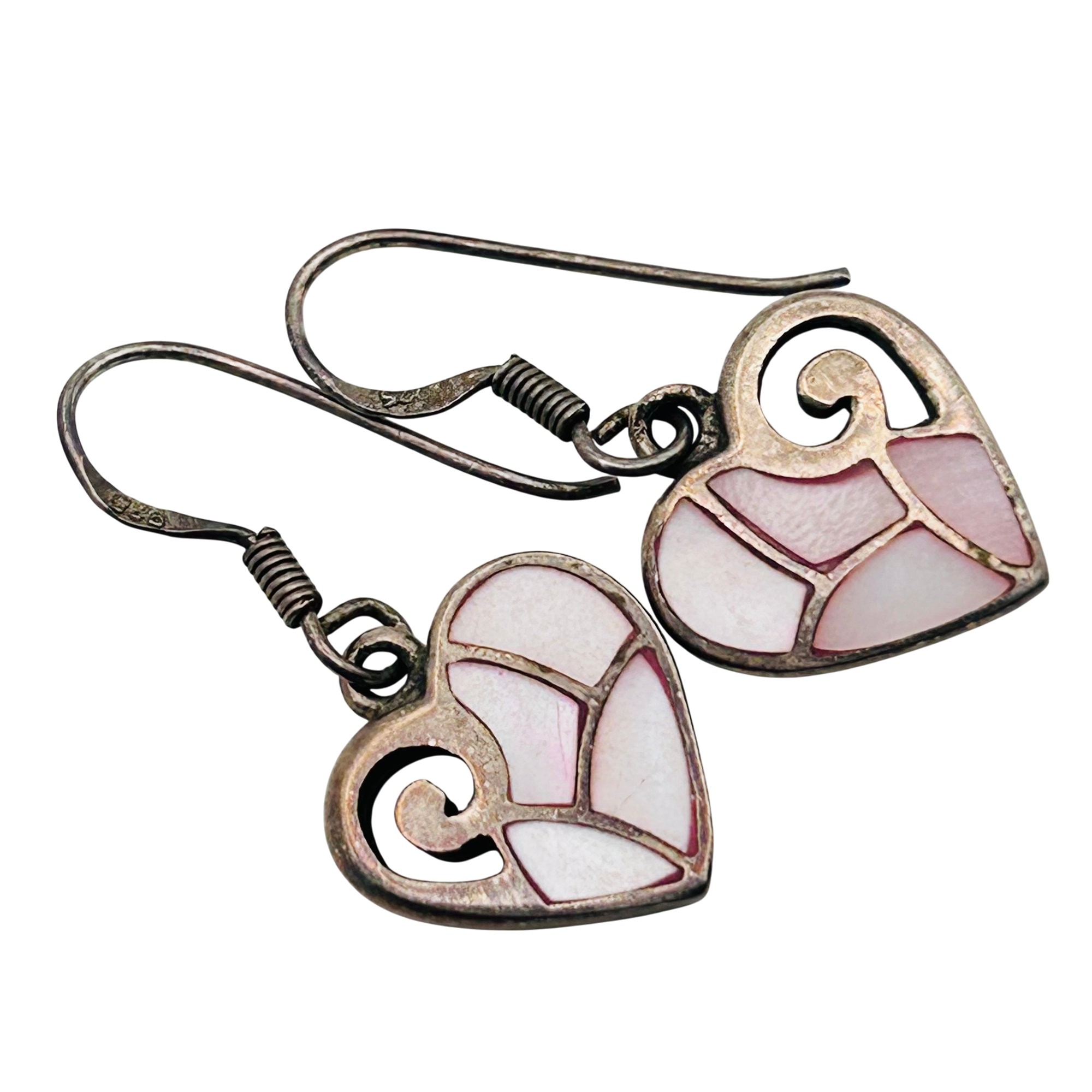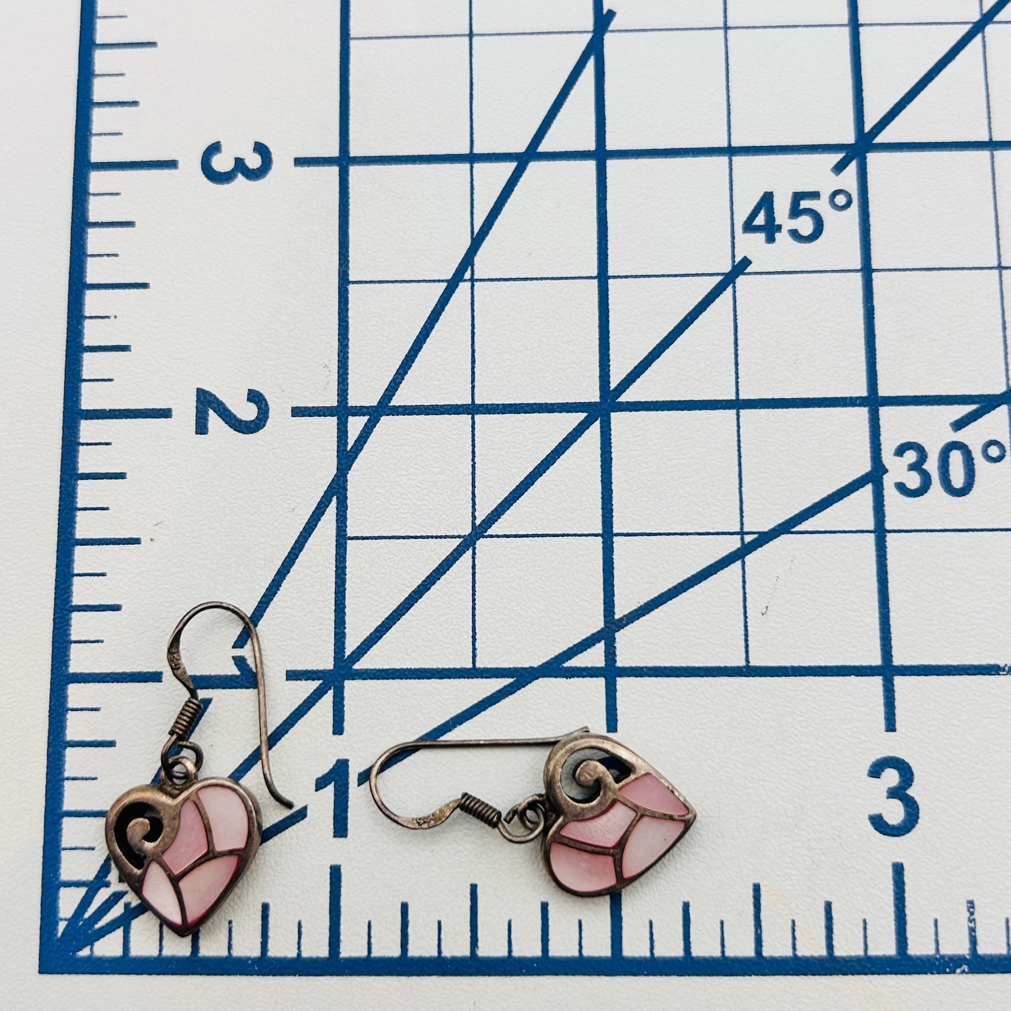 Mother of pearl Sterling heart hook back earrings. 5.61g