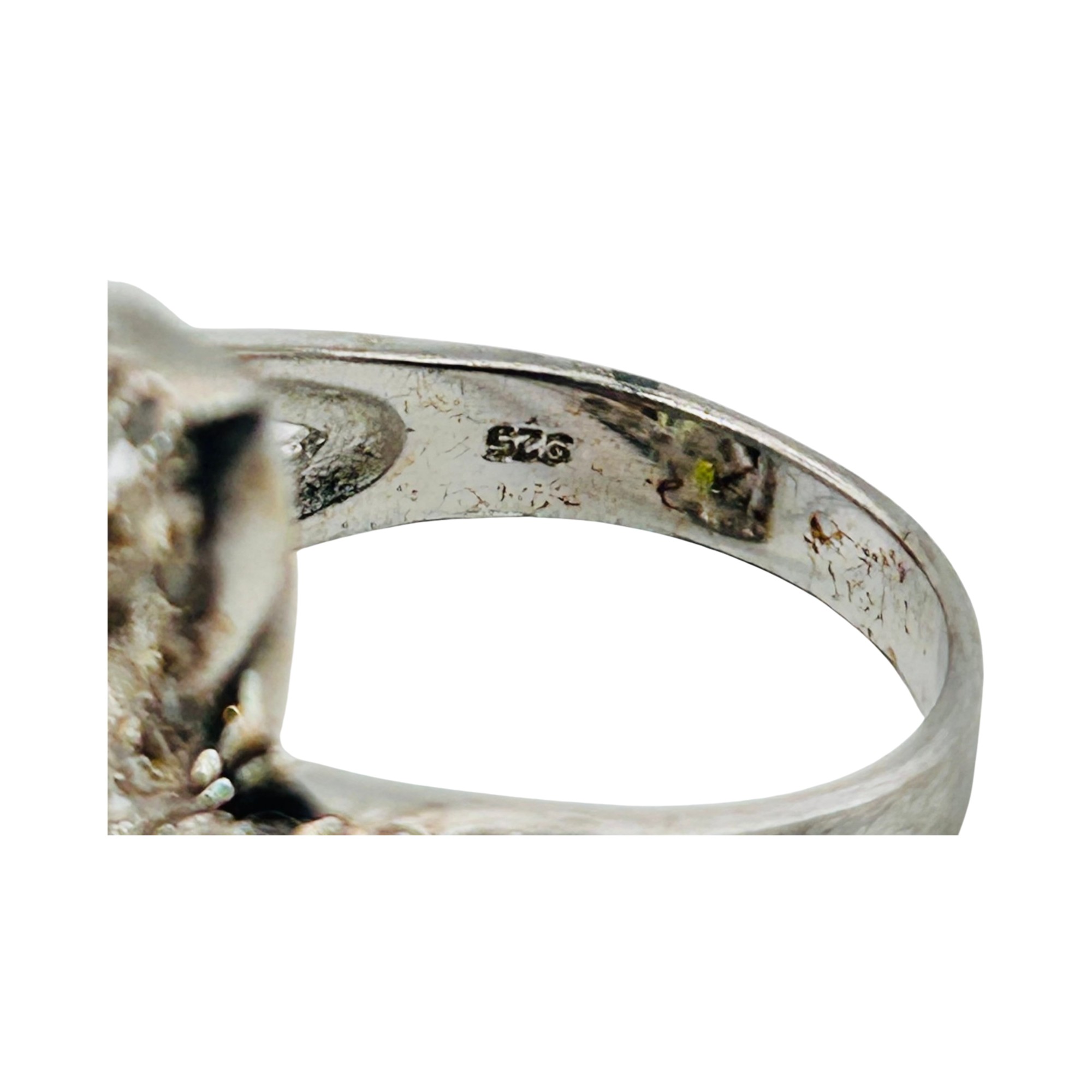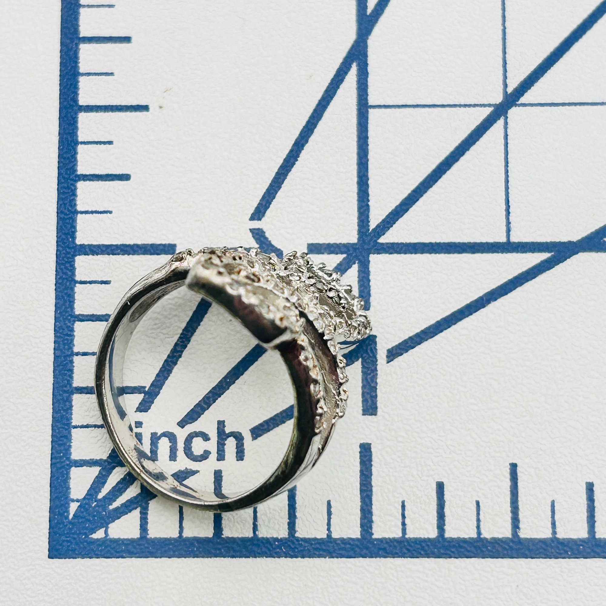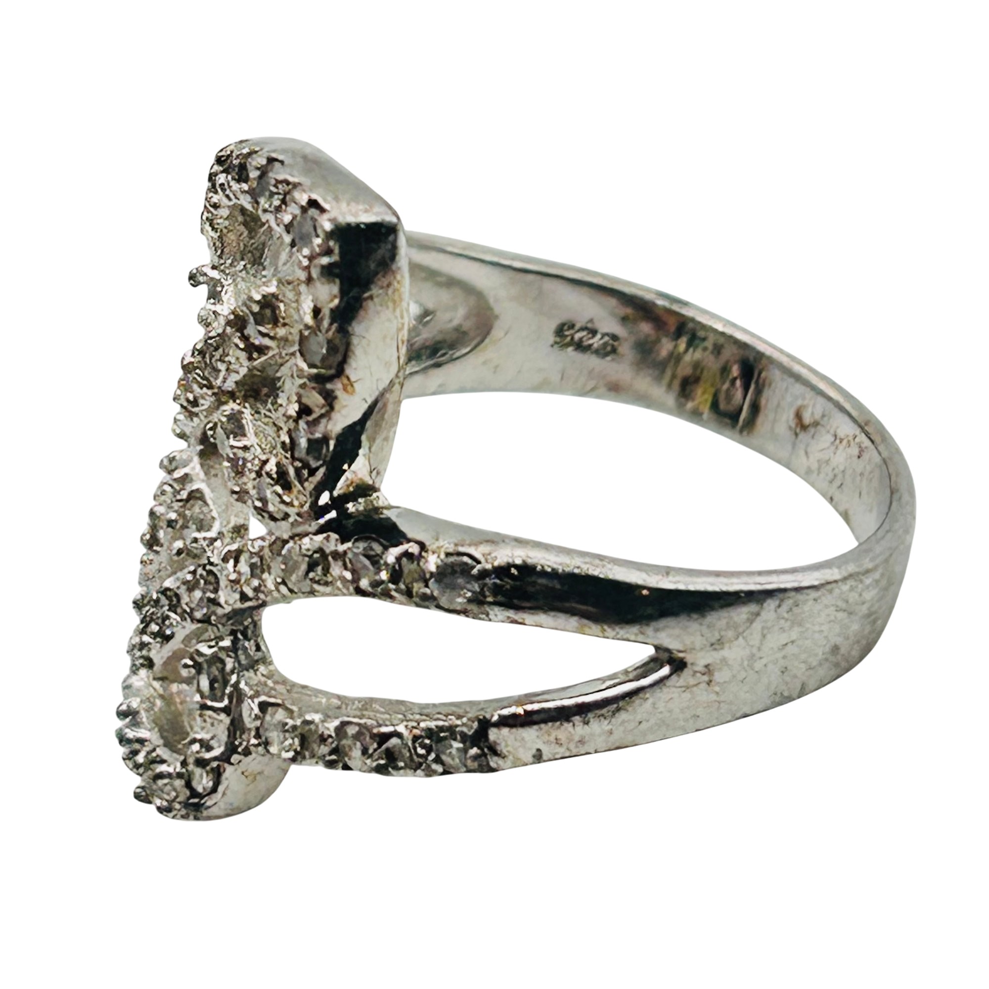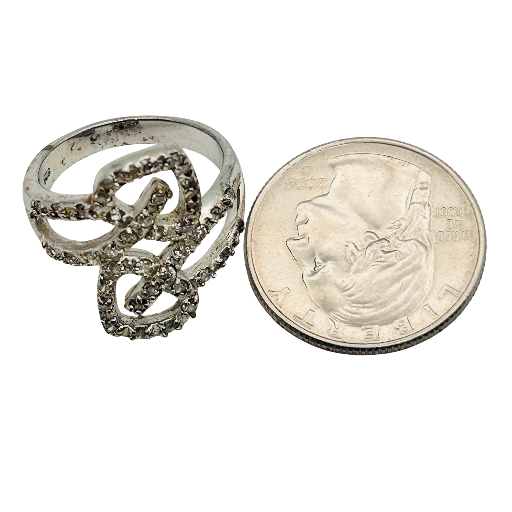 Sterling Rhinestone Double Heart Bypass Ring Size 8