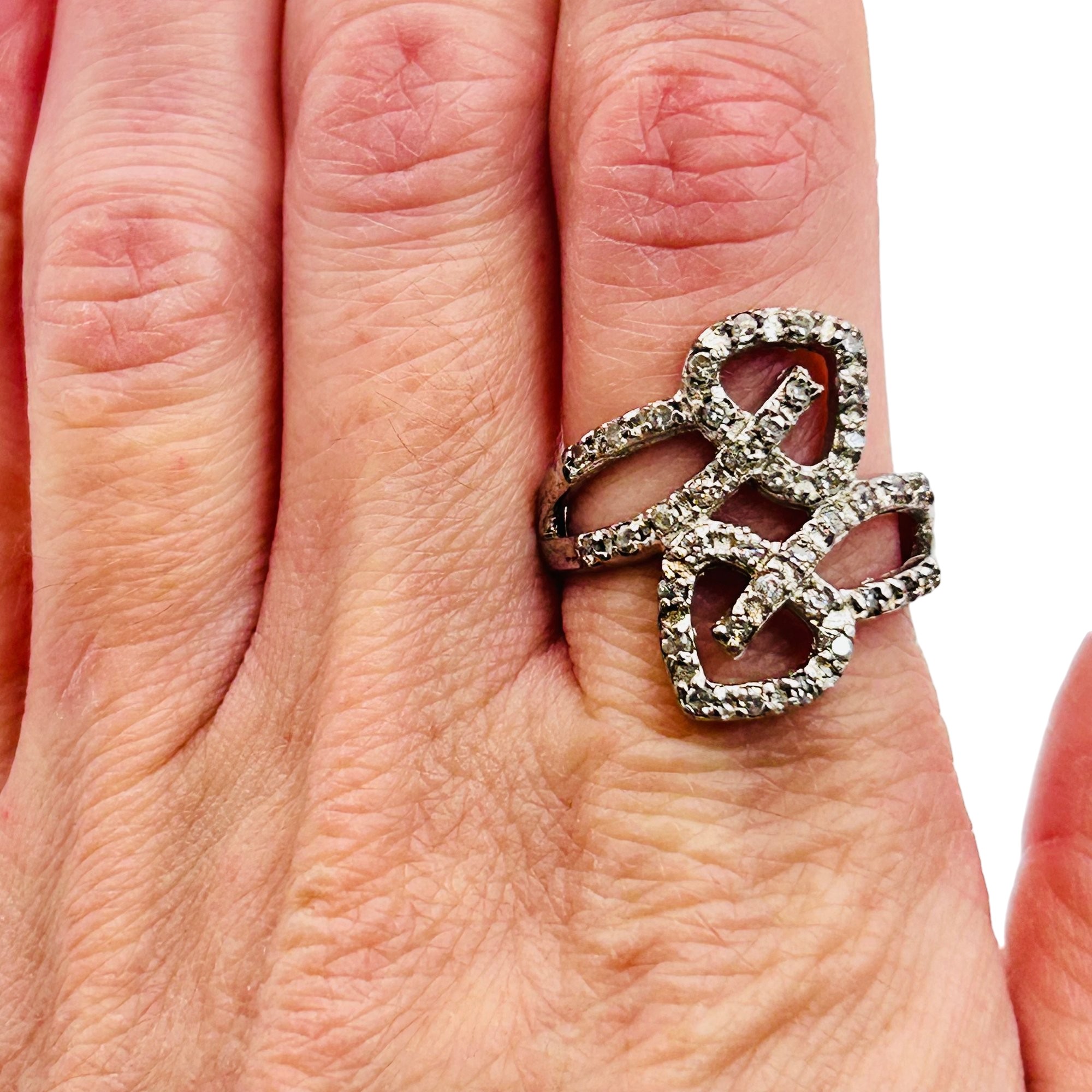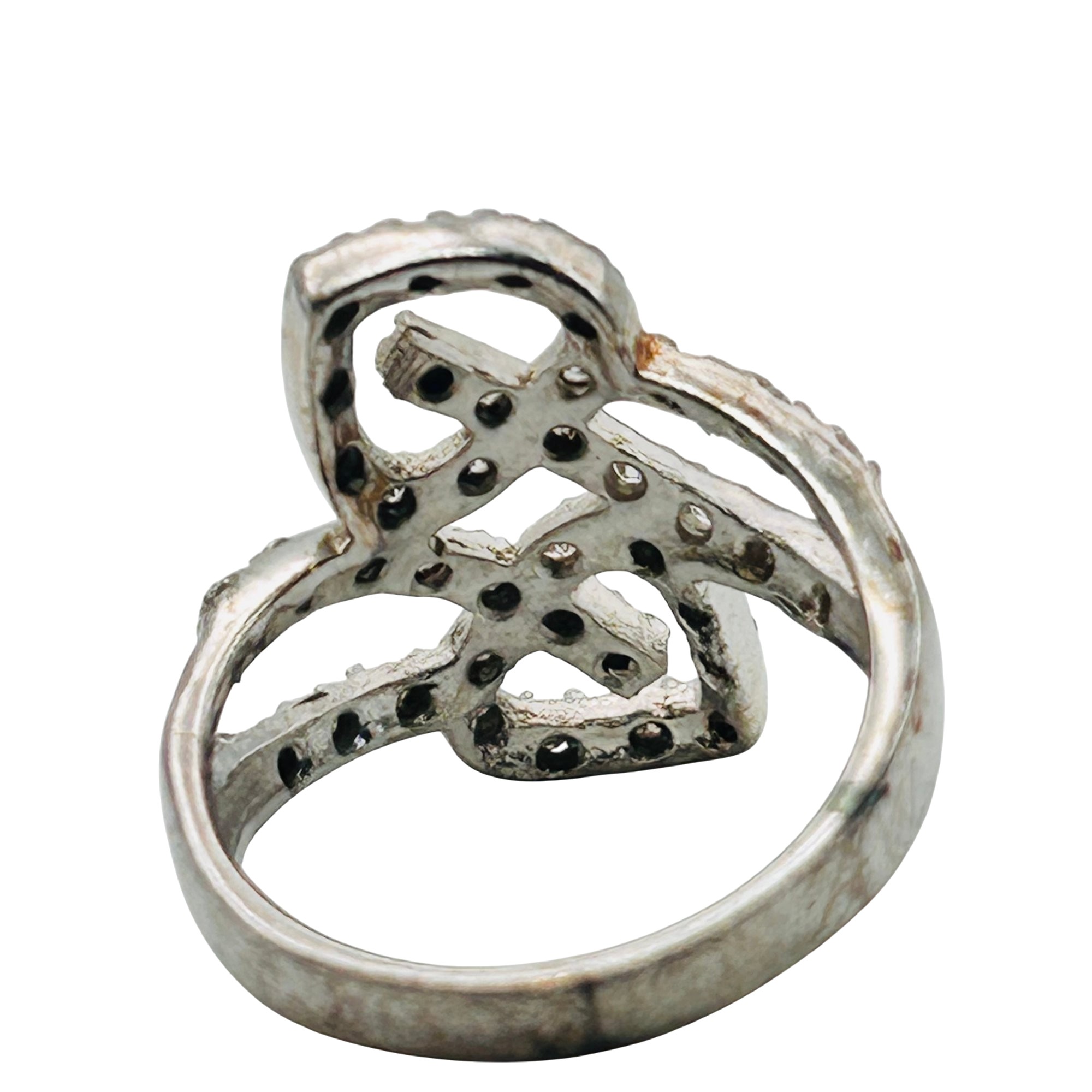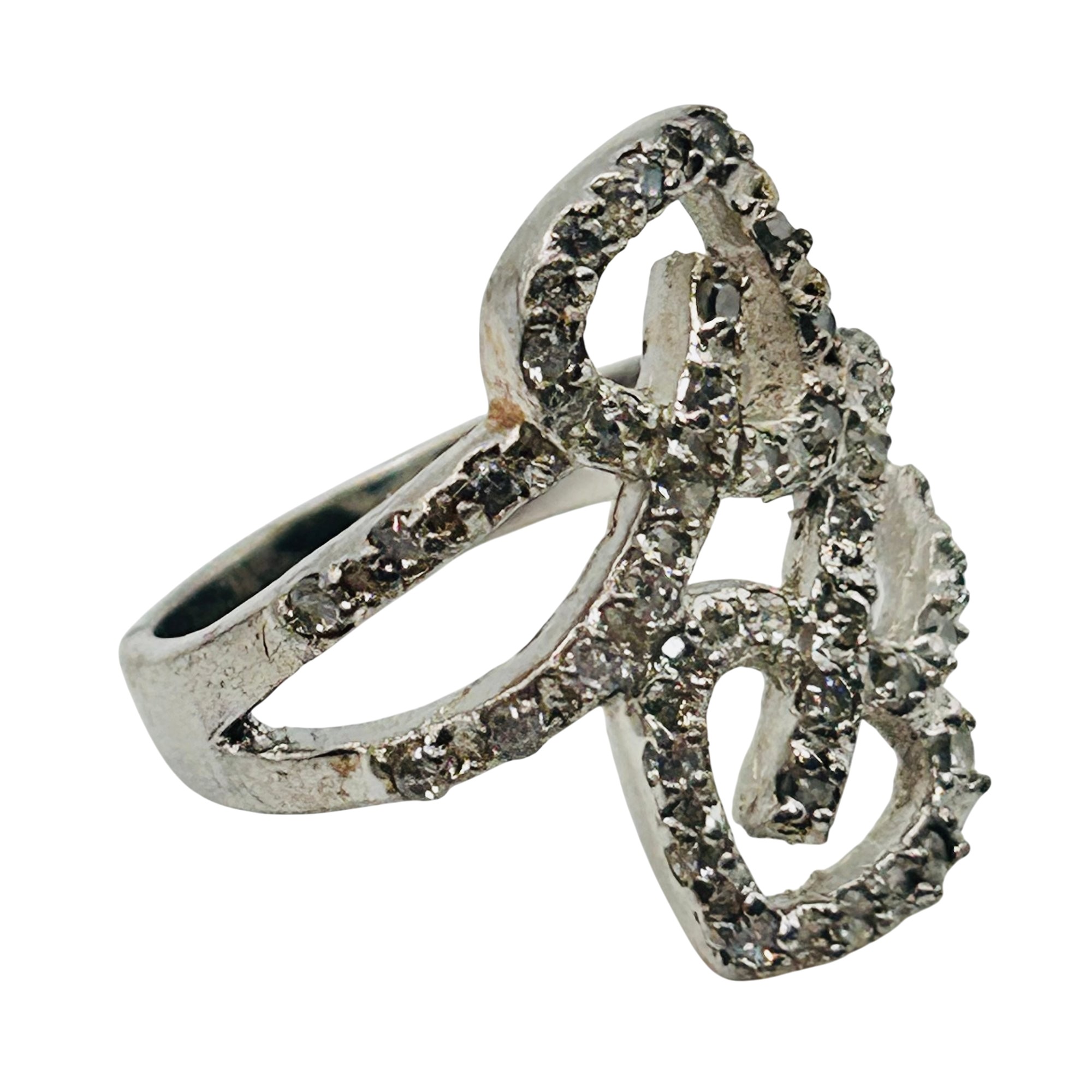 Rhinestone Sterling double heart bypass ring. Size 8. 5.25g