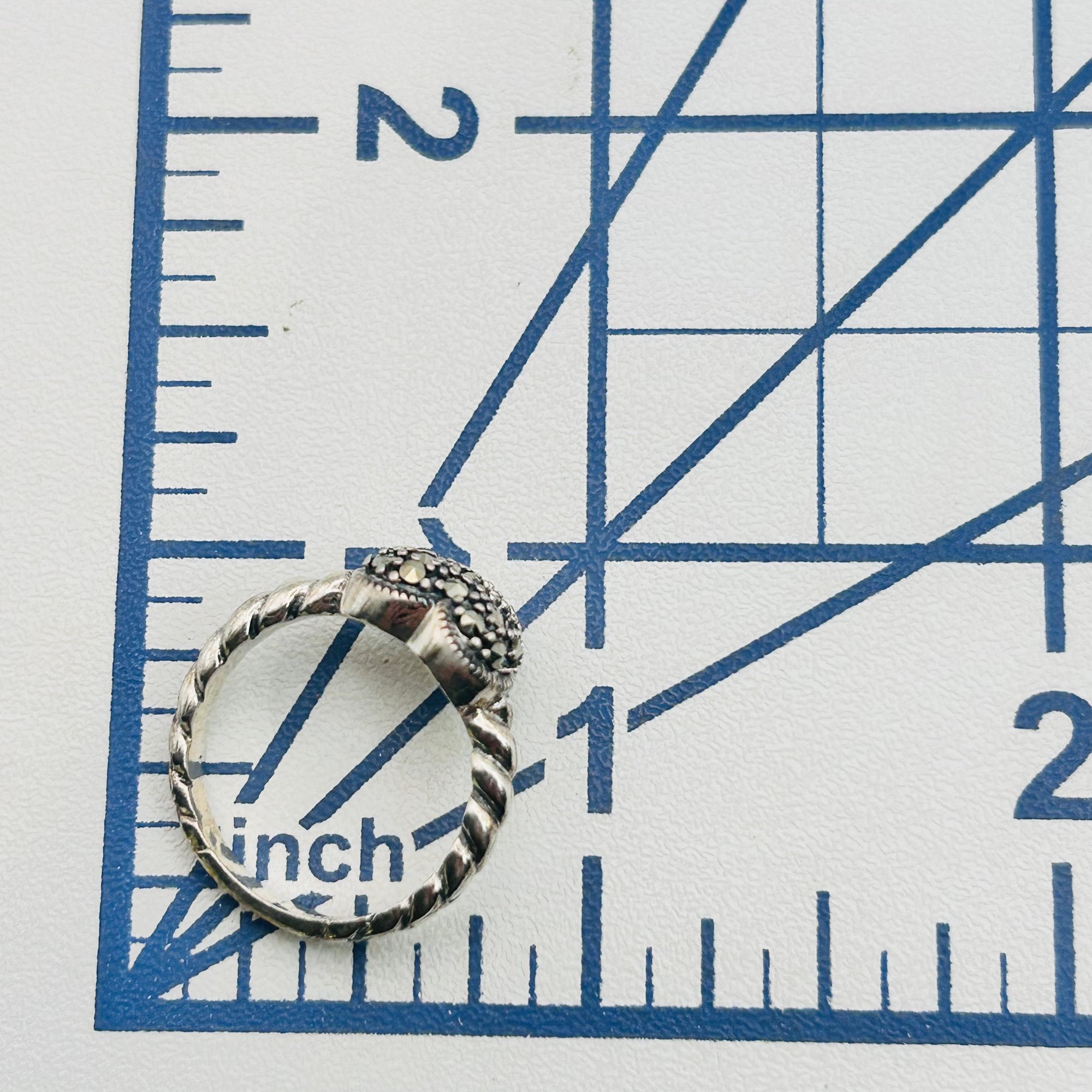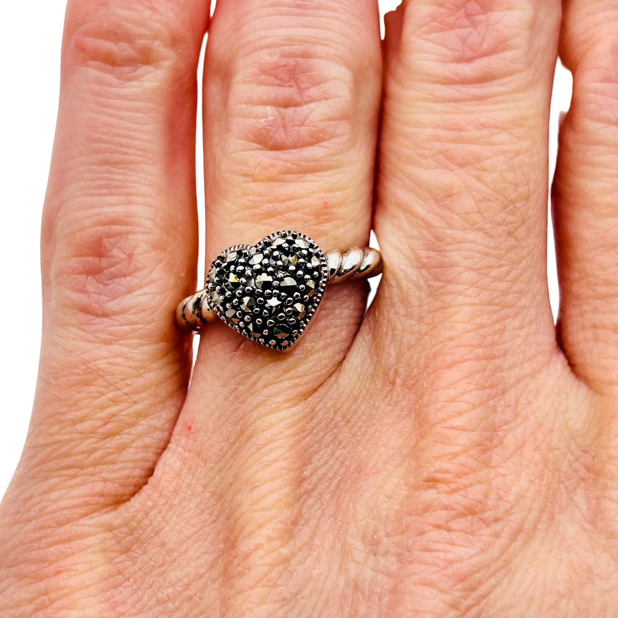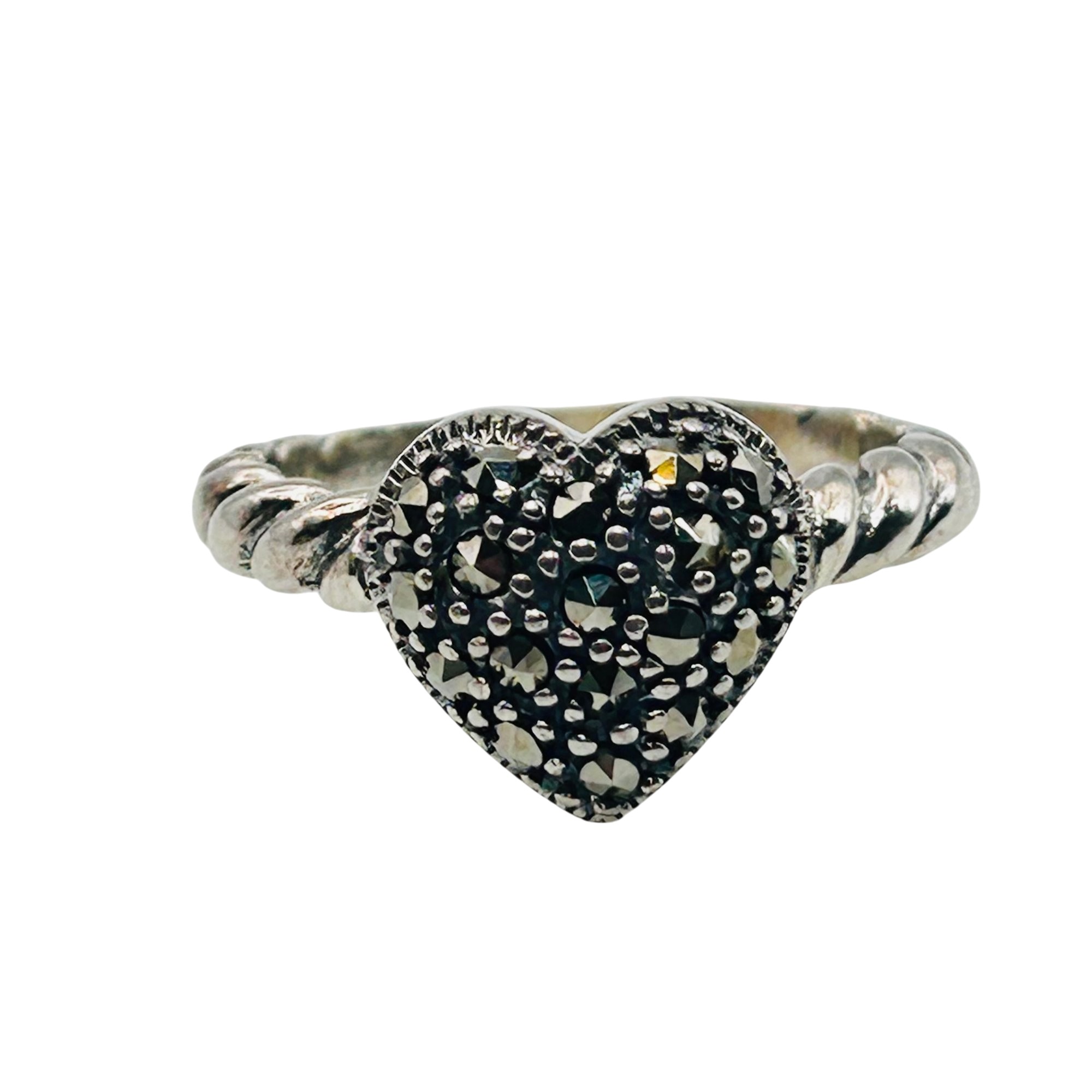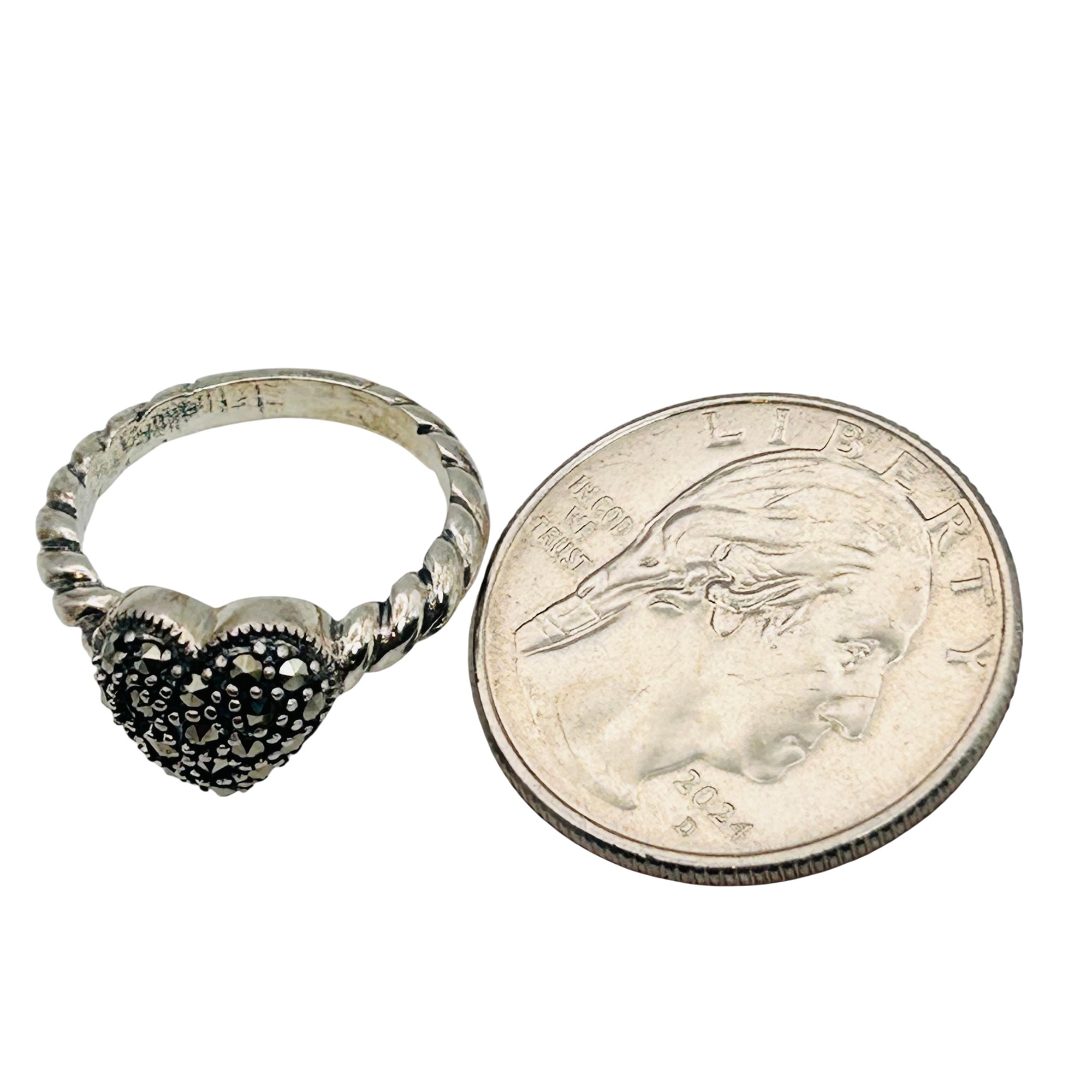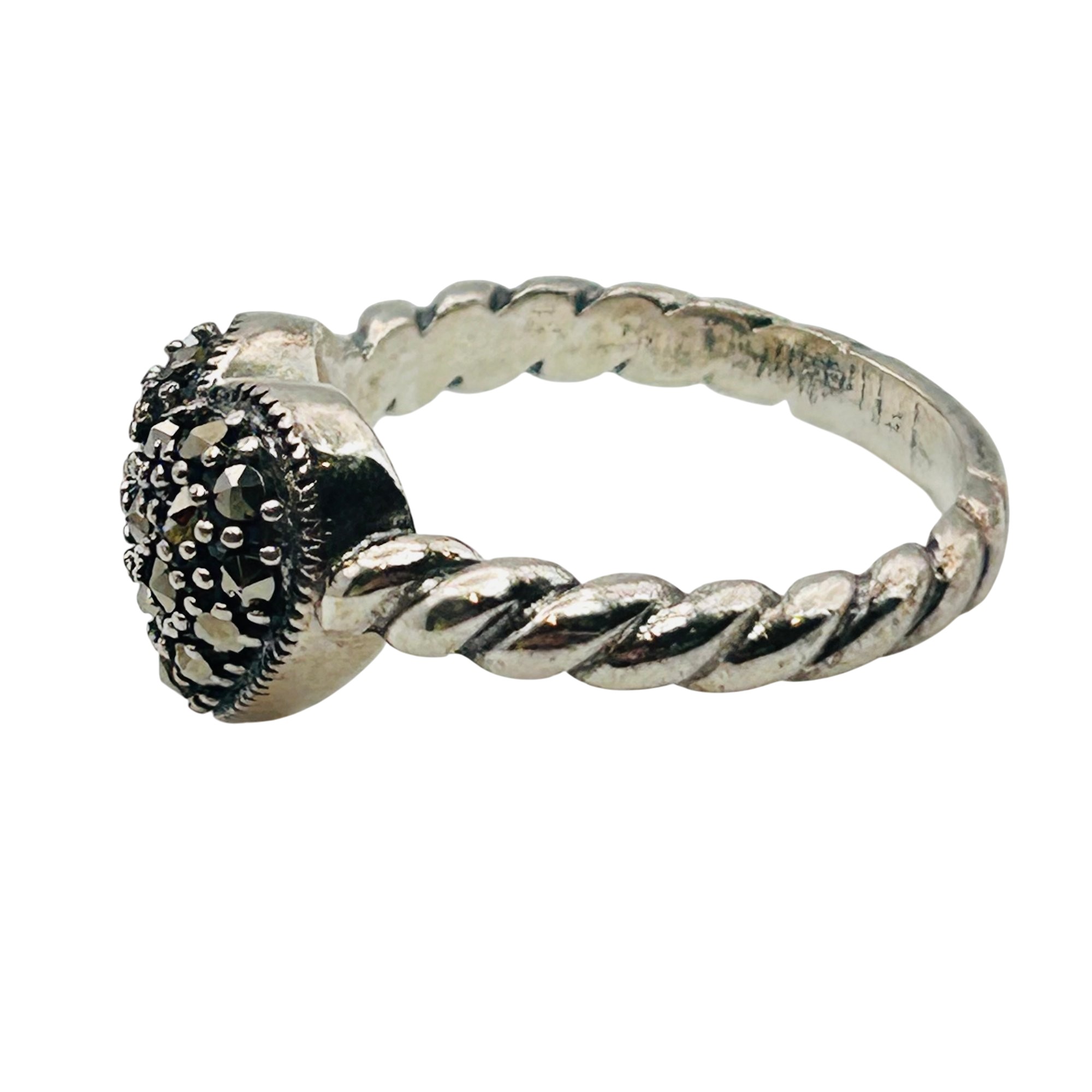MARCASITE Sterling heart twist band ring. Size 5.5. 3.38g