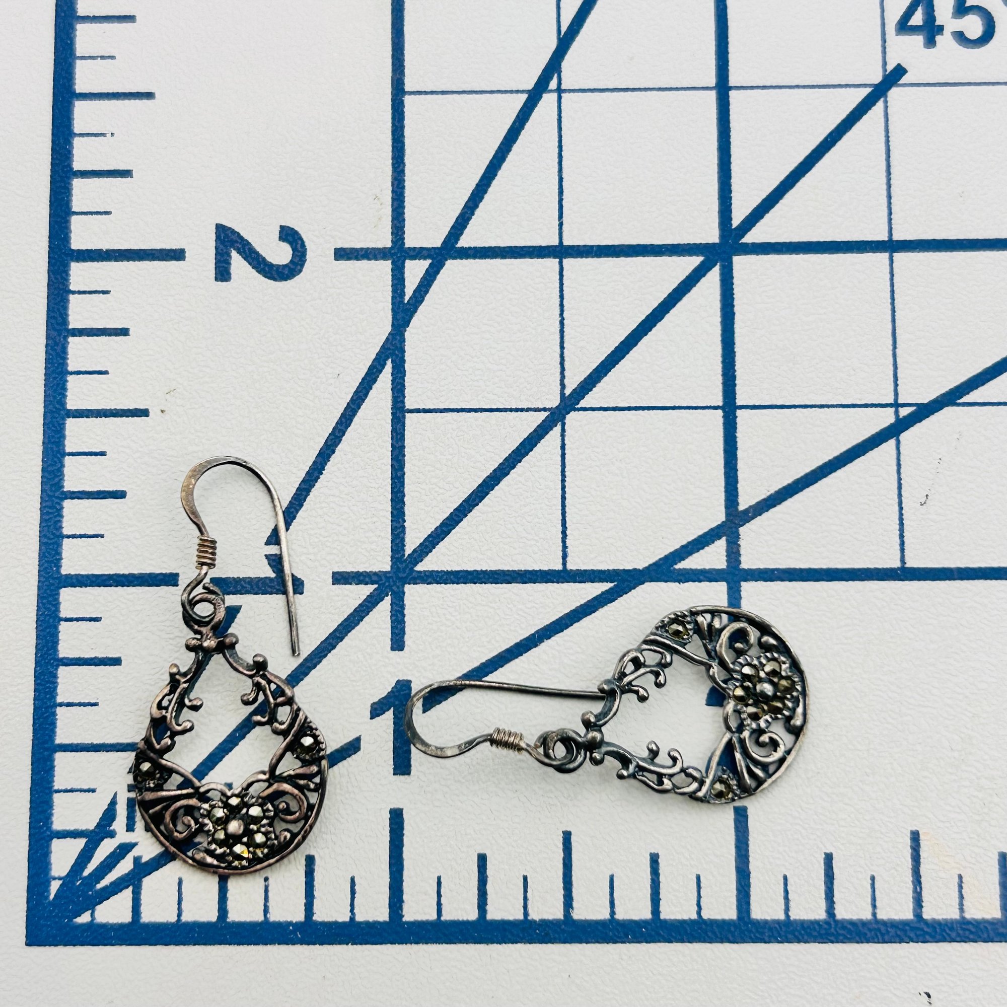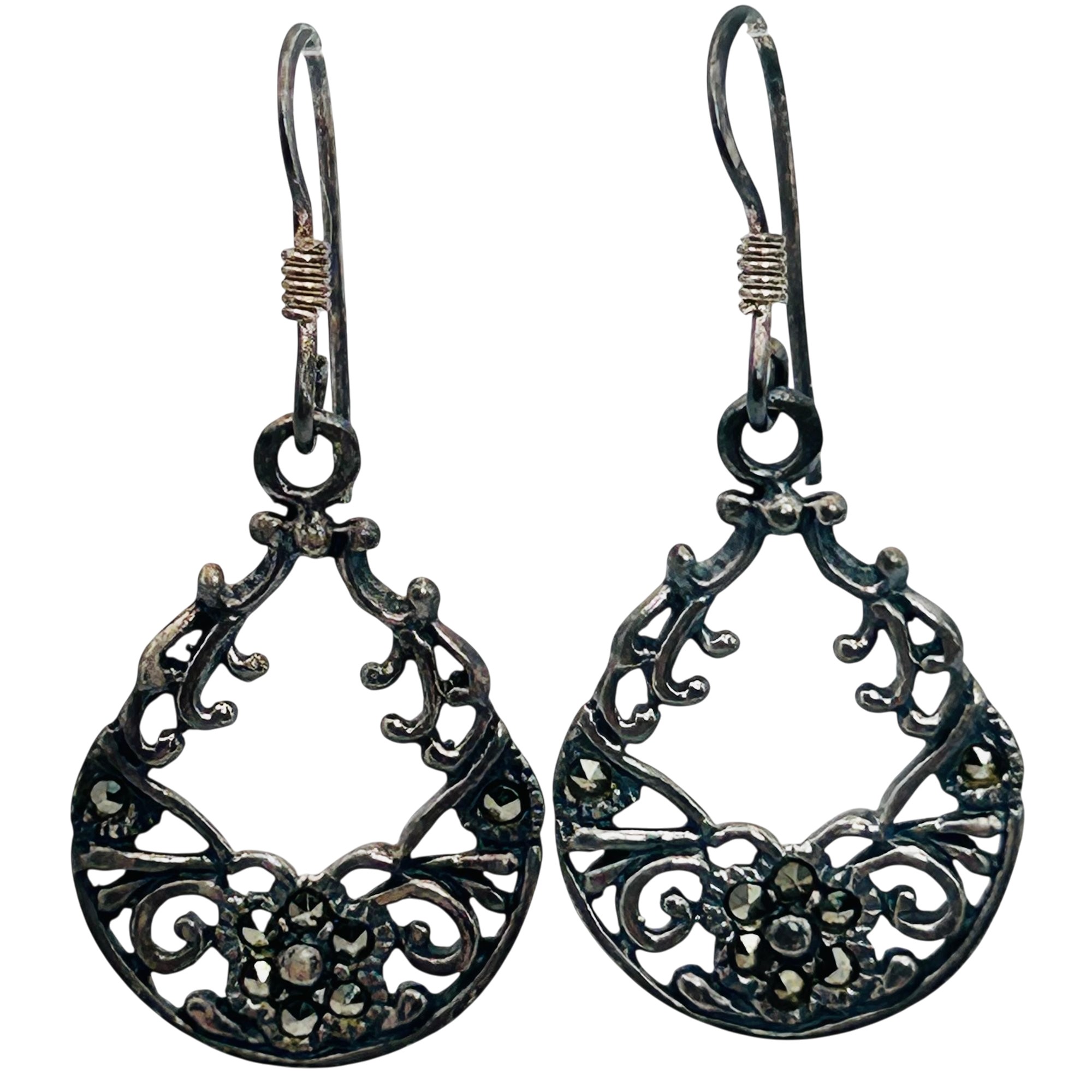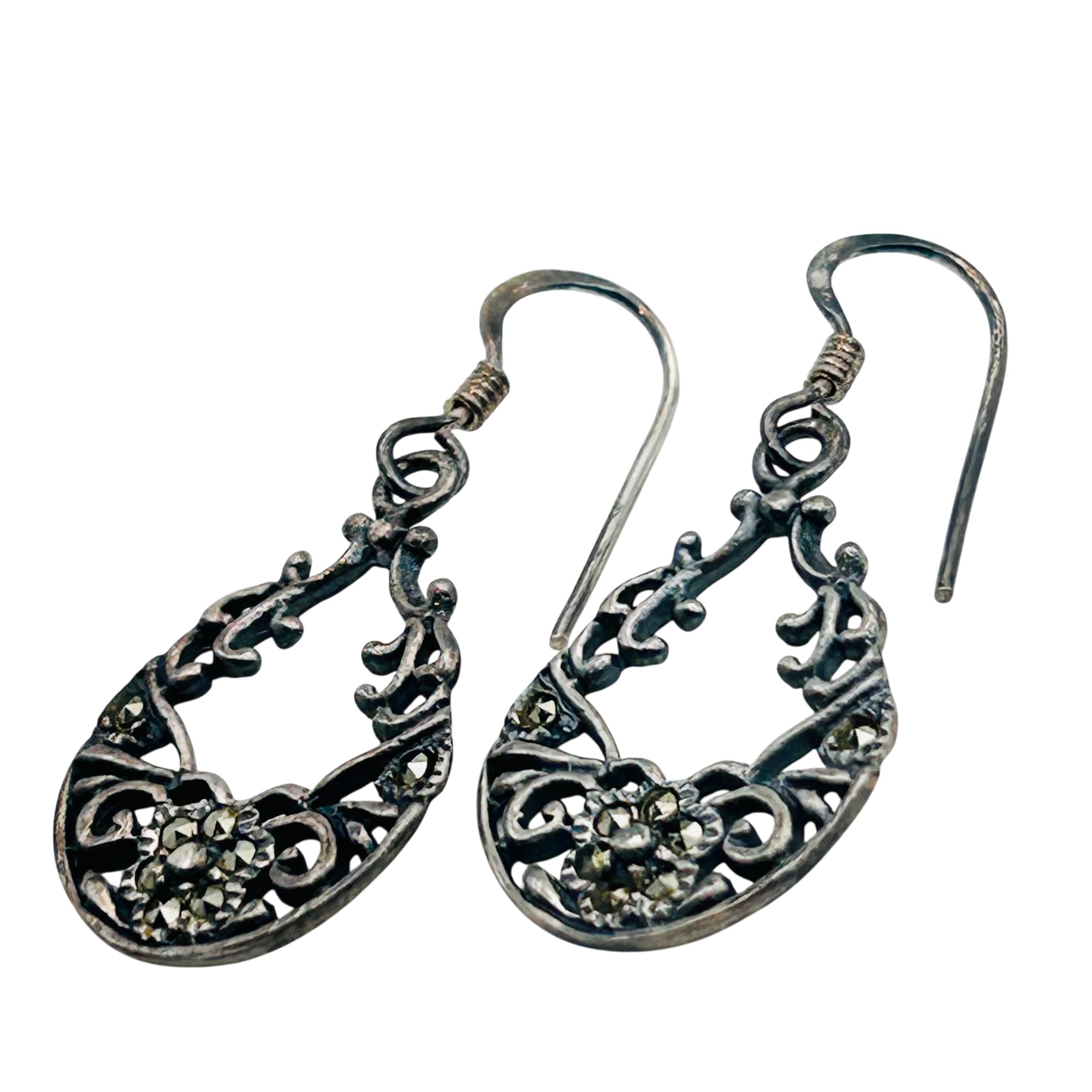 Cw marcasite Sterling flower detail dangle earrings. 2.26g