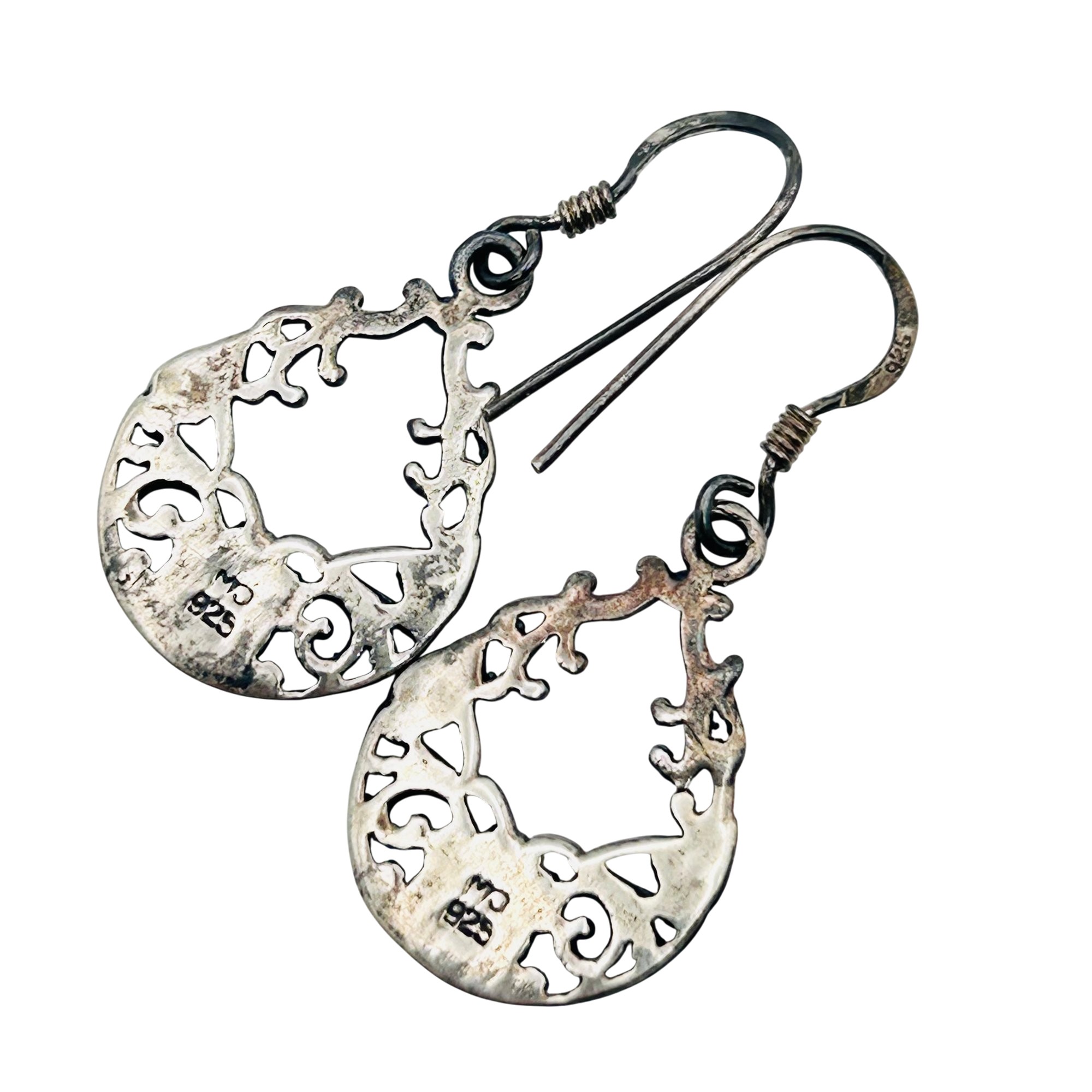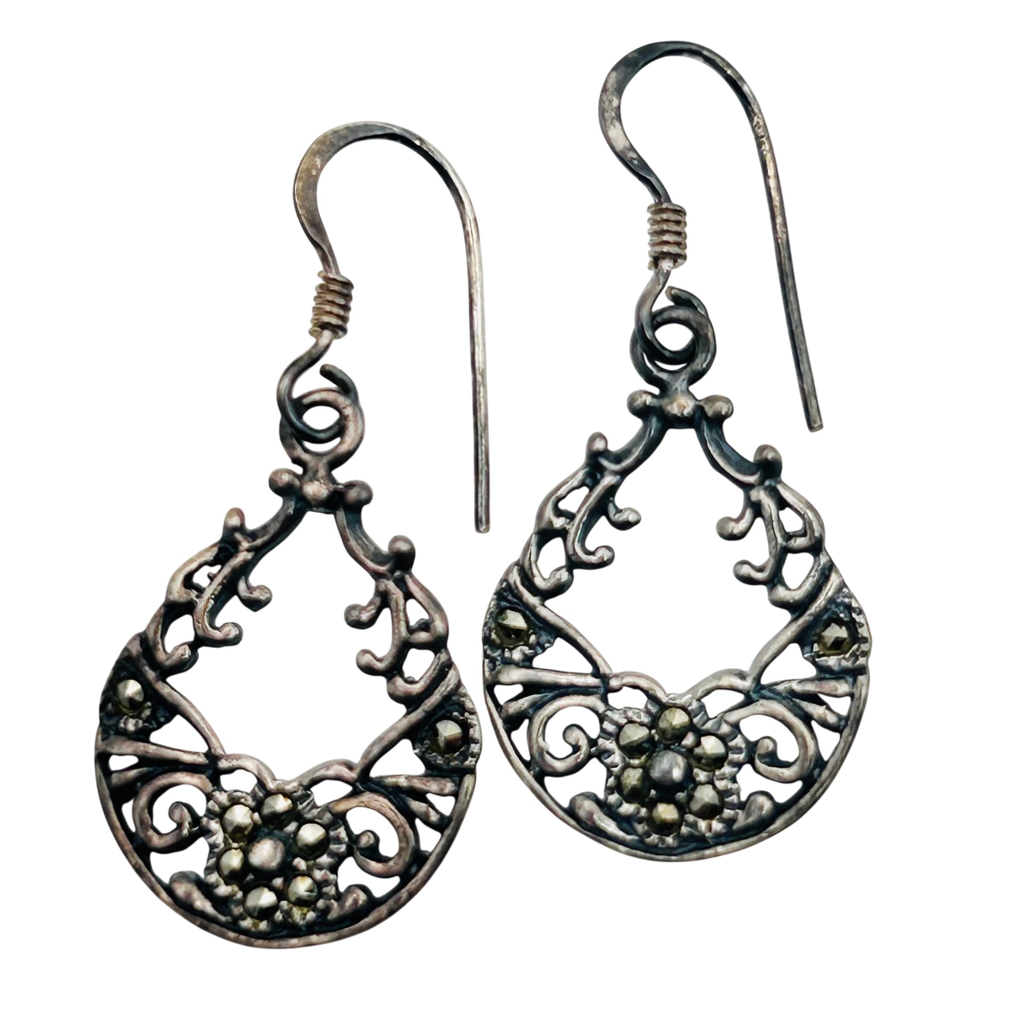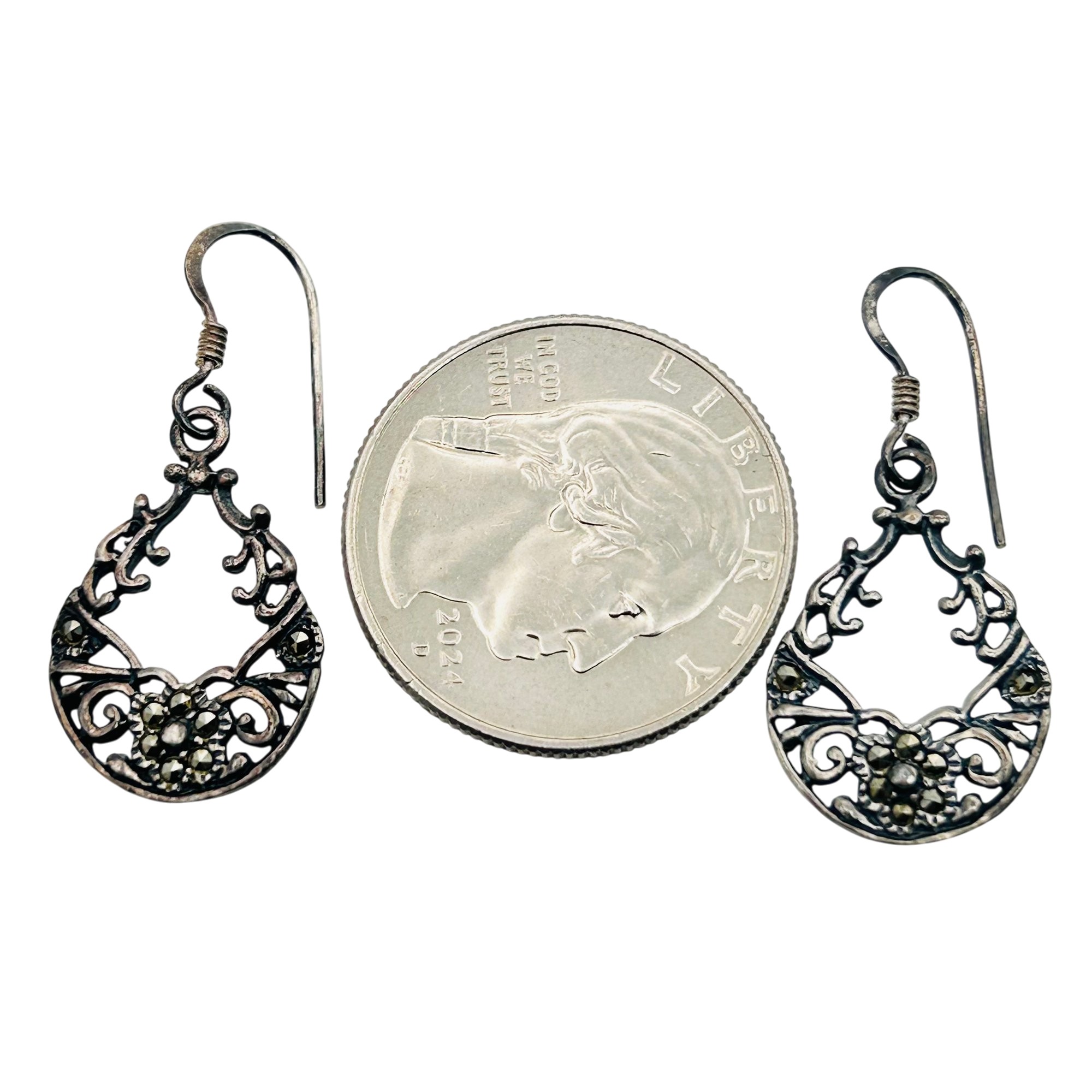 Cw marcasite Sterling flower detail dangle earrings. 2.26g