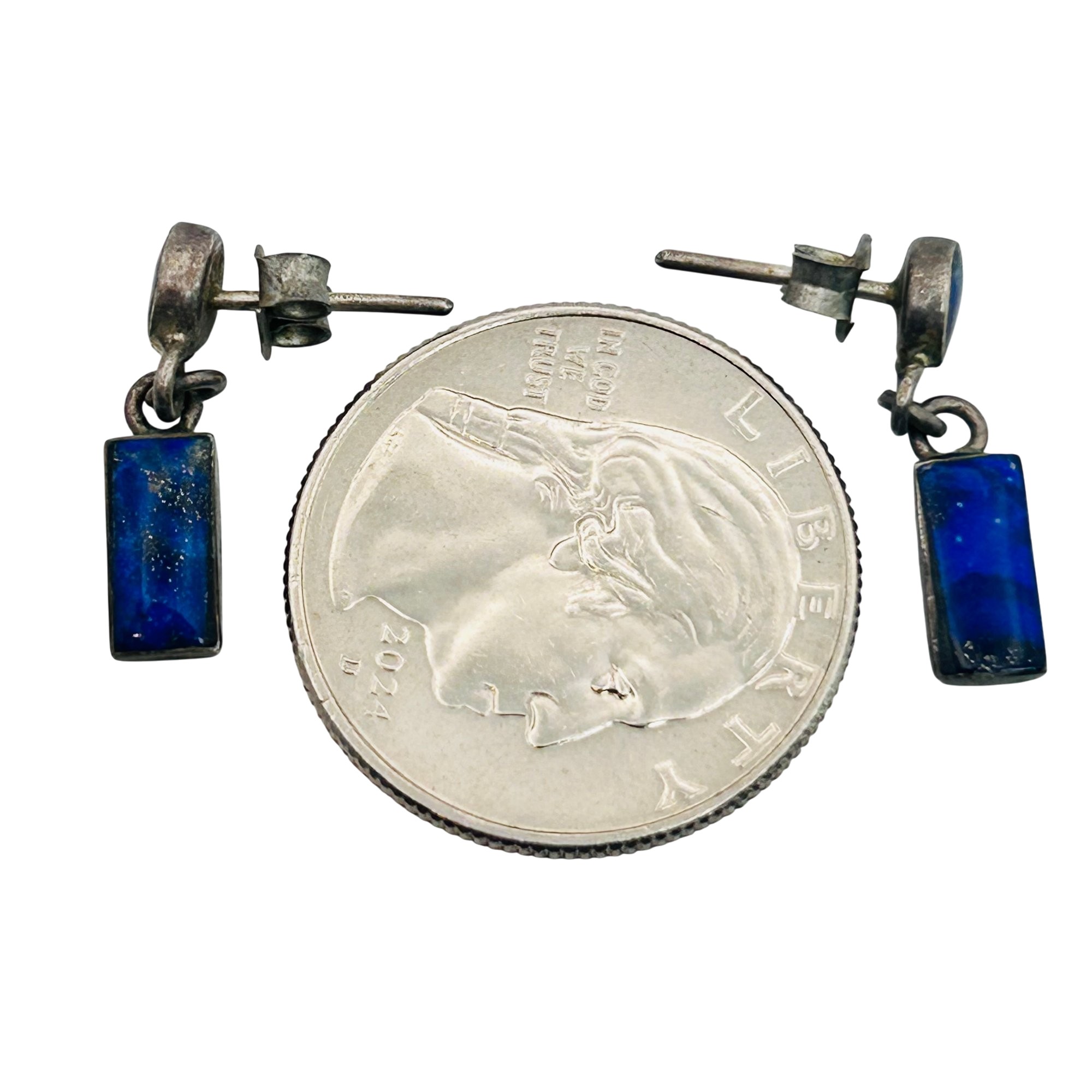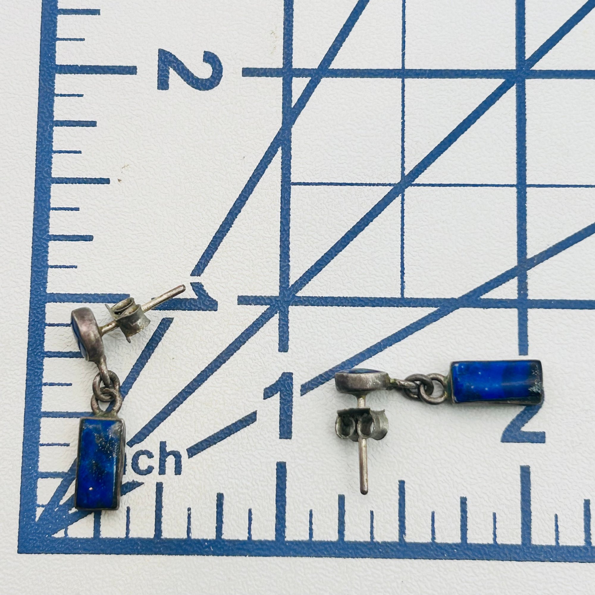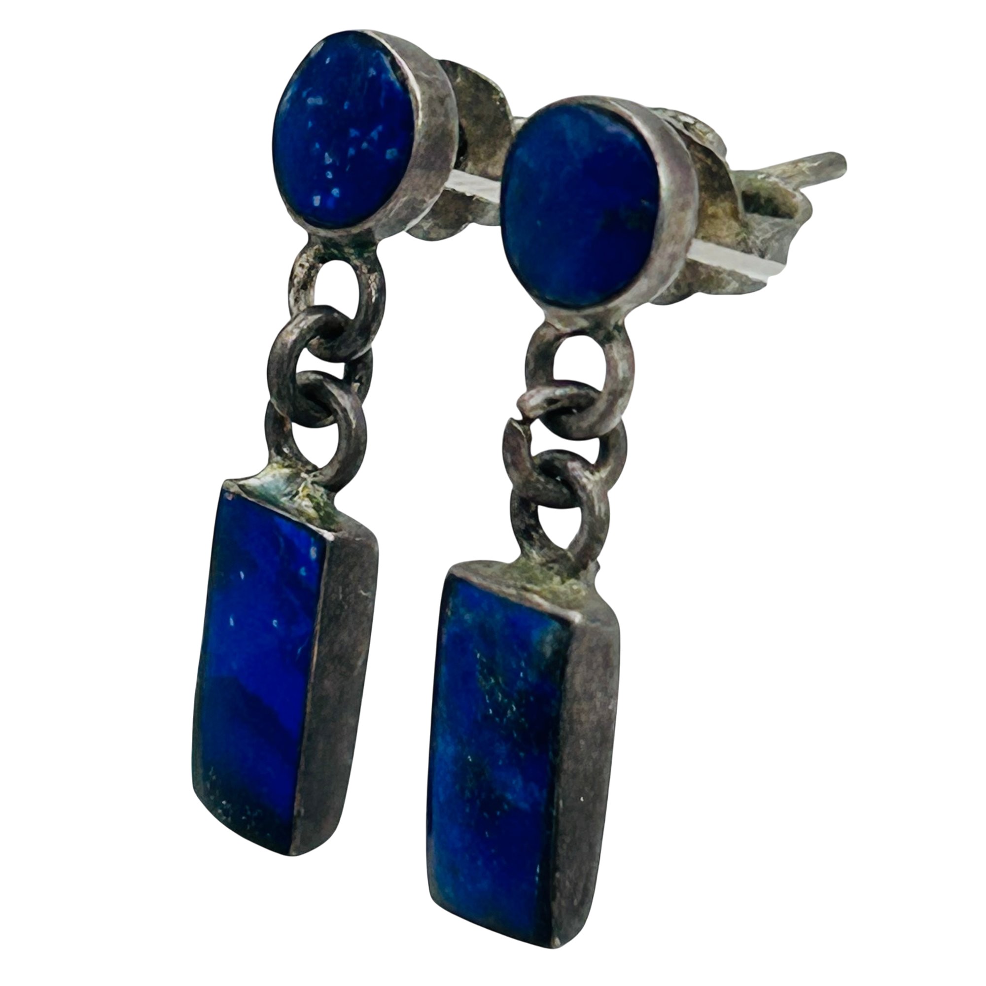 Lapis lazuli 950 silver dangle stud earrings. 1.86g