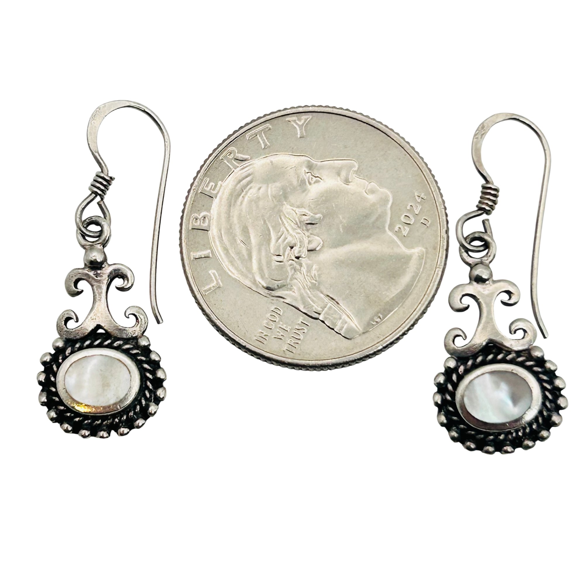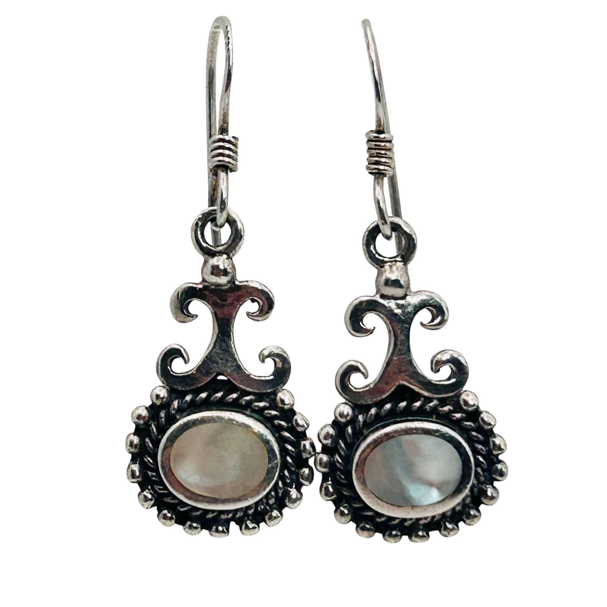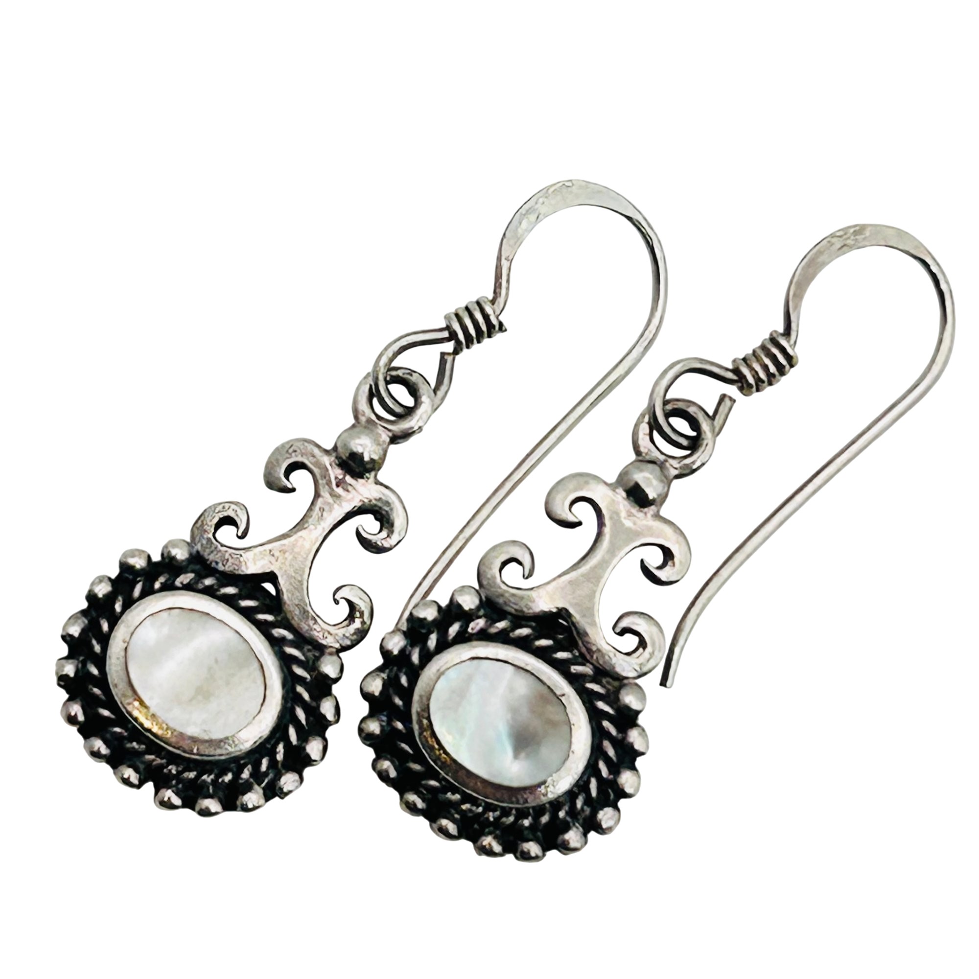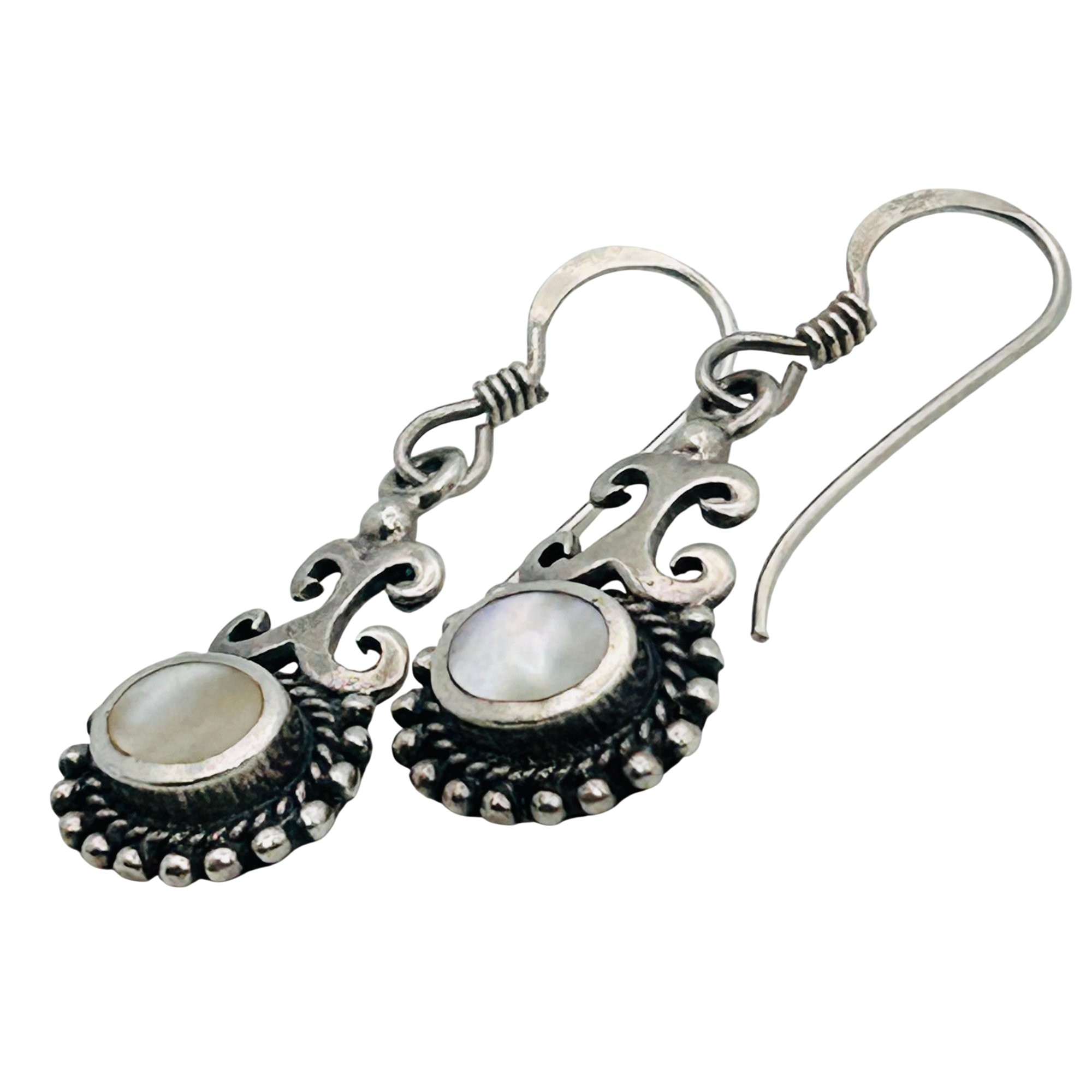 Mother of pearl Sterling dangle hook back earrings. 3.20g