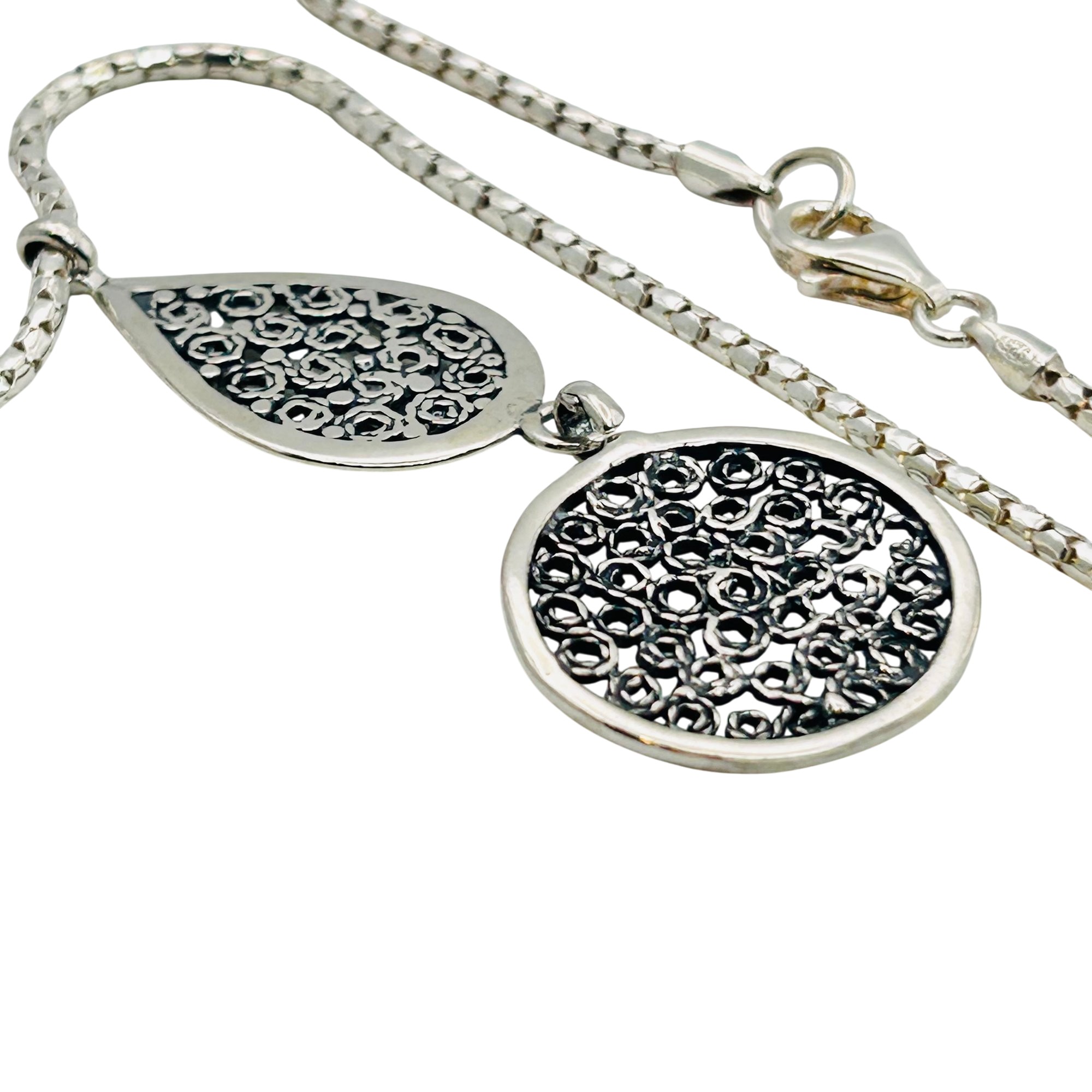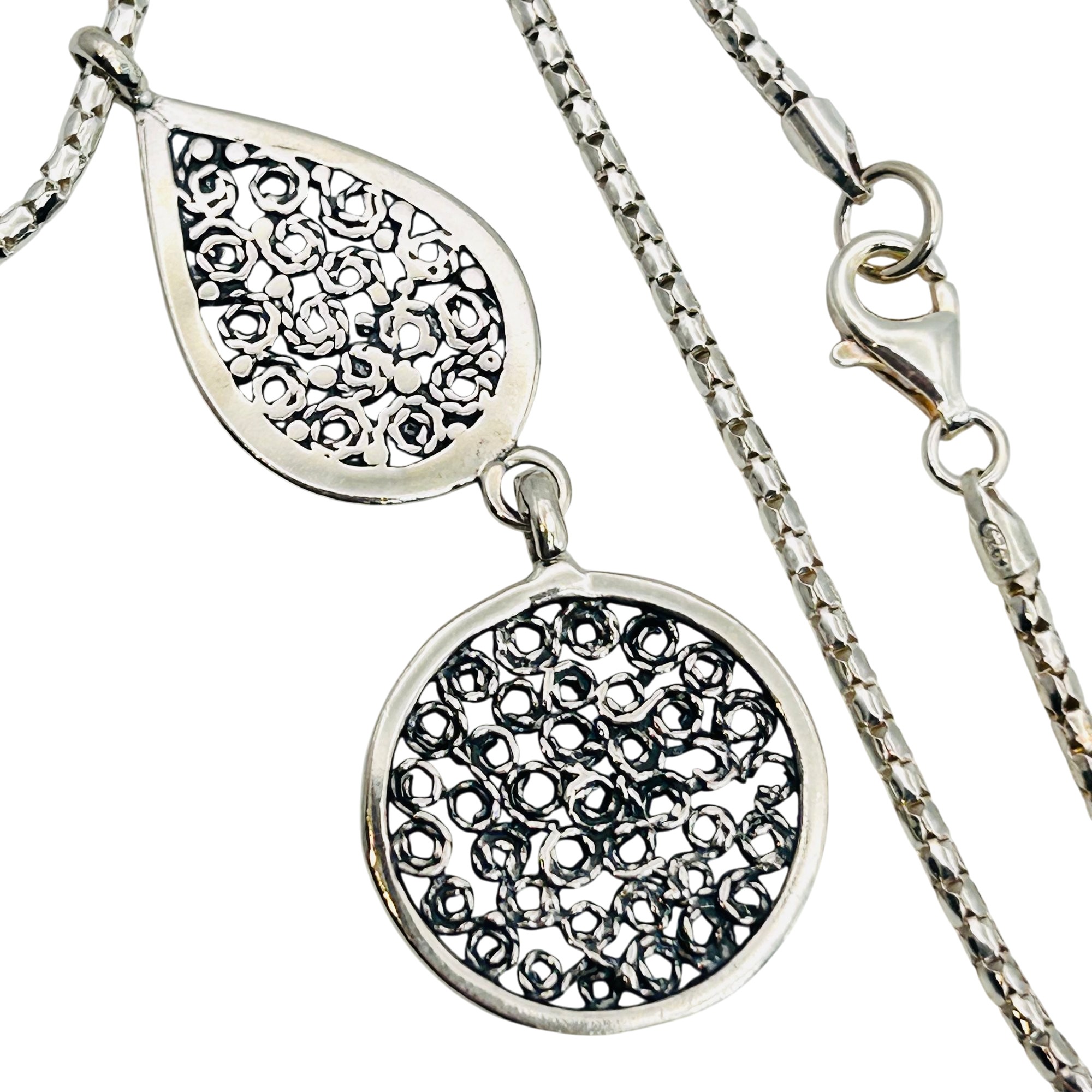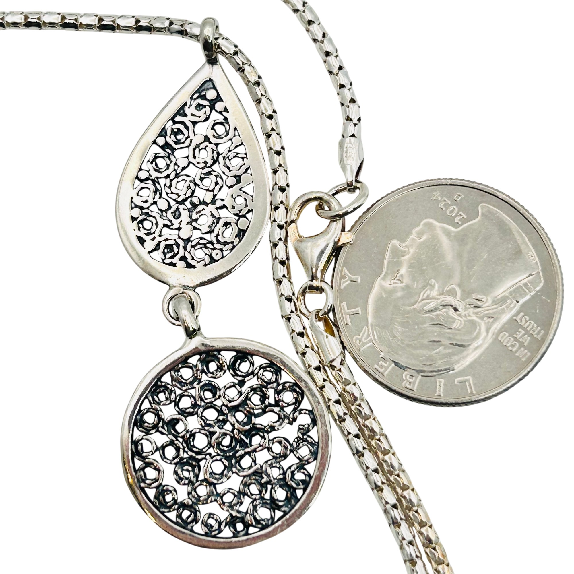 Sterling round chain with filigree pendant necklace. 16in. 9.06g