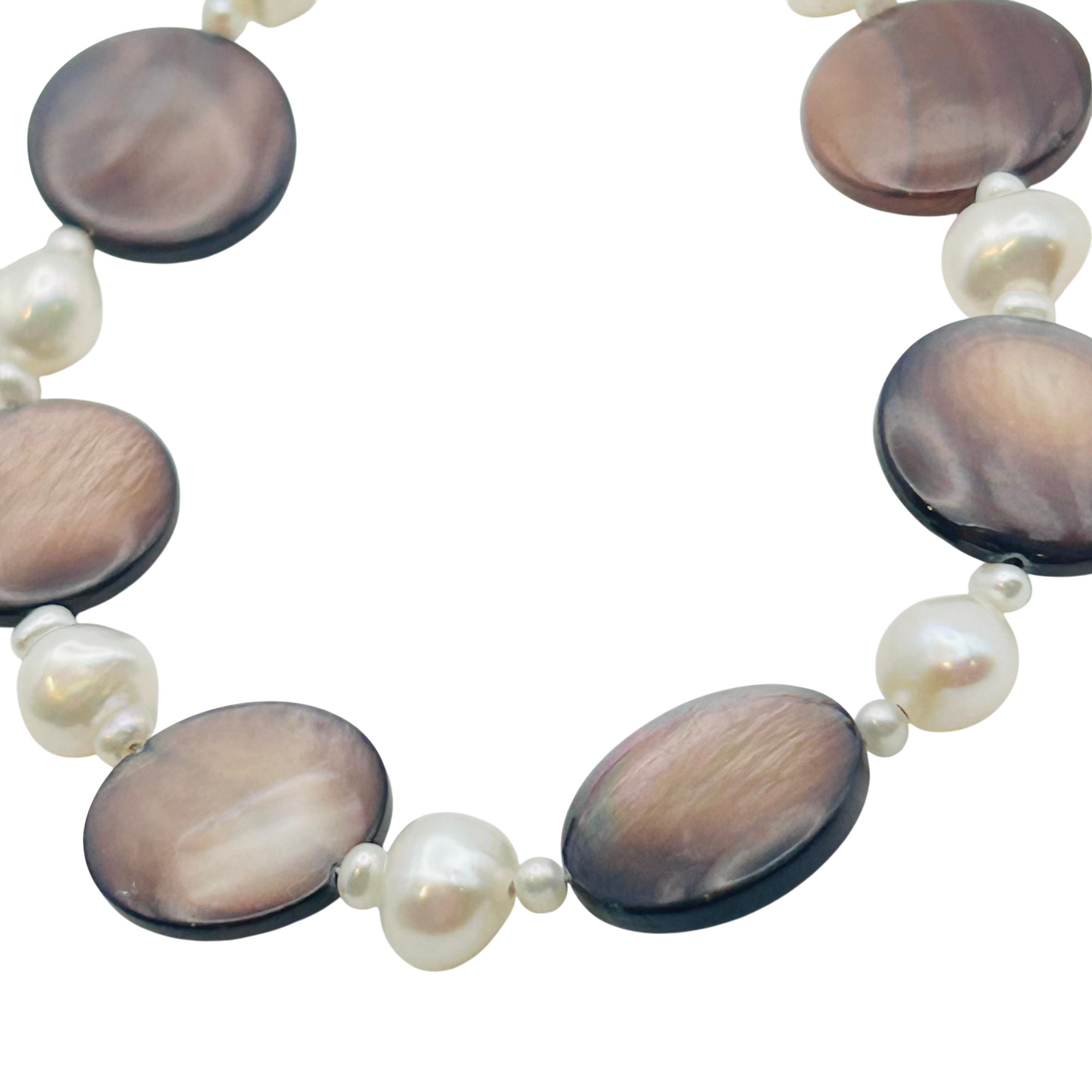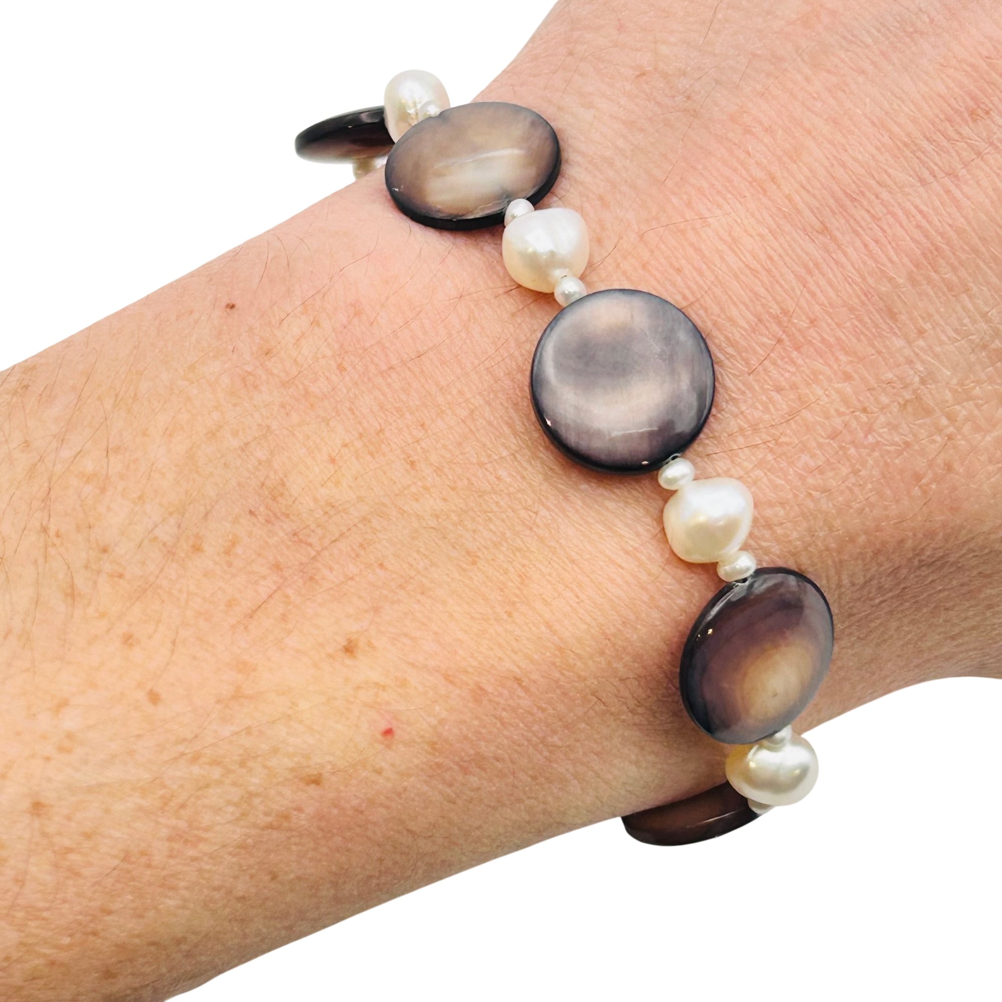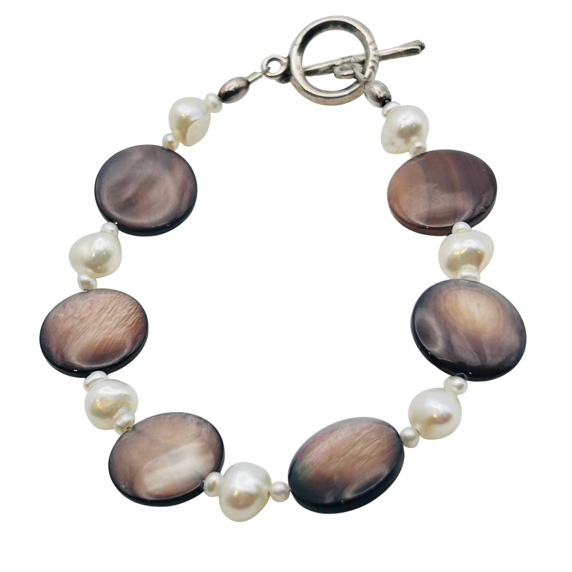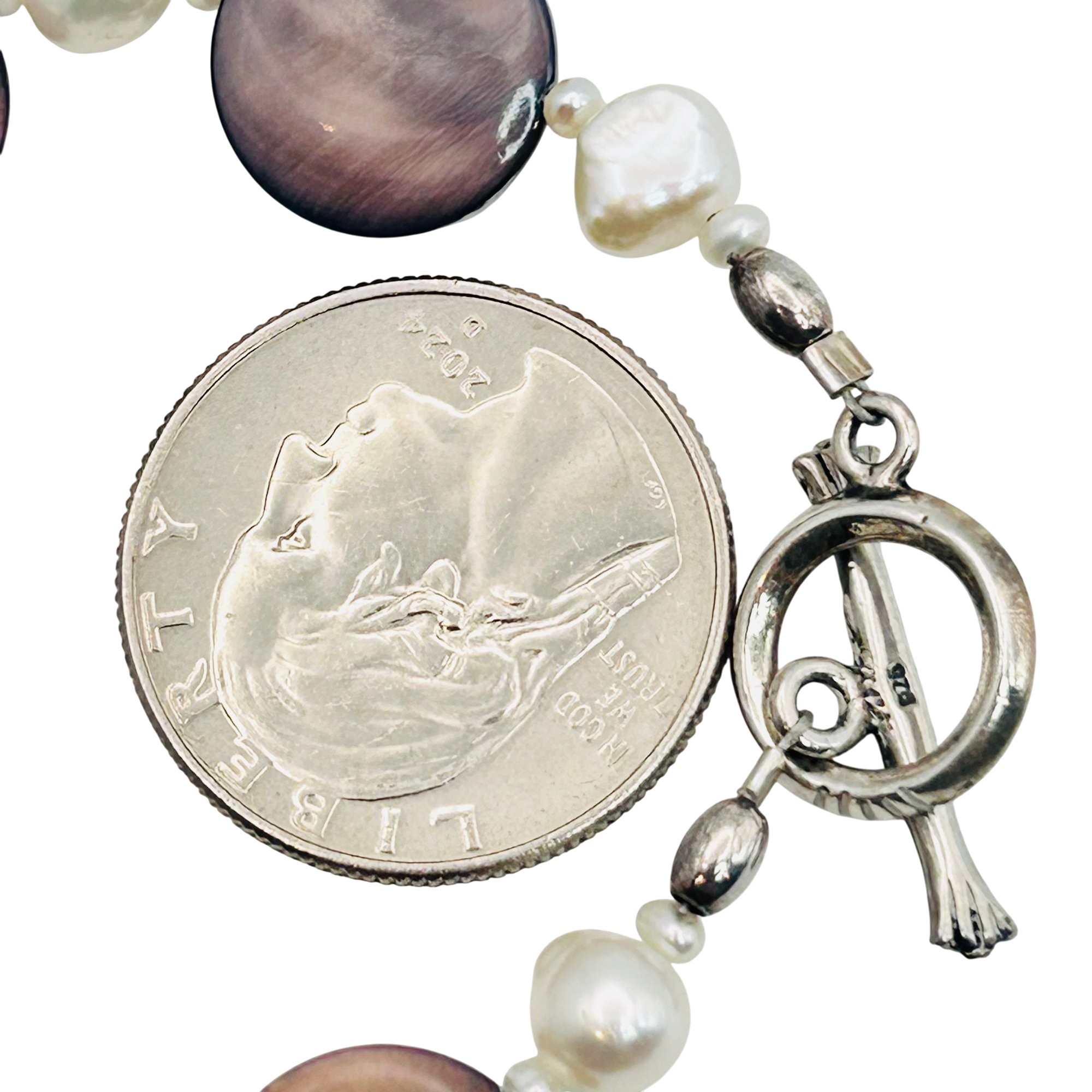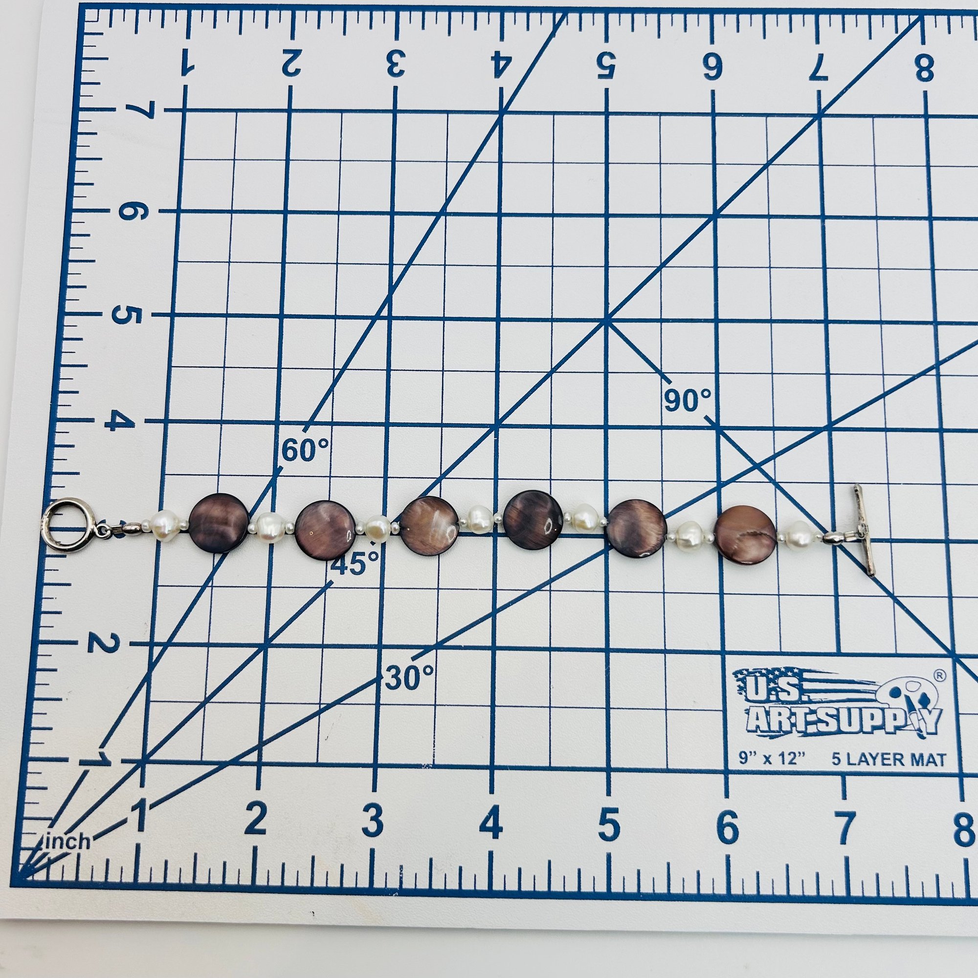 Pearl Sterling toggle clasp bracelet. 7in. 11.22g