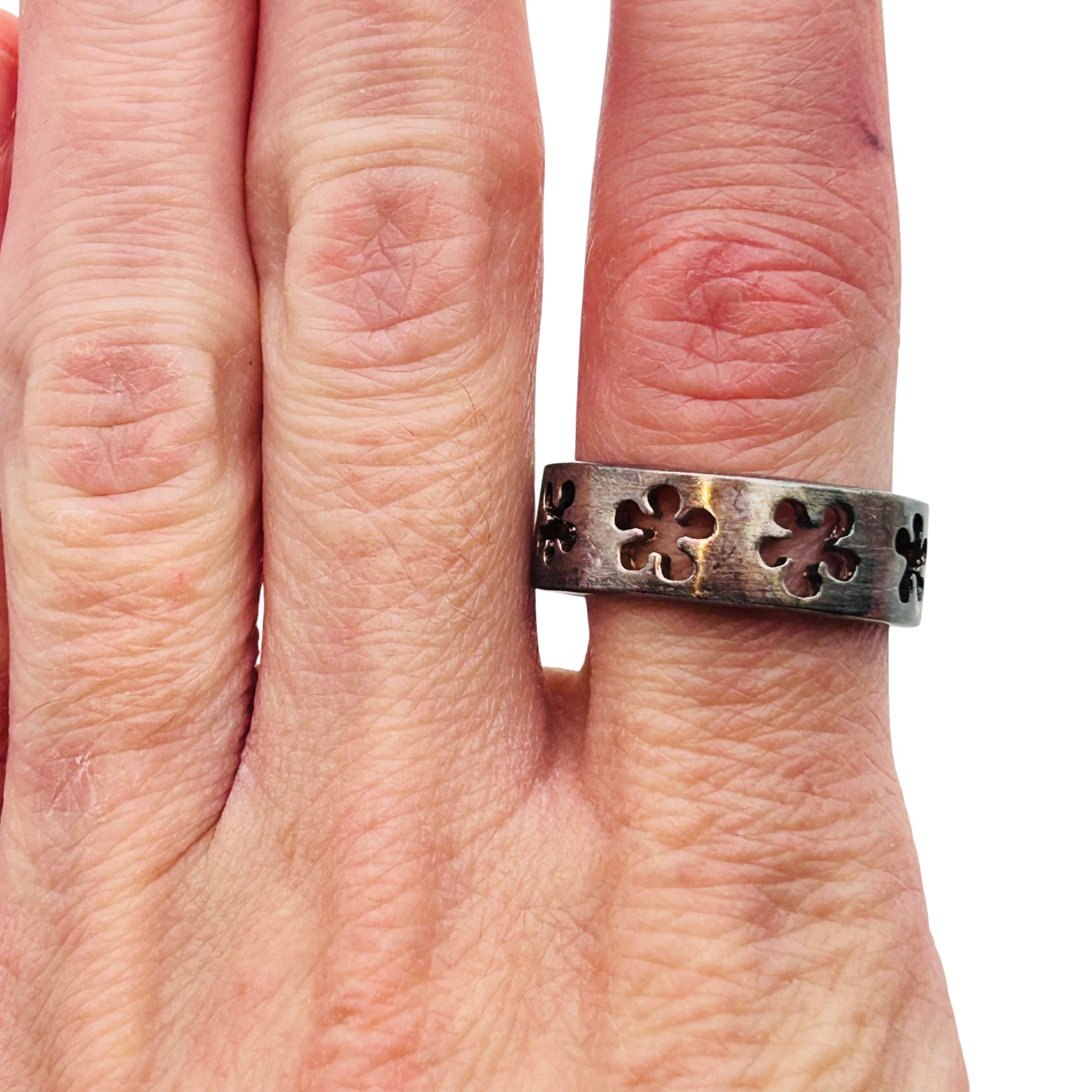 Sterling flower cut out ring. Size 9. 6.66 g.
