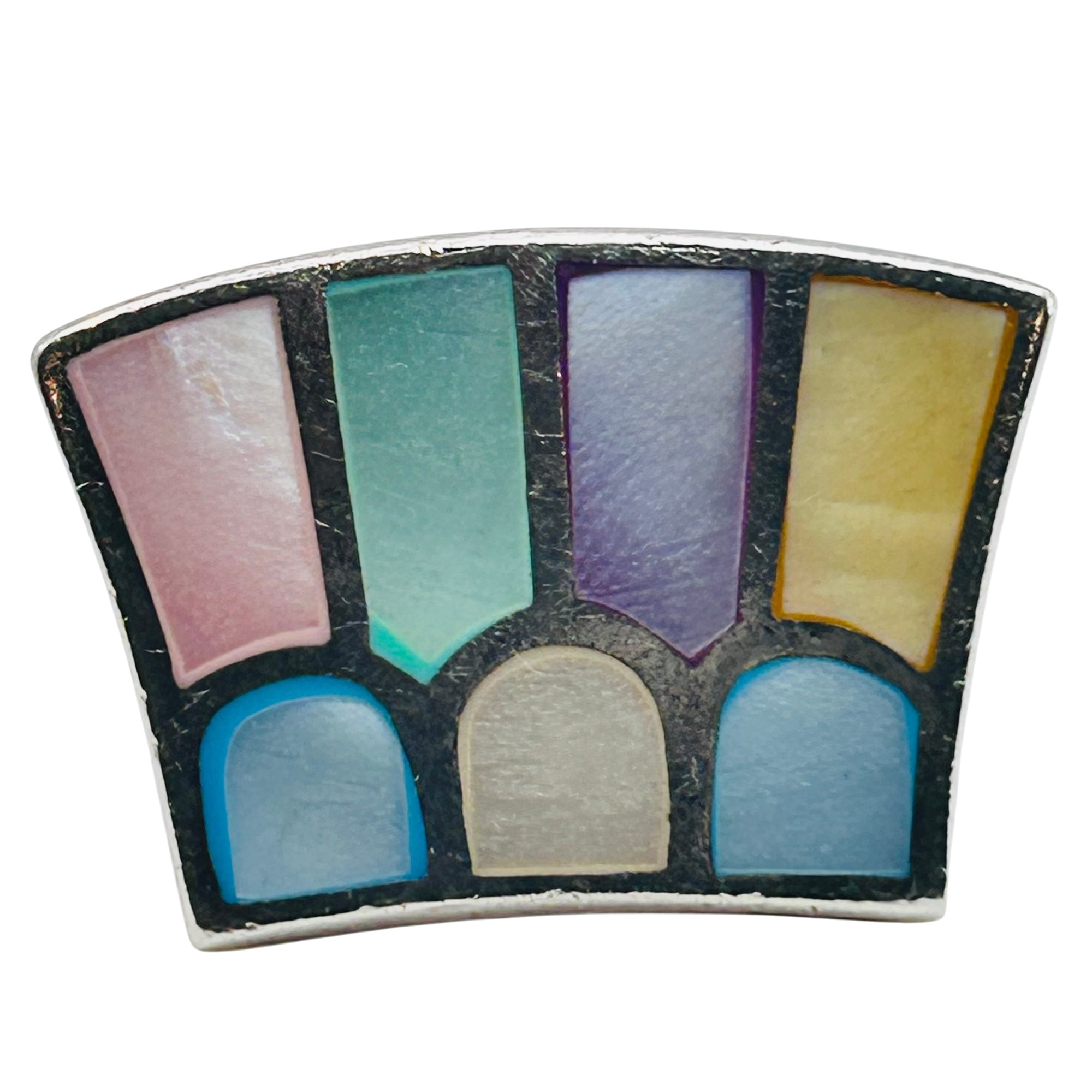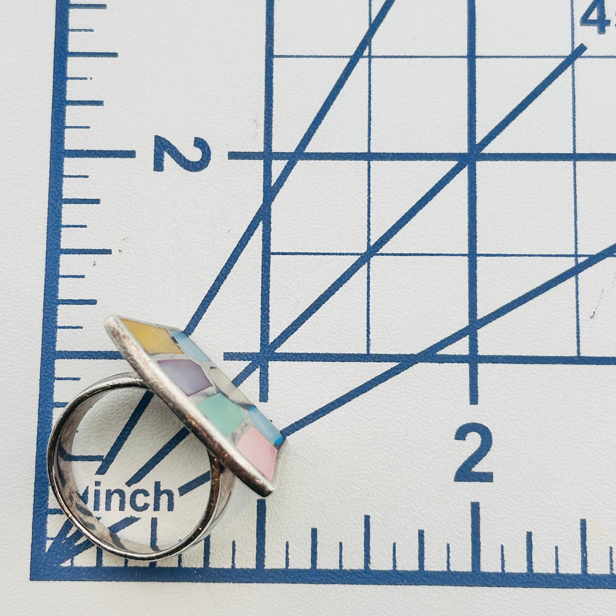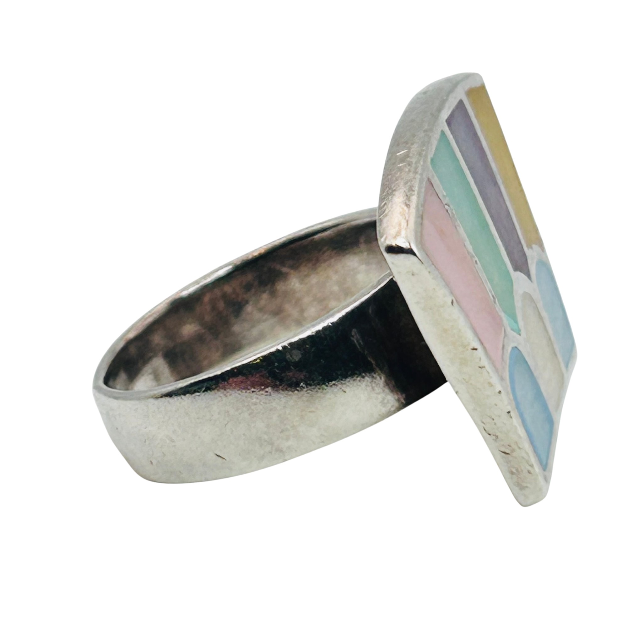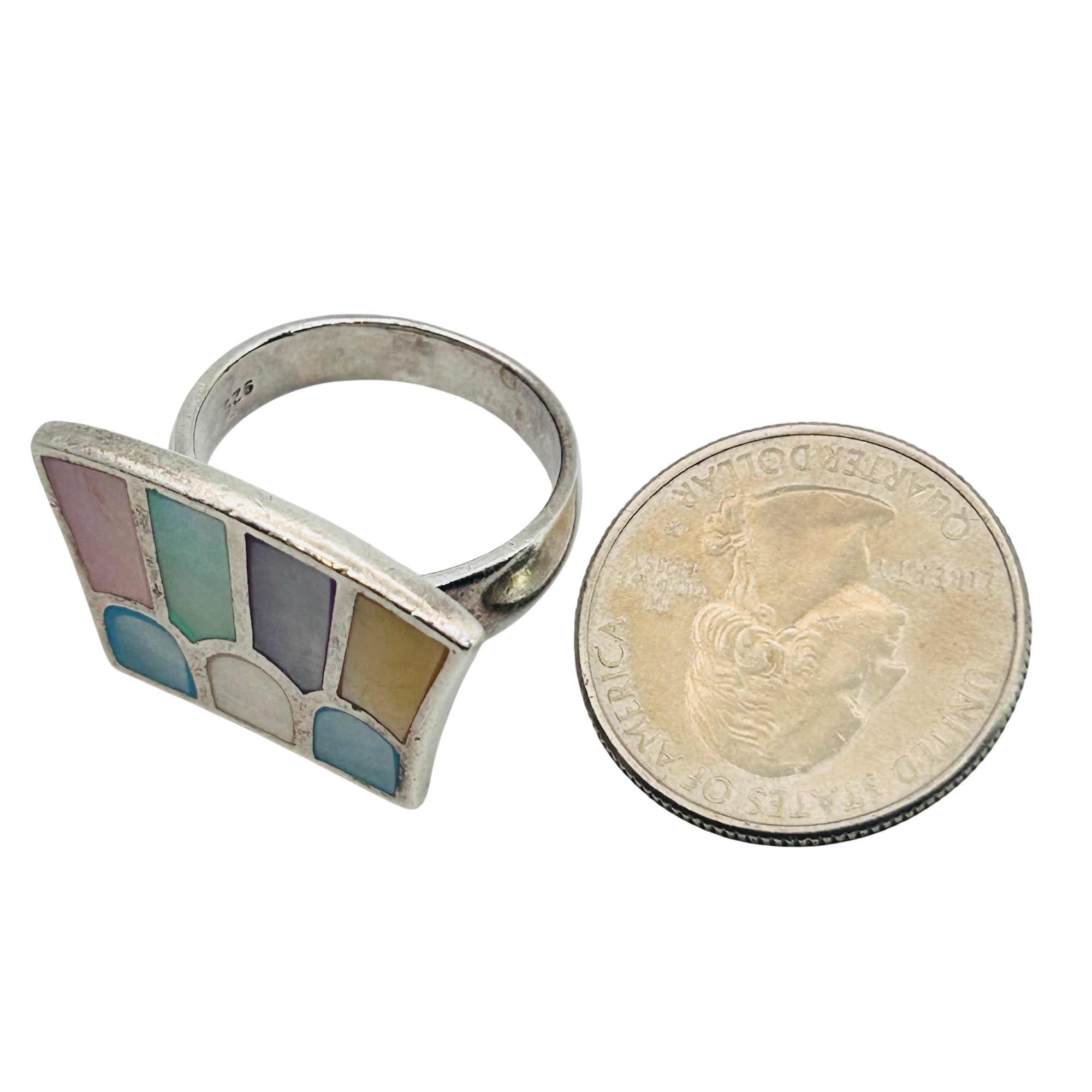Sterling Multicolor mother of pearl flat face ring Size 8.5 10.5g