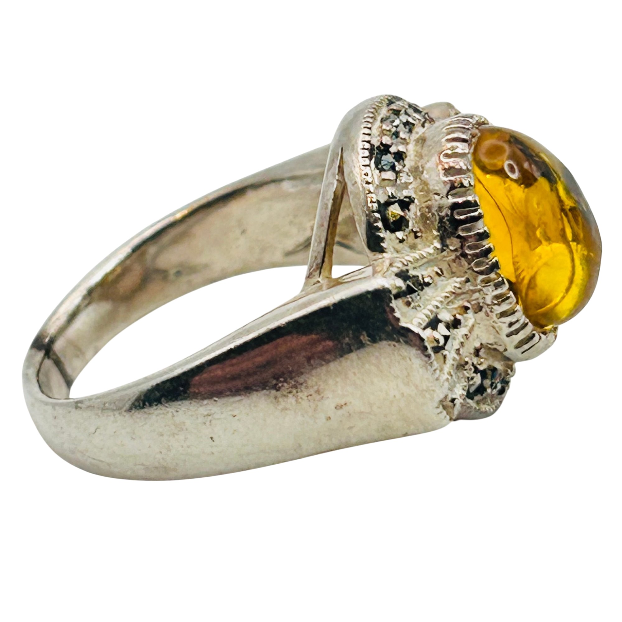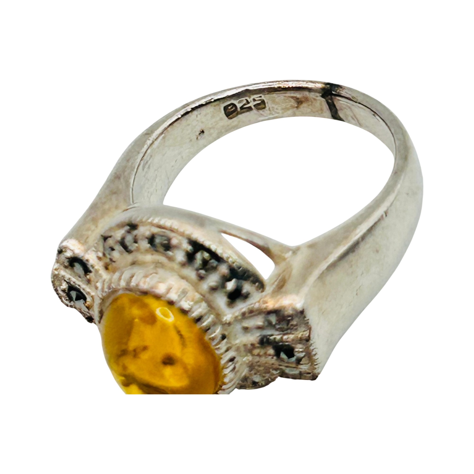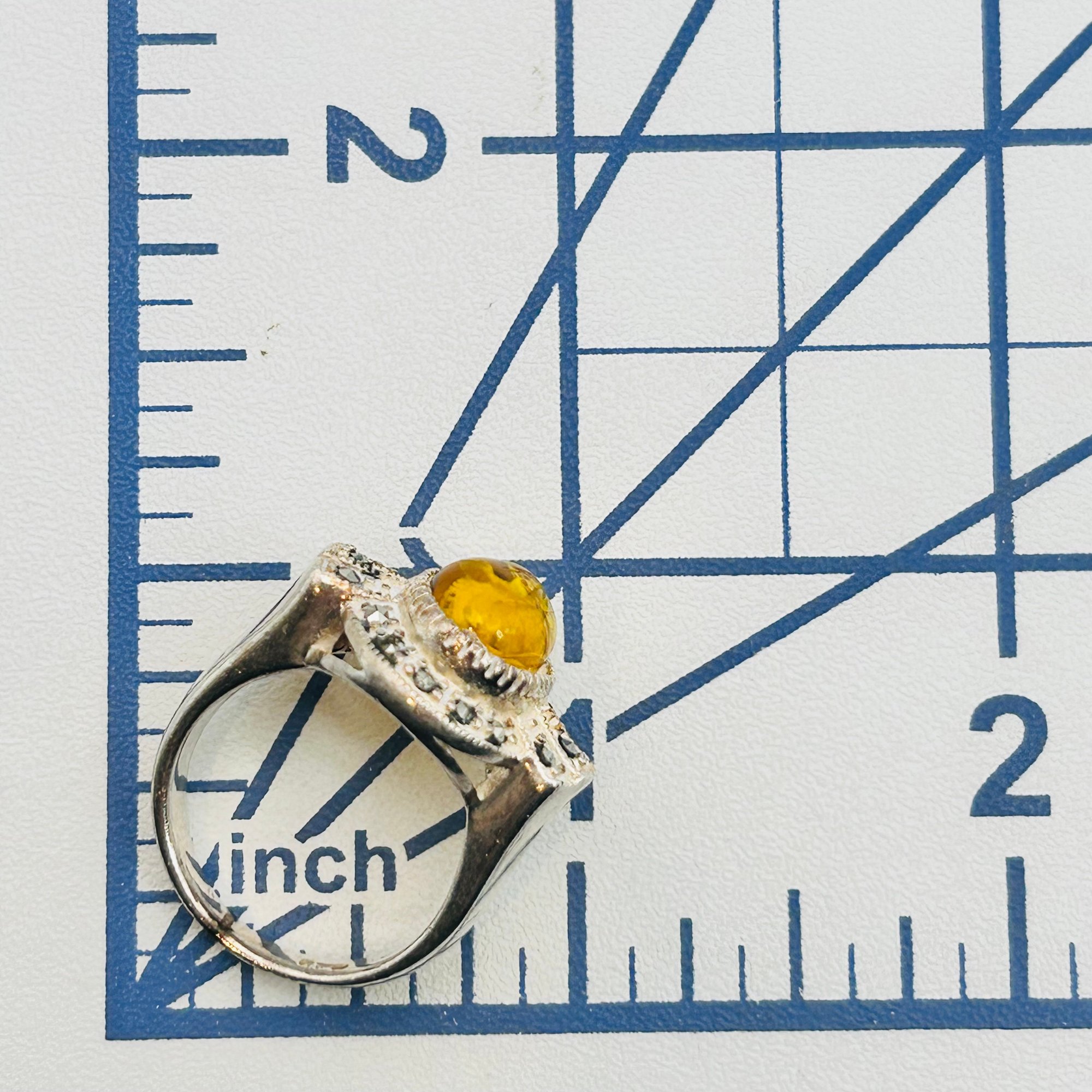 Sterling Amber And Marcasite Statement Ring Size 6.5
