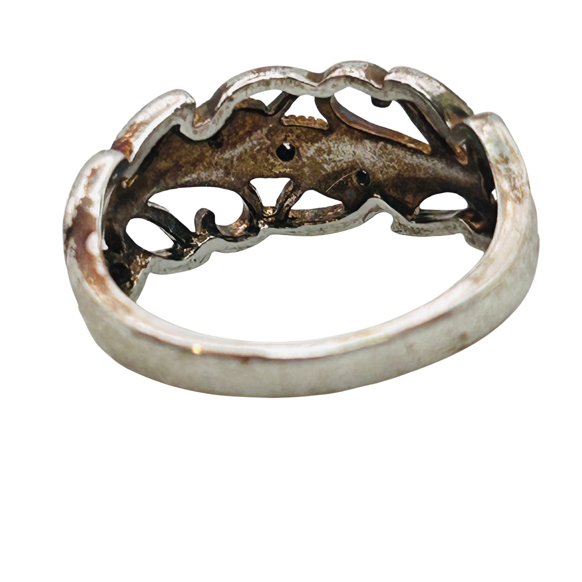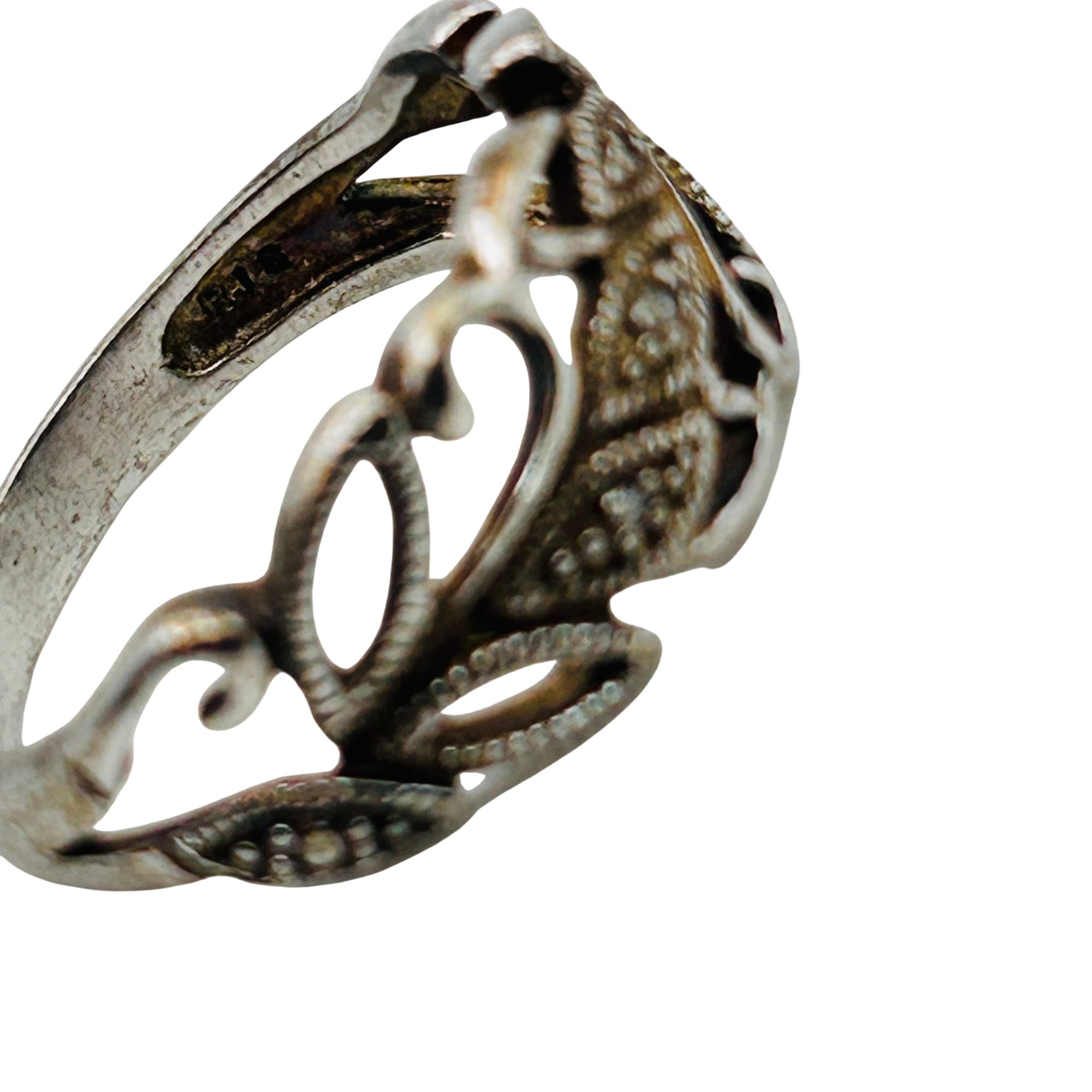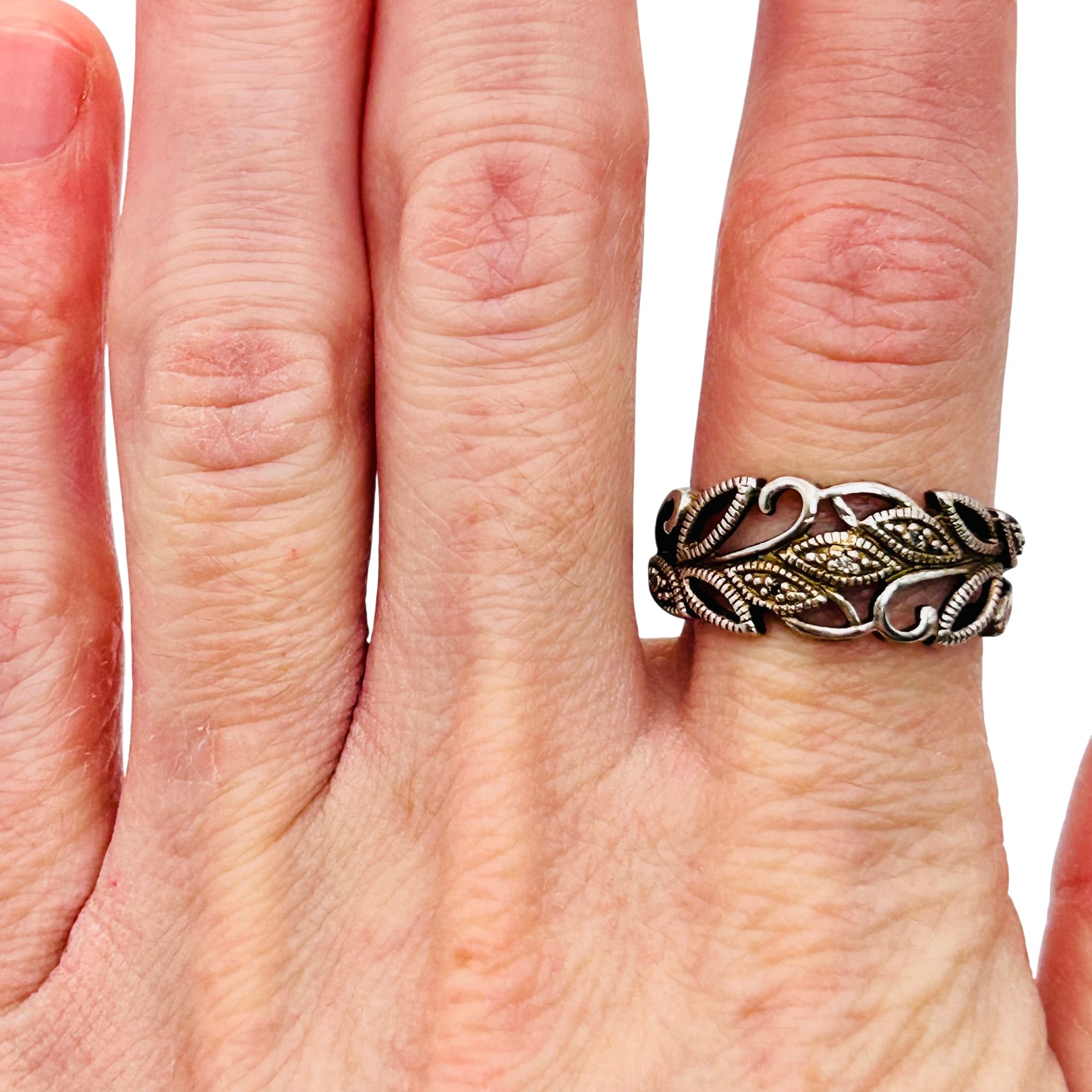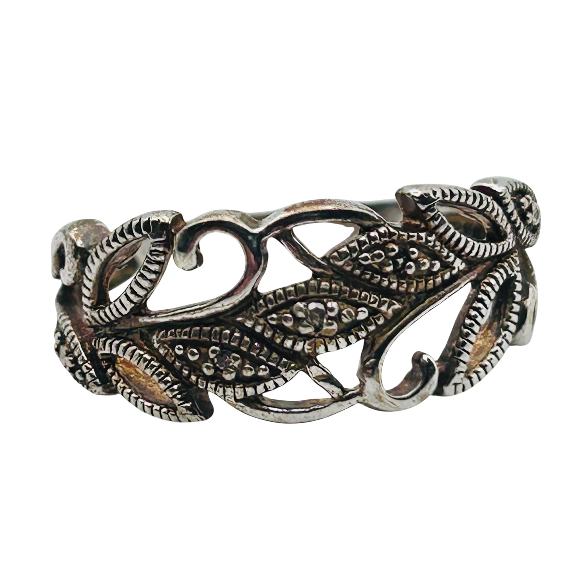 RJ Diamond accent Sterling leaf detail ring. Size 8. 3.49g