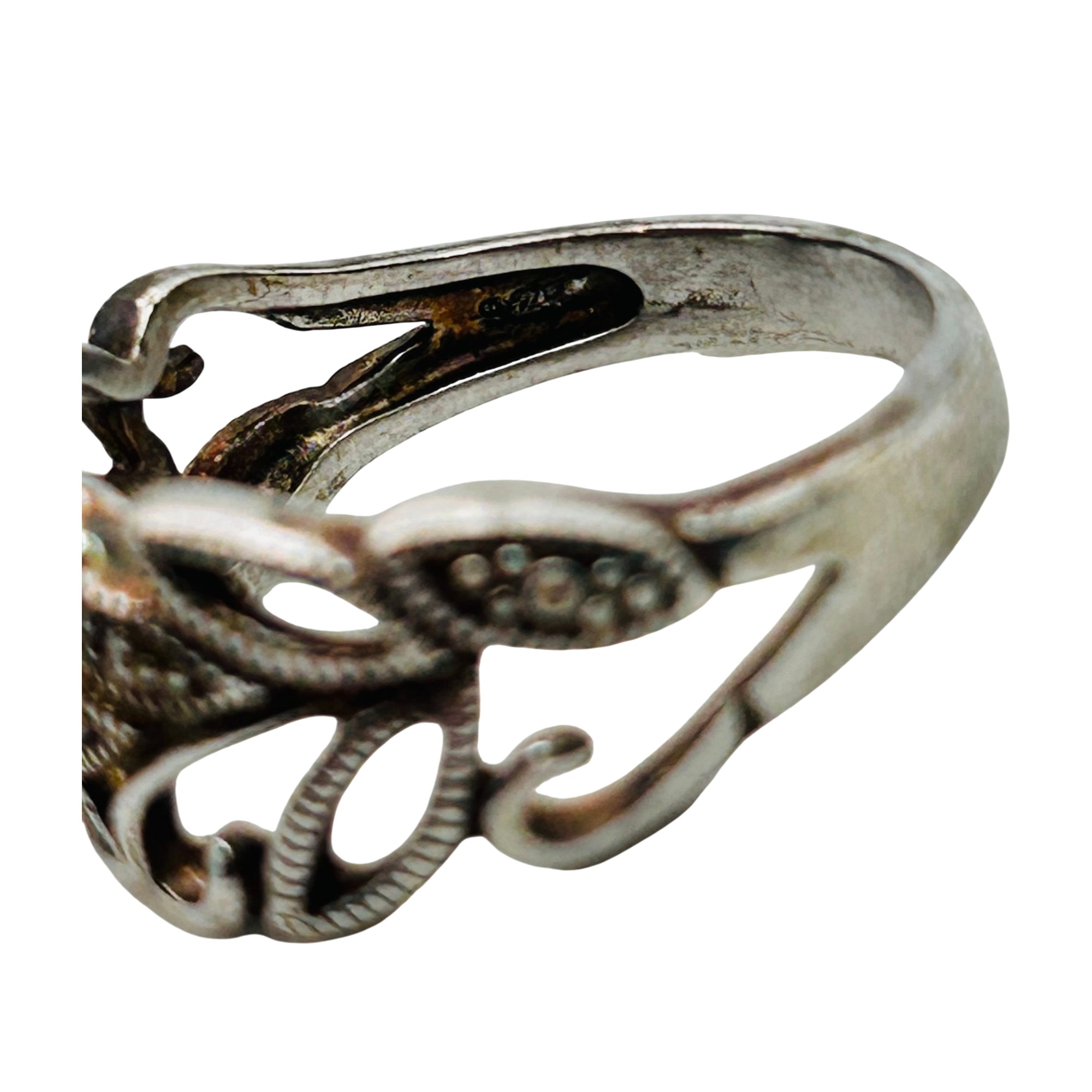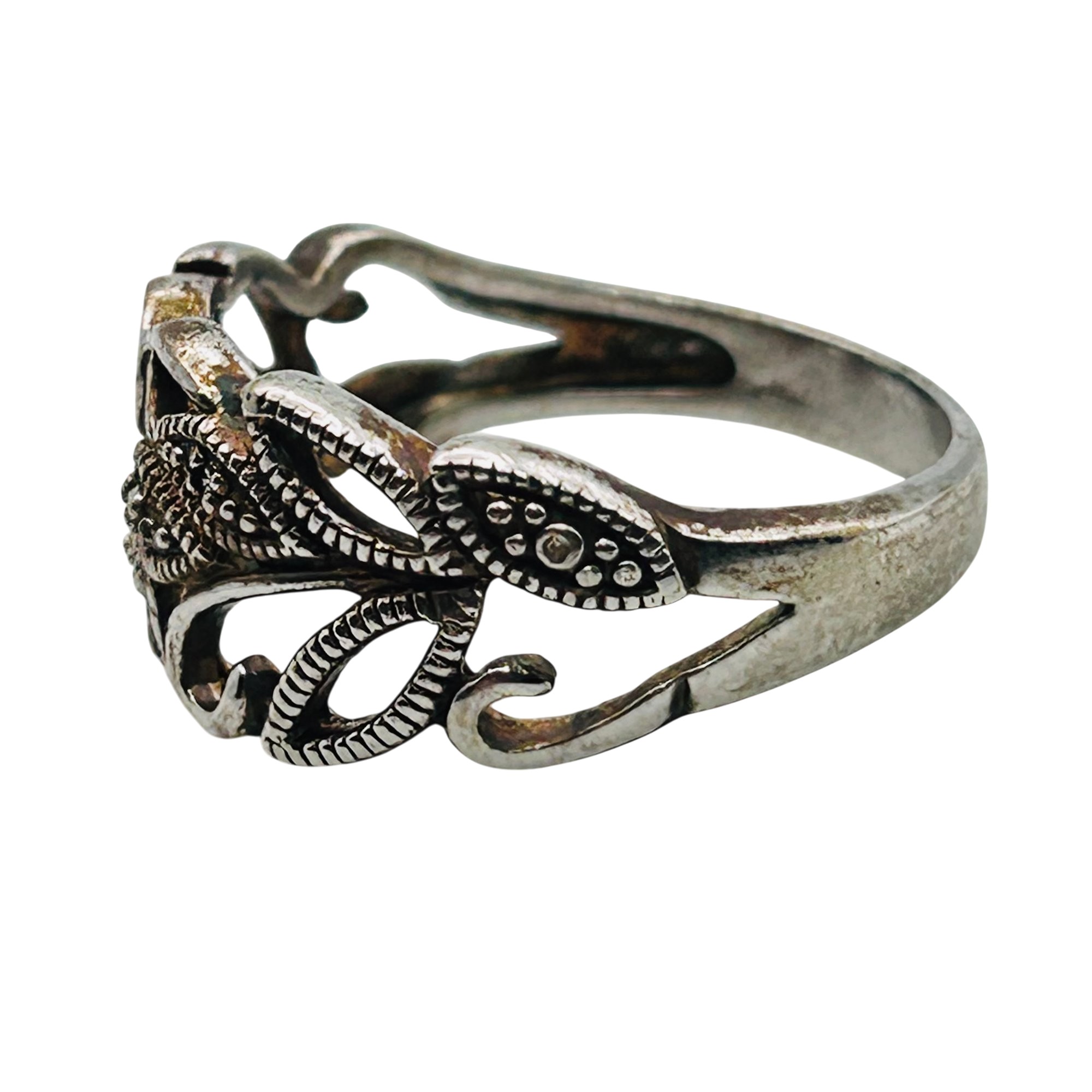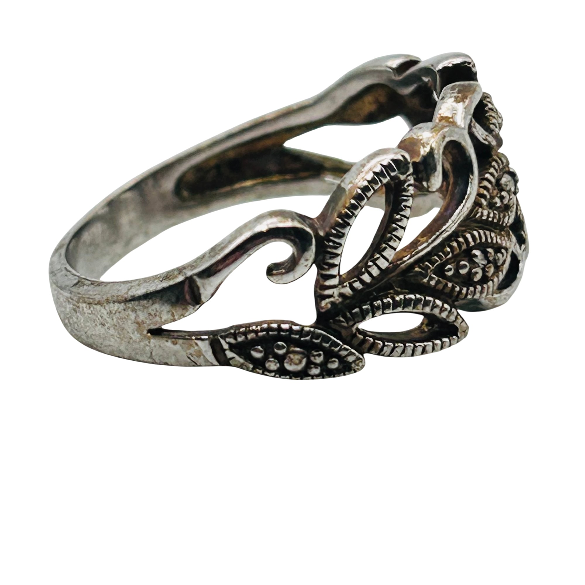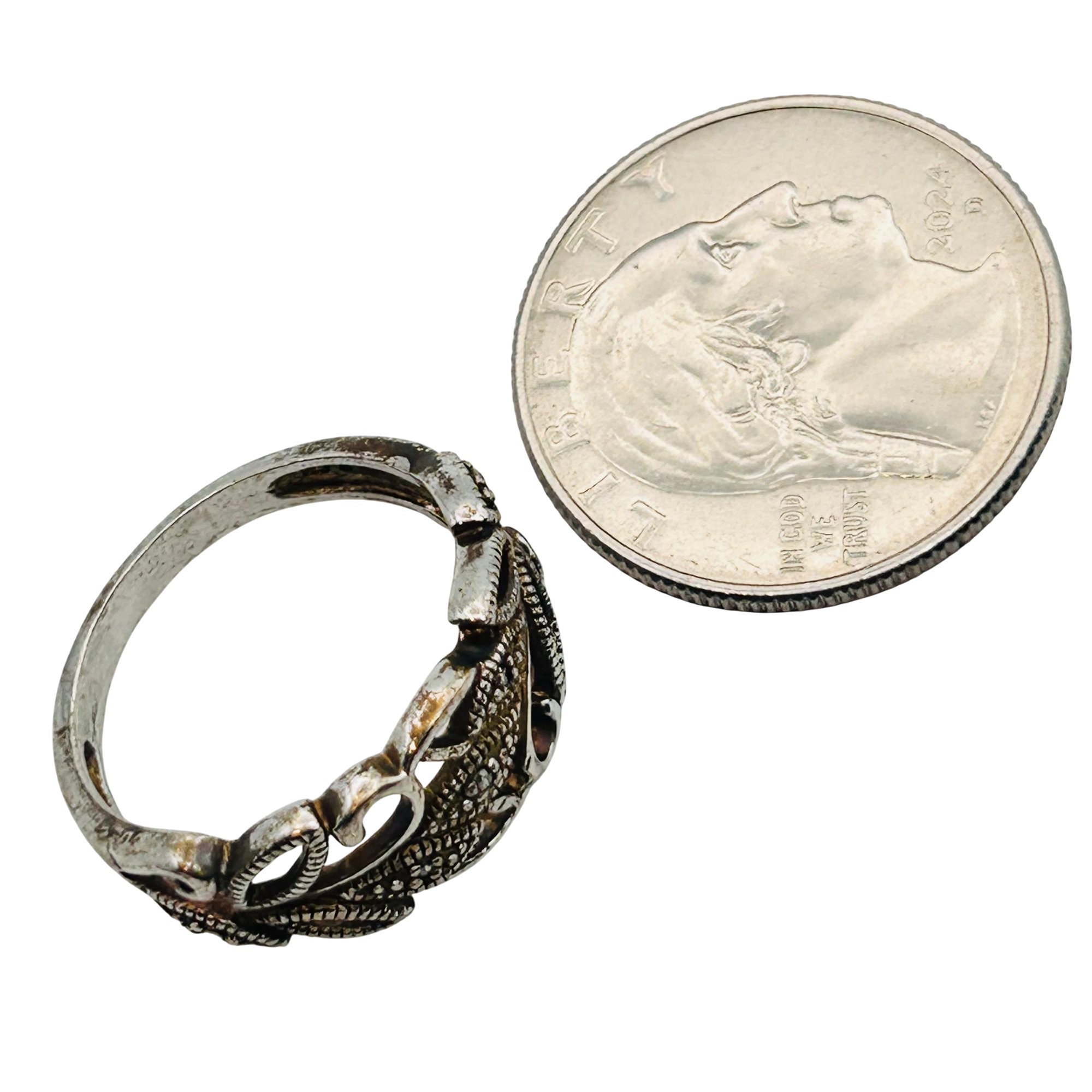 RJ Diamond accent Sterling leaf detail ring. Size 8. 3.49g