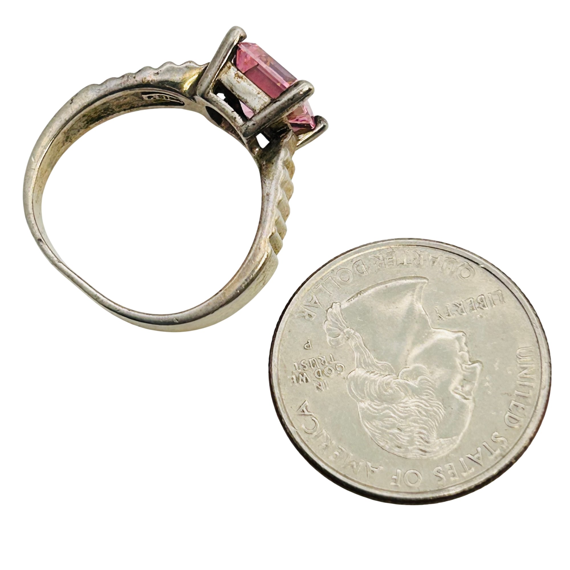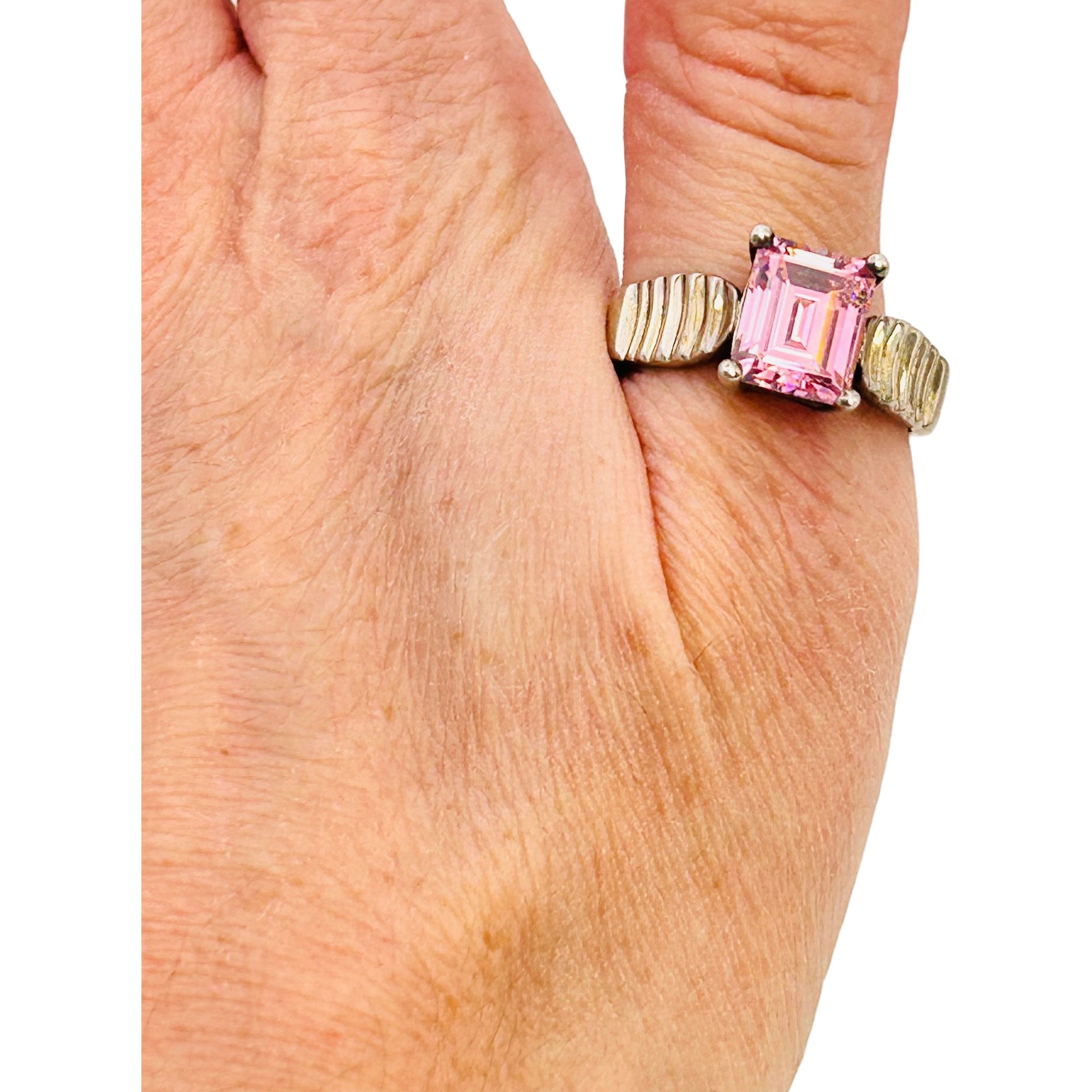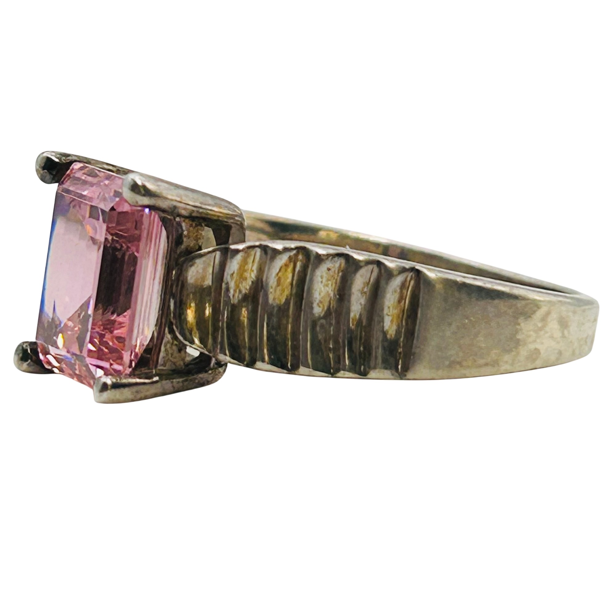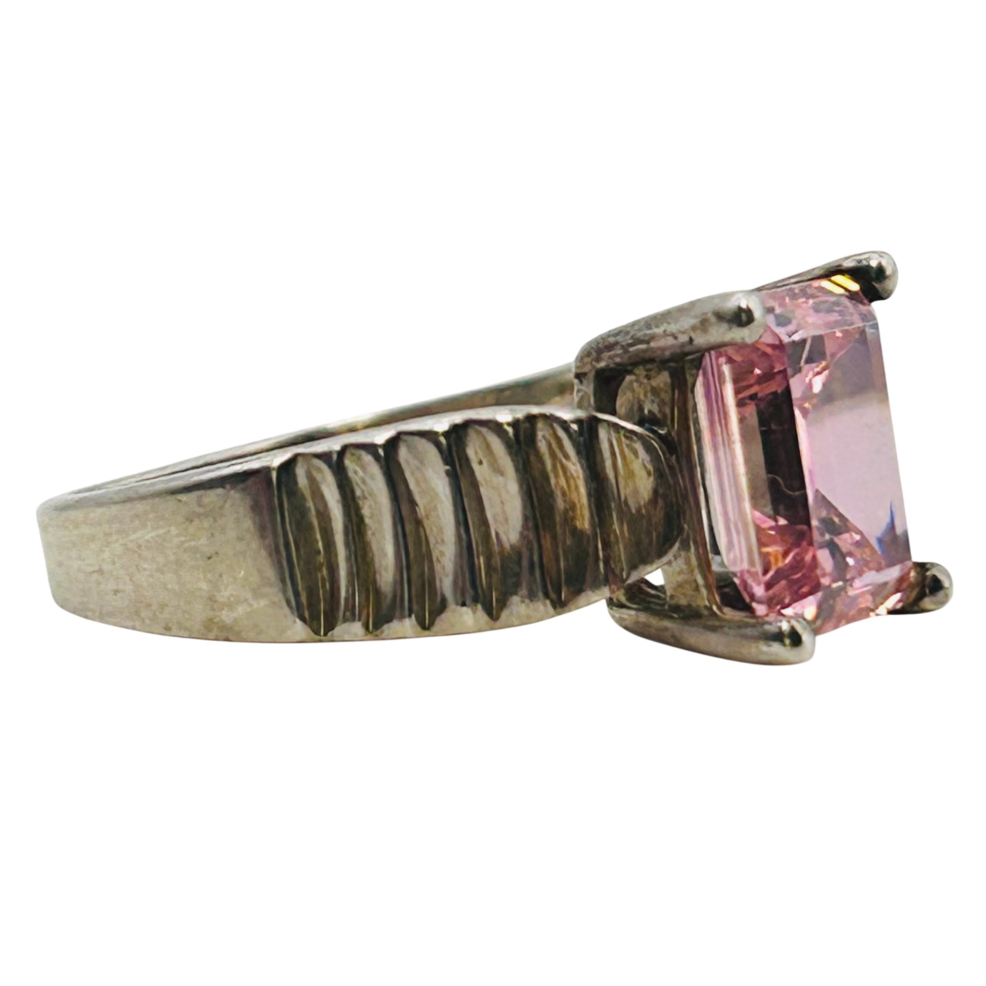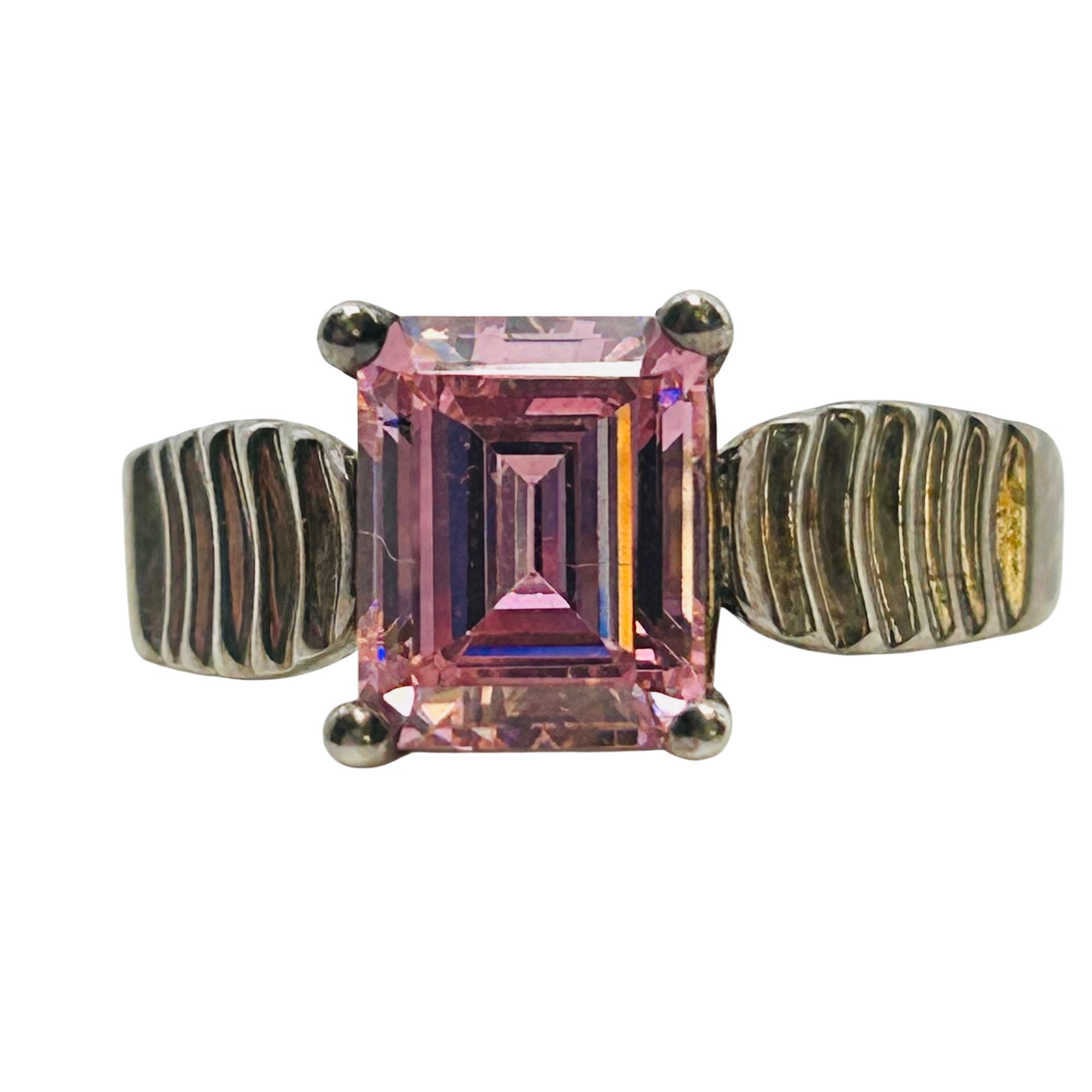 DQ cubic Zirconia sterling ribbed band. Size 9.5. 6.27g