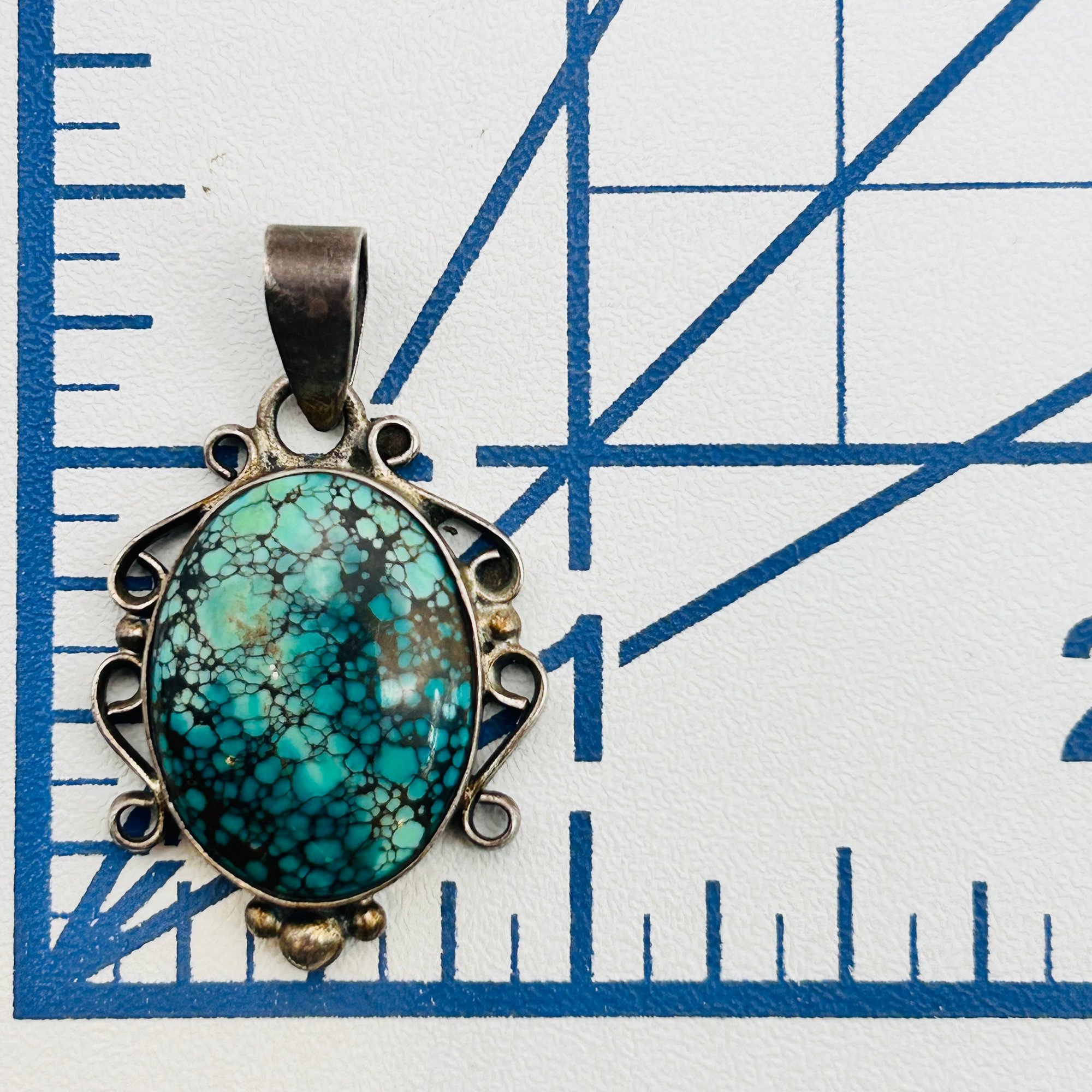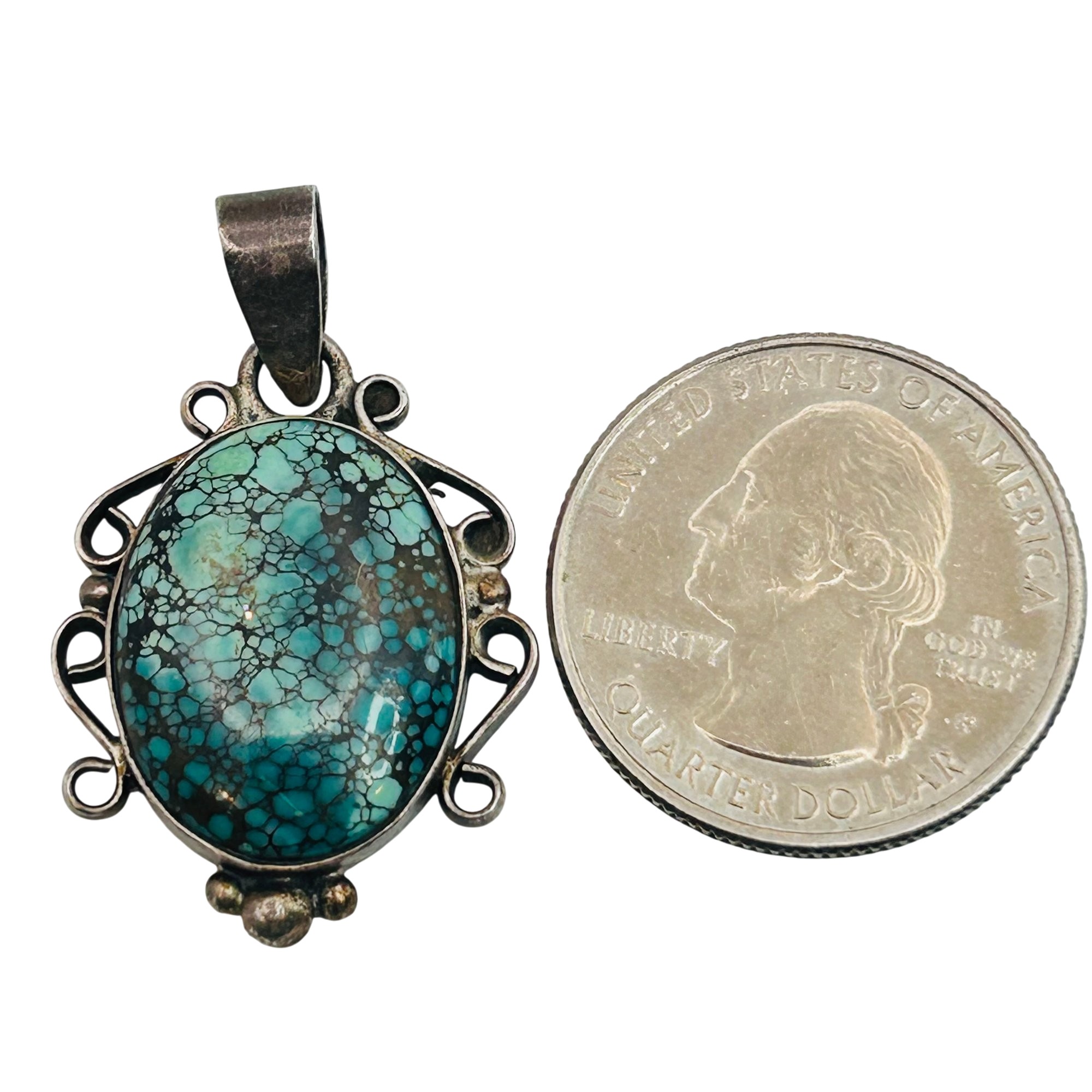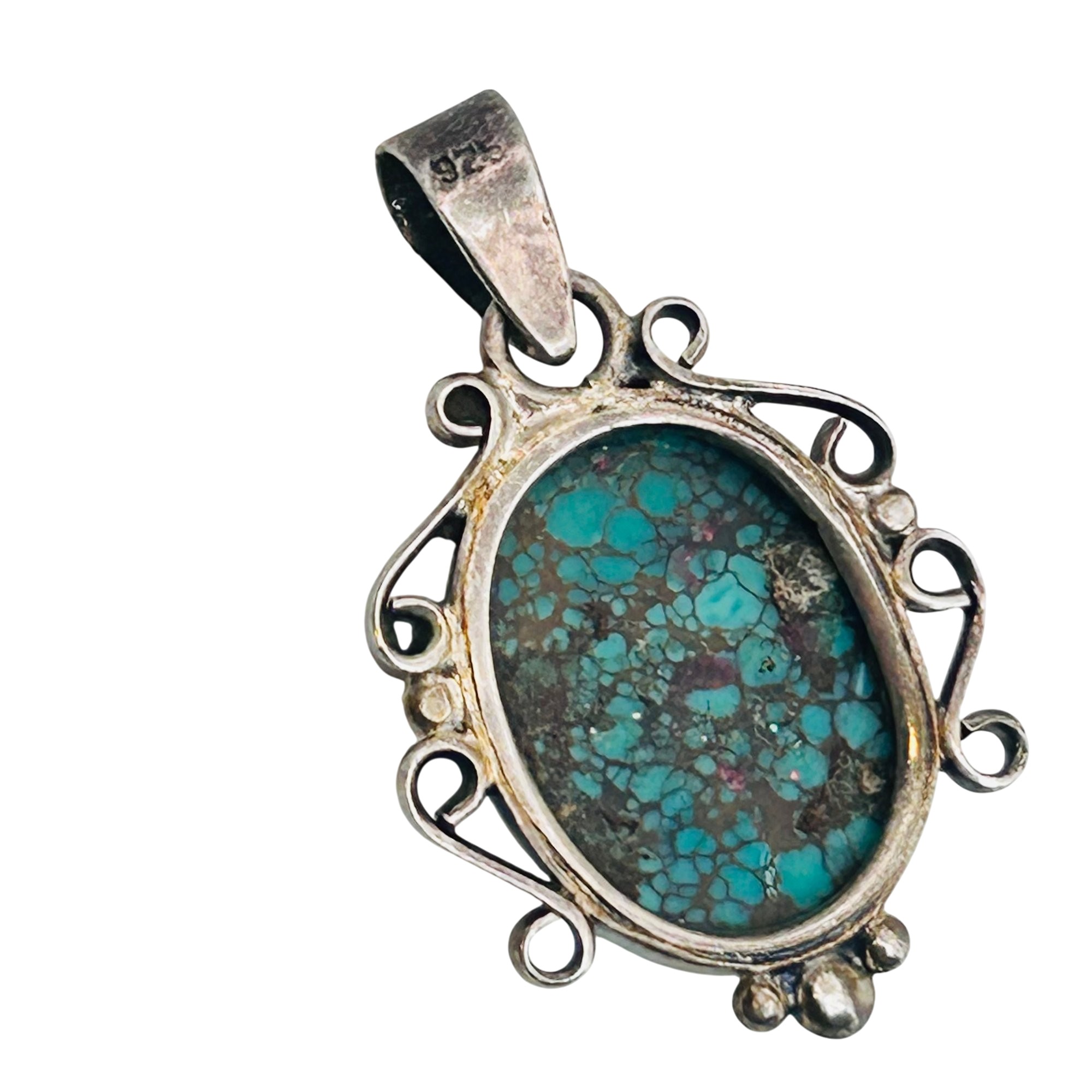 Sterling turquoise oval decorative pendant 4.8g