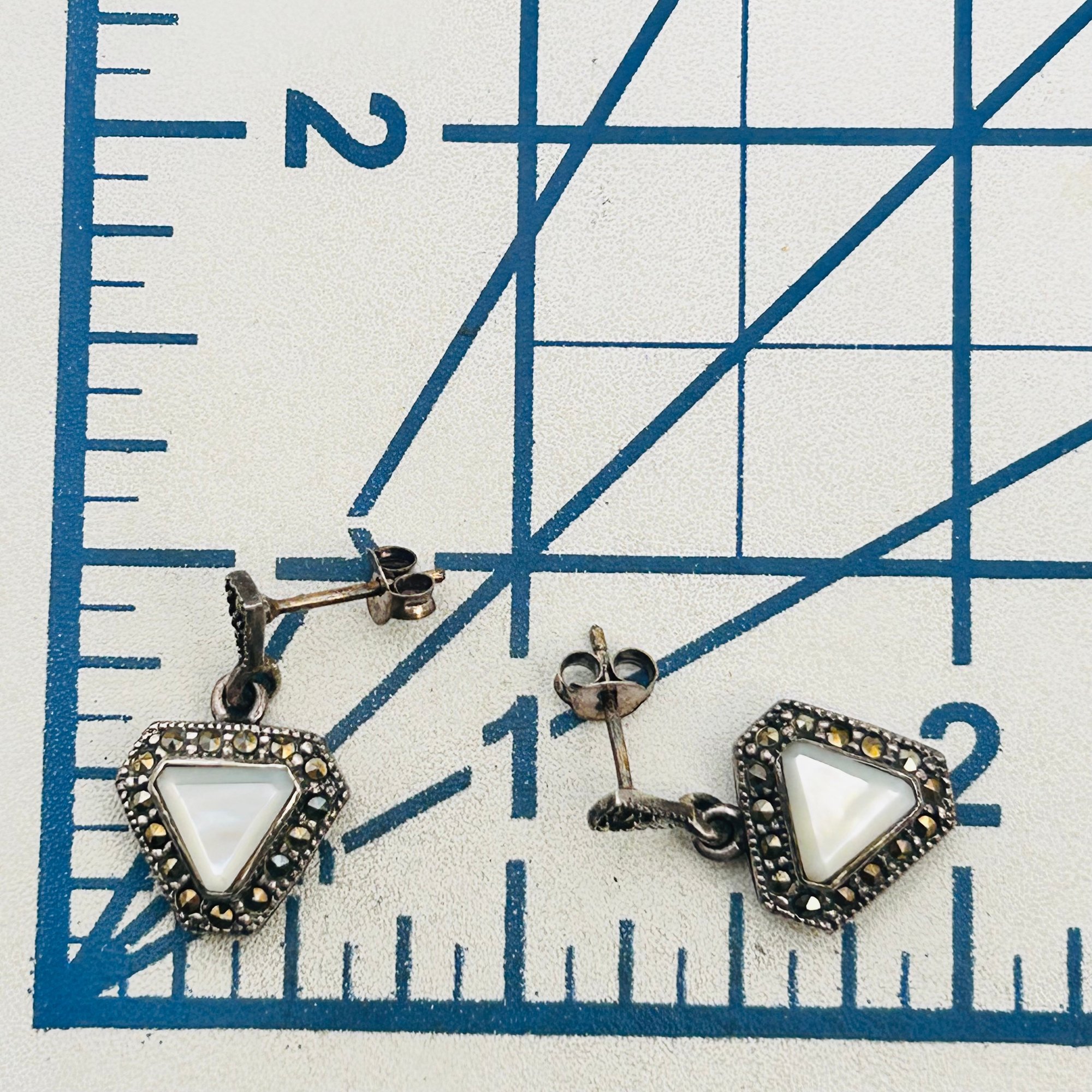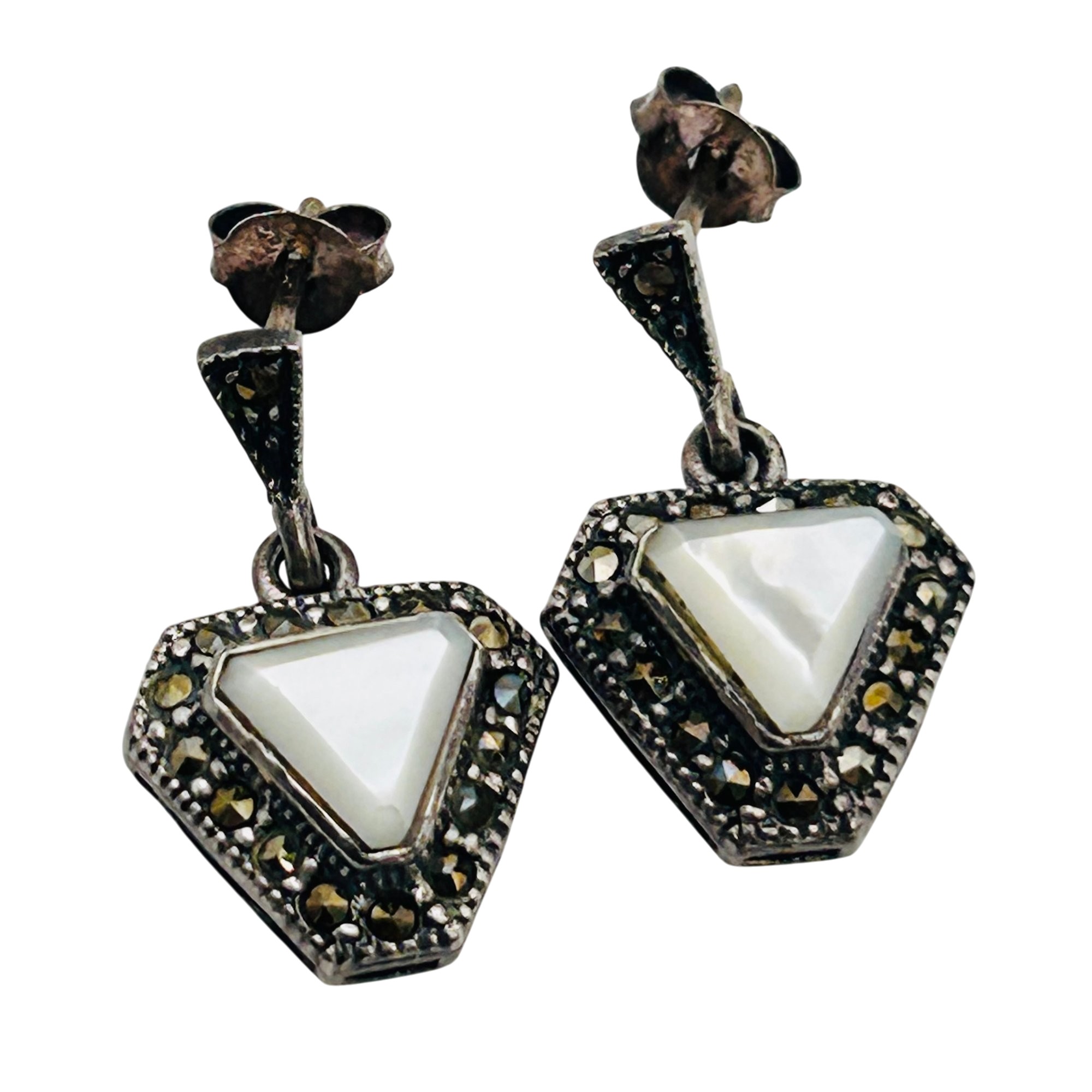 Sterling mother of pearl and marcasite dangle studs. 3.80g