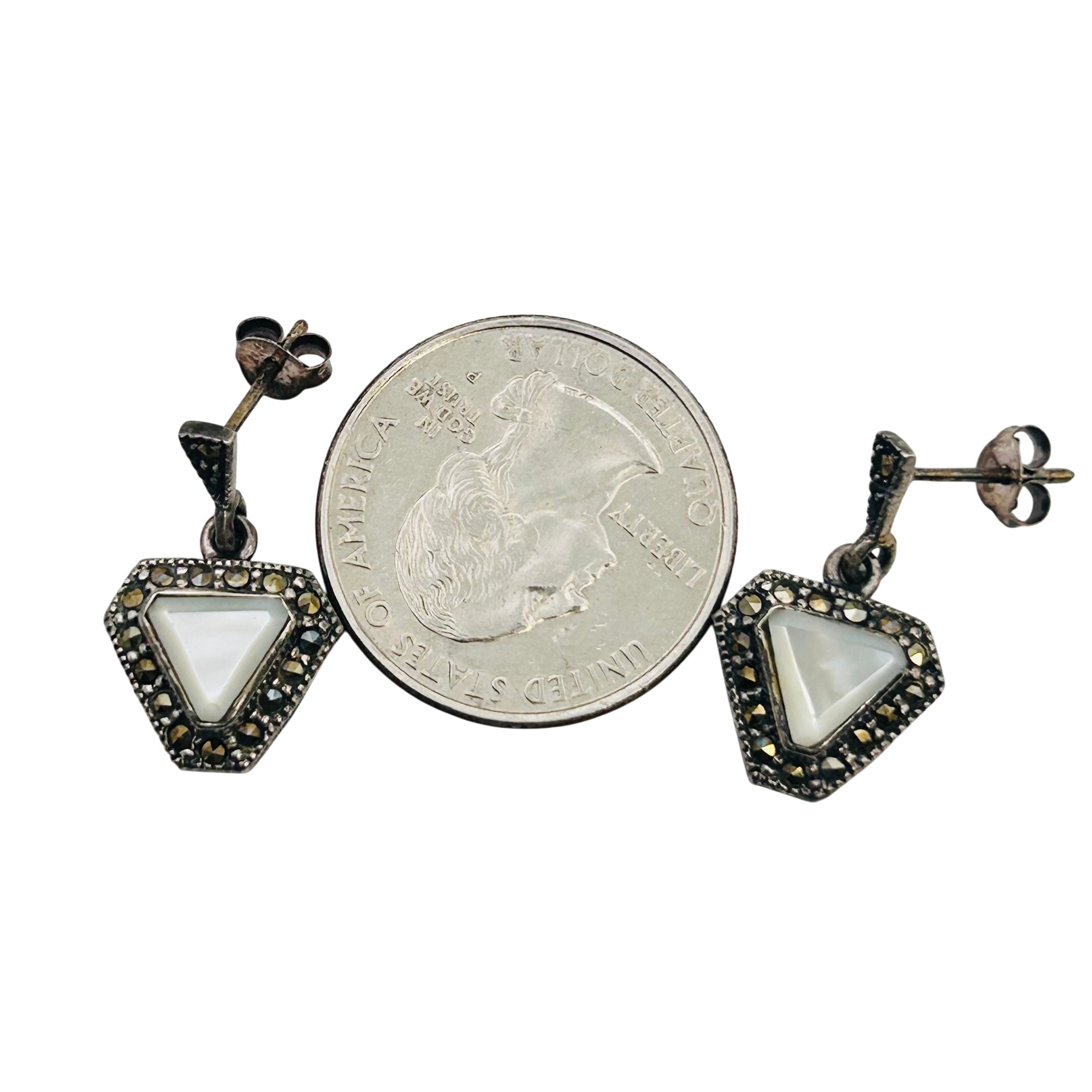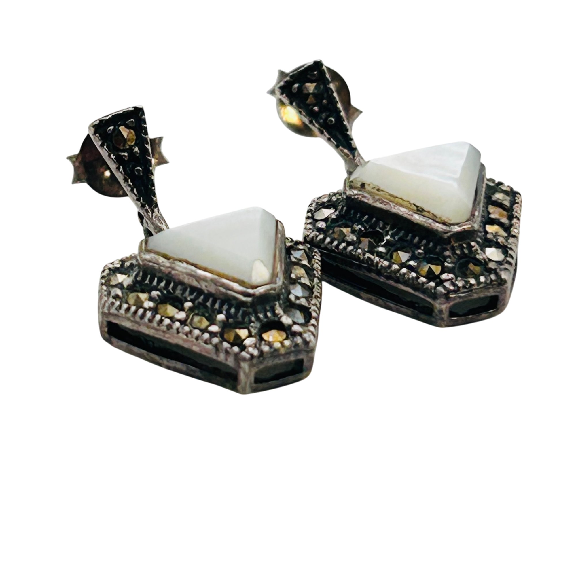 Sterling Mother Of Pearl And Marcasite Dangle Studs