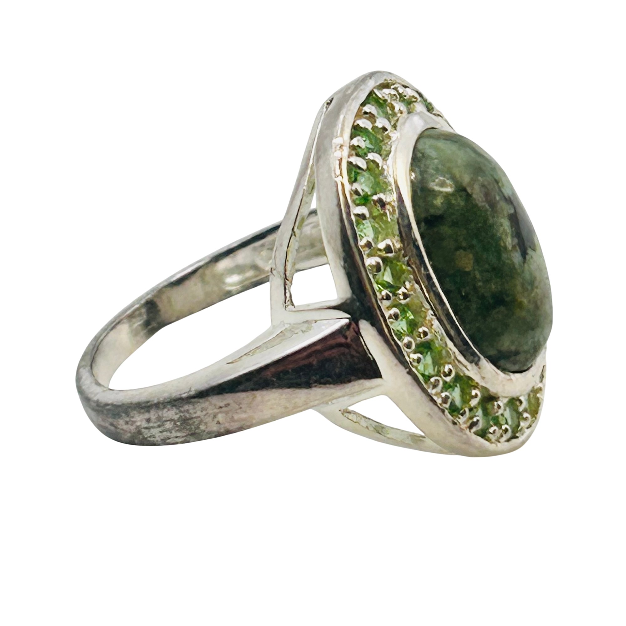STS green agate peridot Sterling oval ring. Size 8. 6.87g