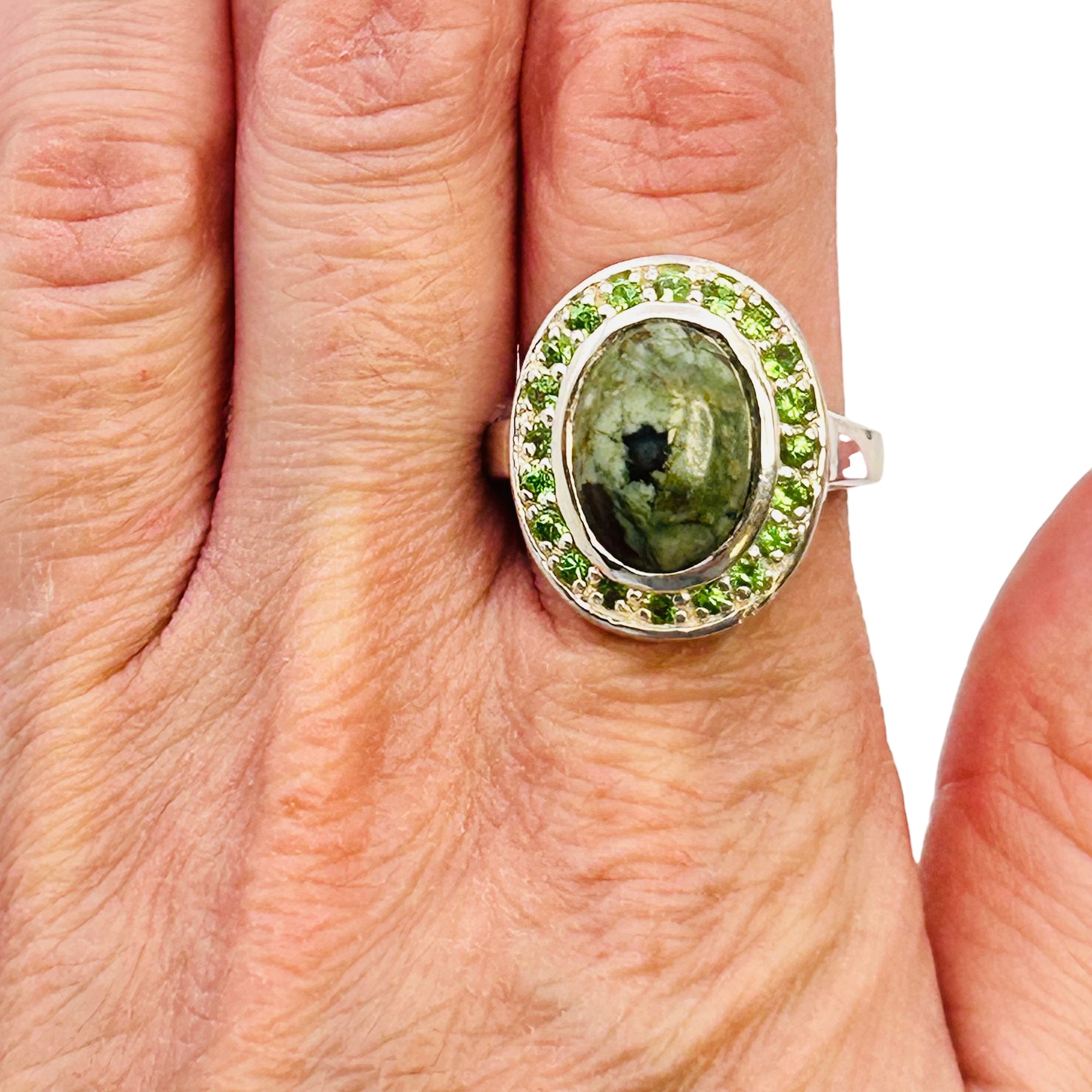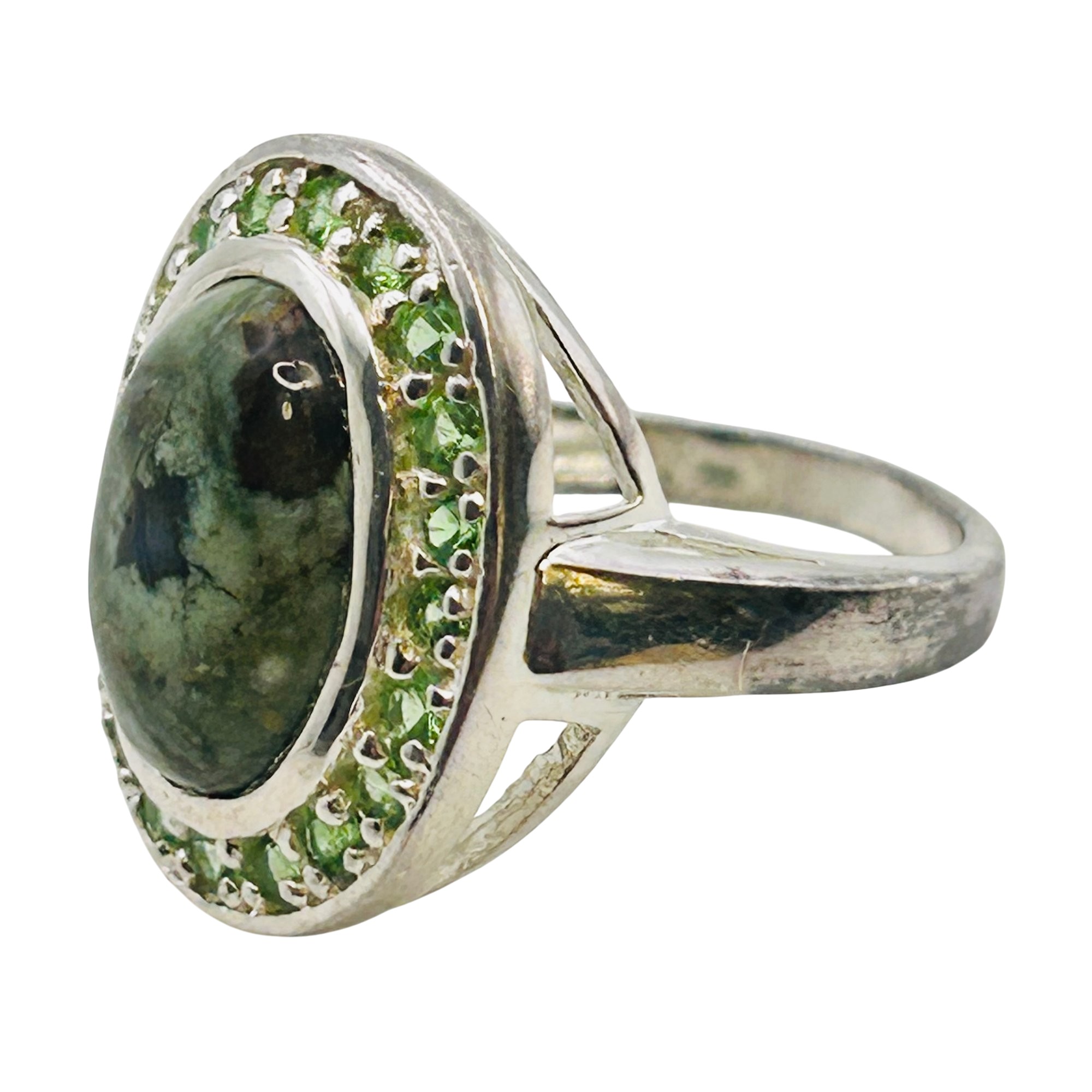 STS Sterling Green Agate And Peridot Oval Ring Size 8