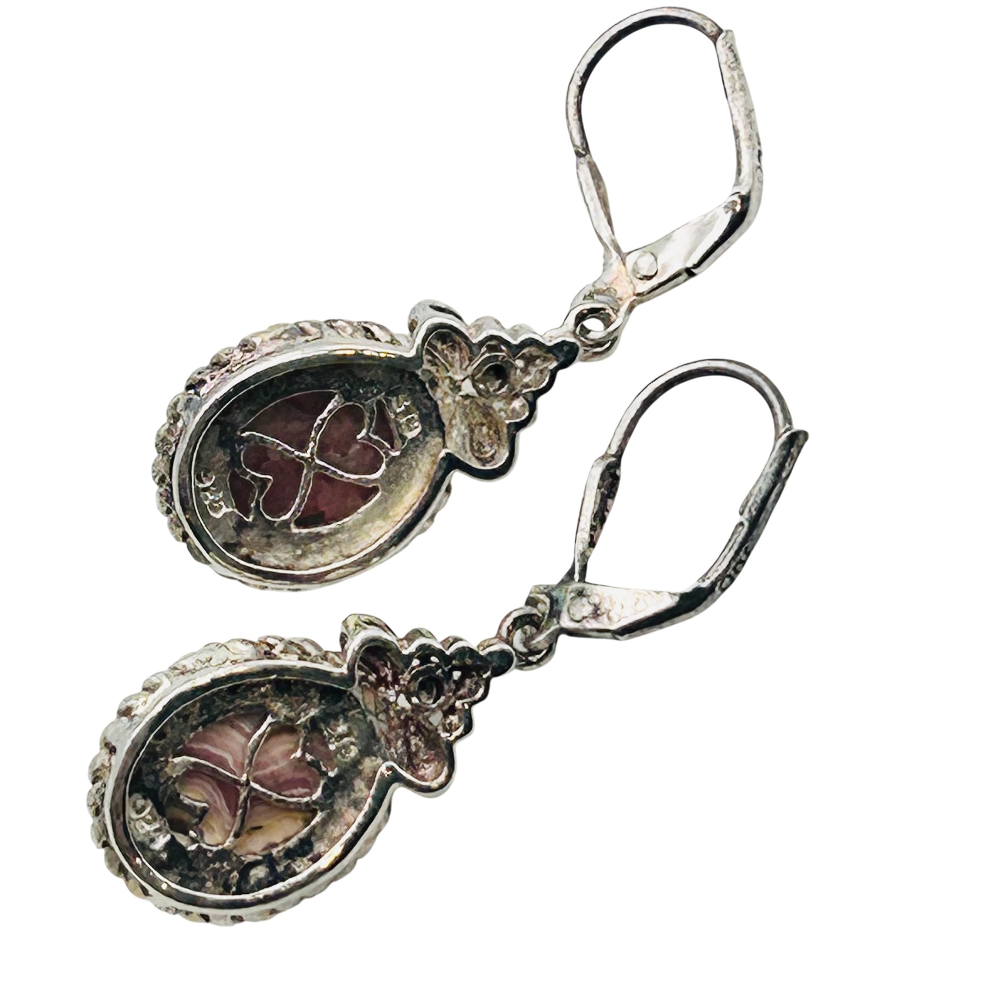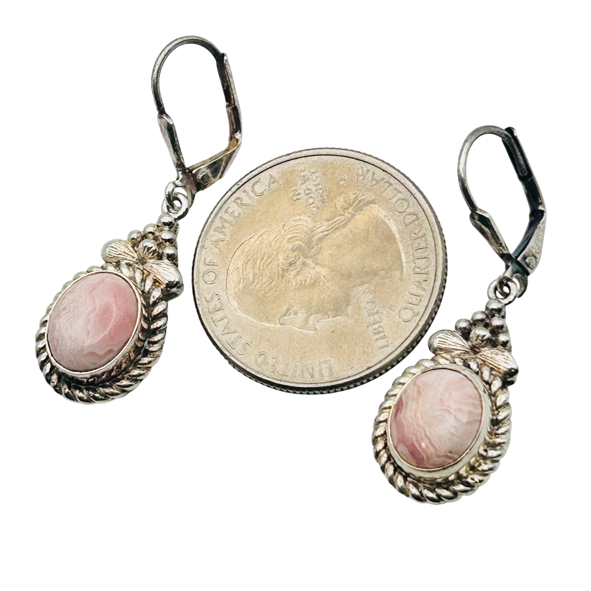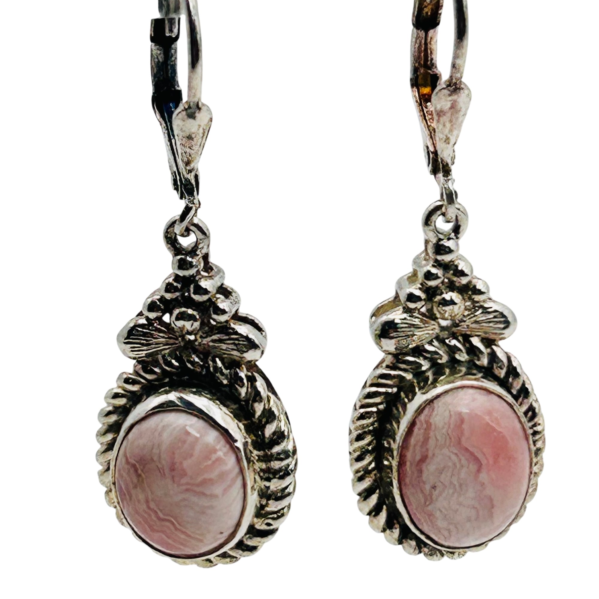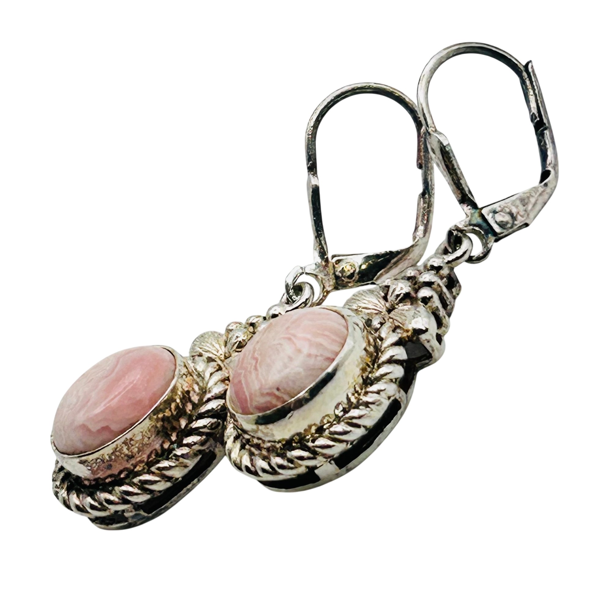 STS Sterling Rhodochrosite Lever Back Earrings 7.48g