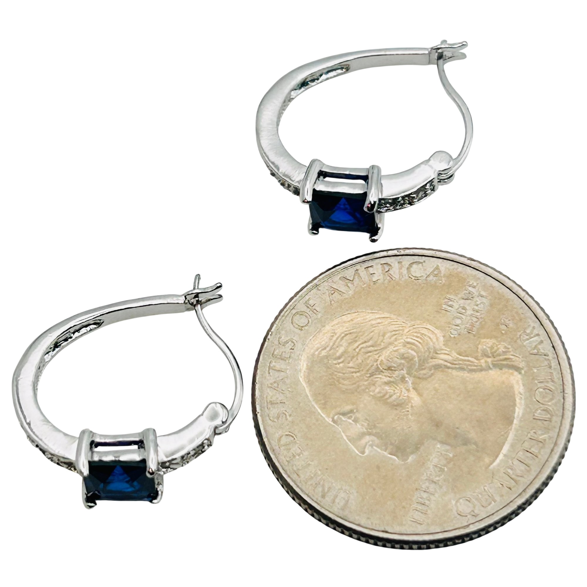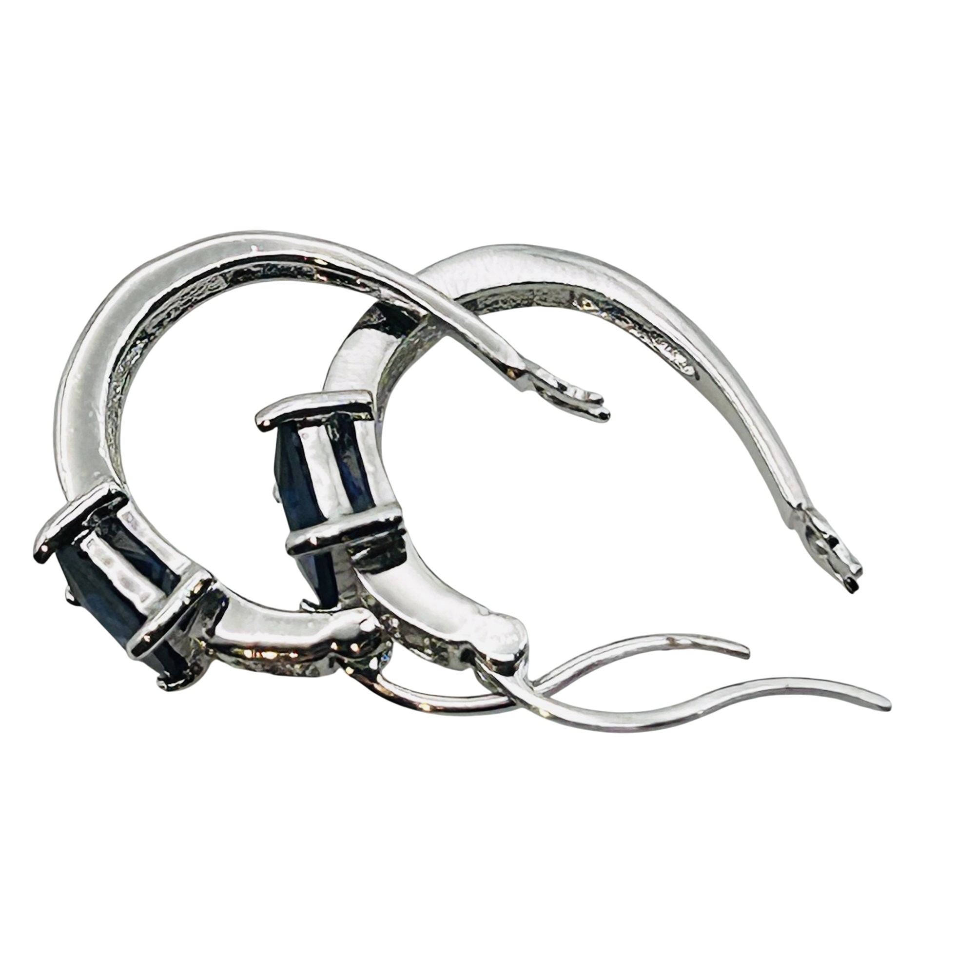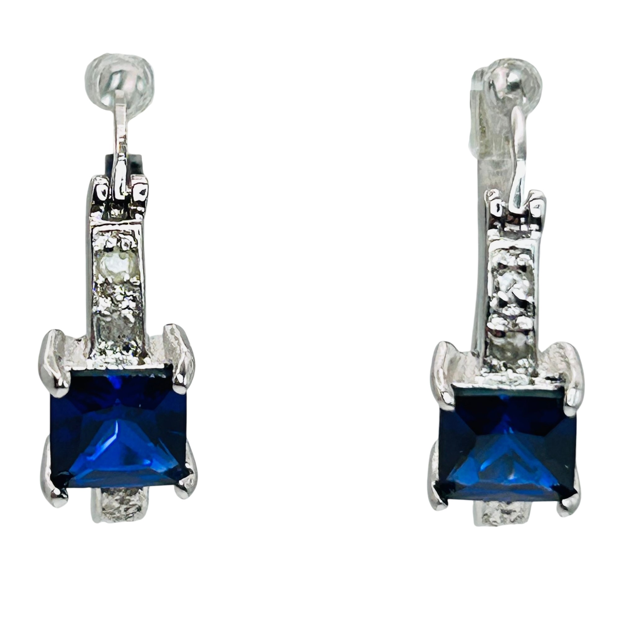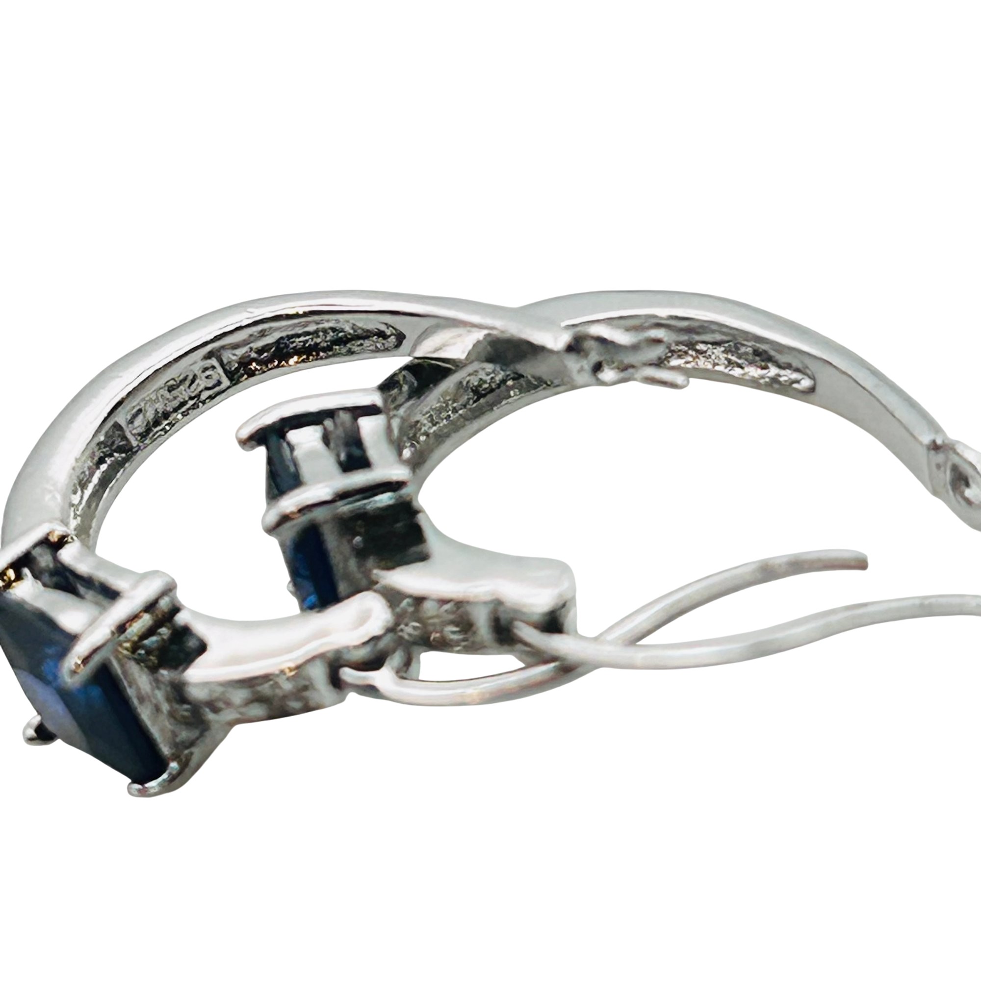 Sterling Sapphire and diamond accent hinged earrings 2.6g