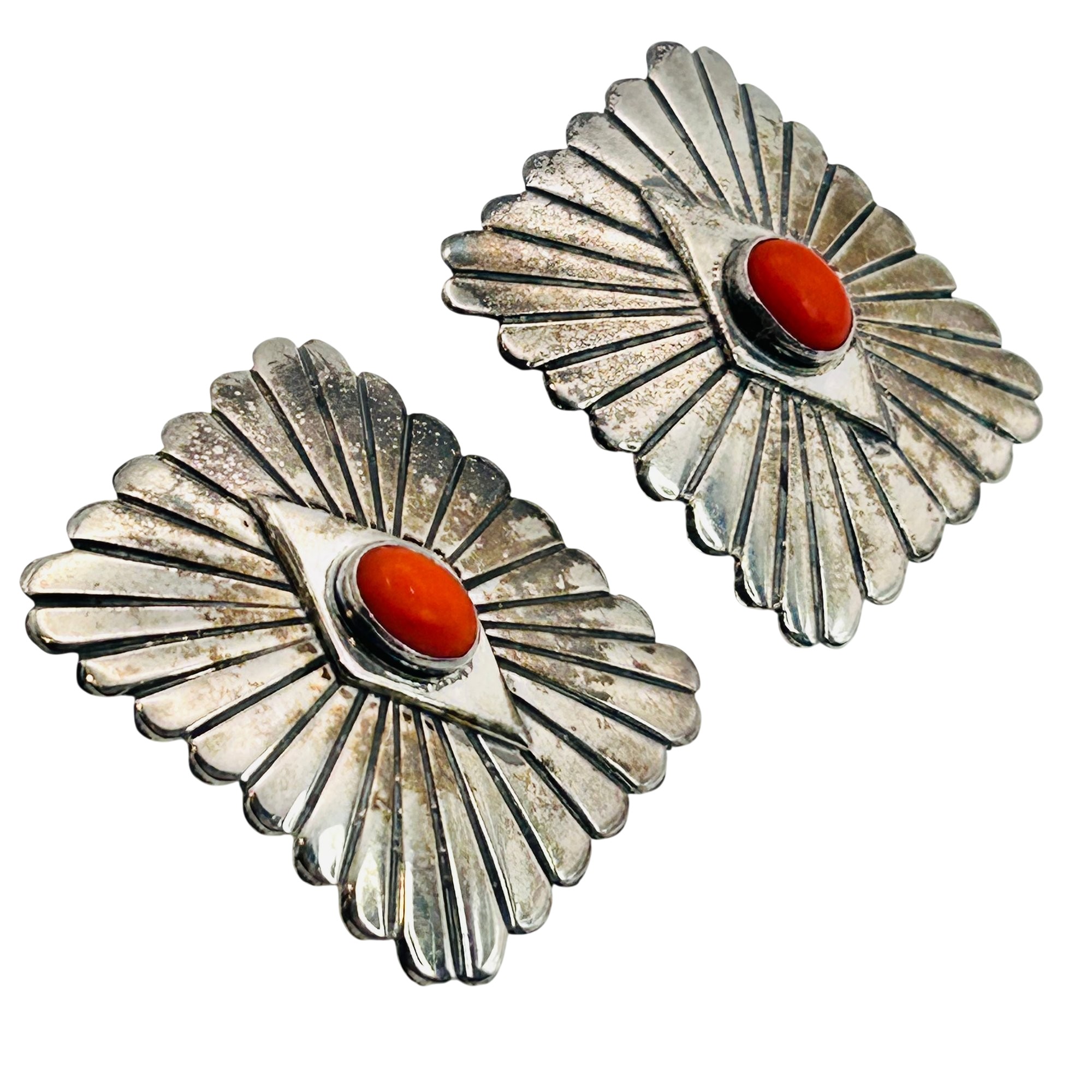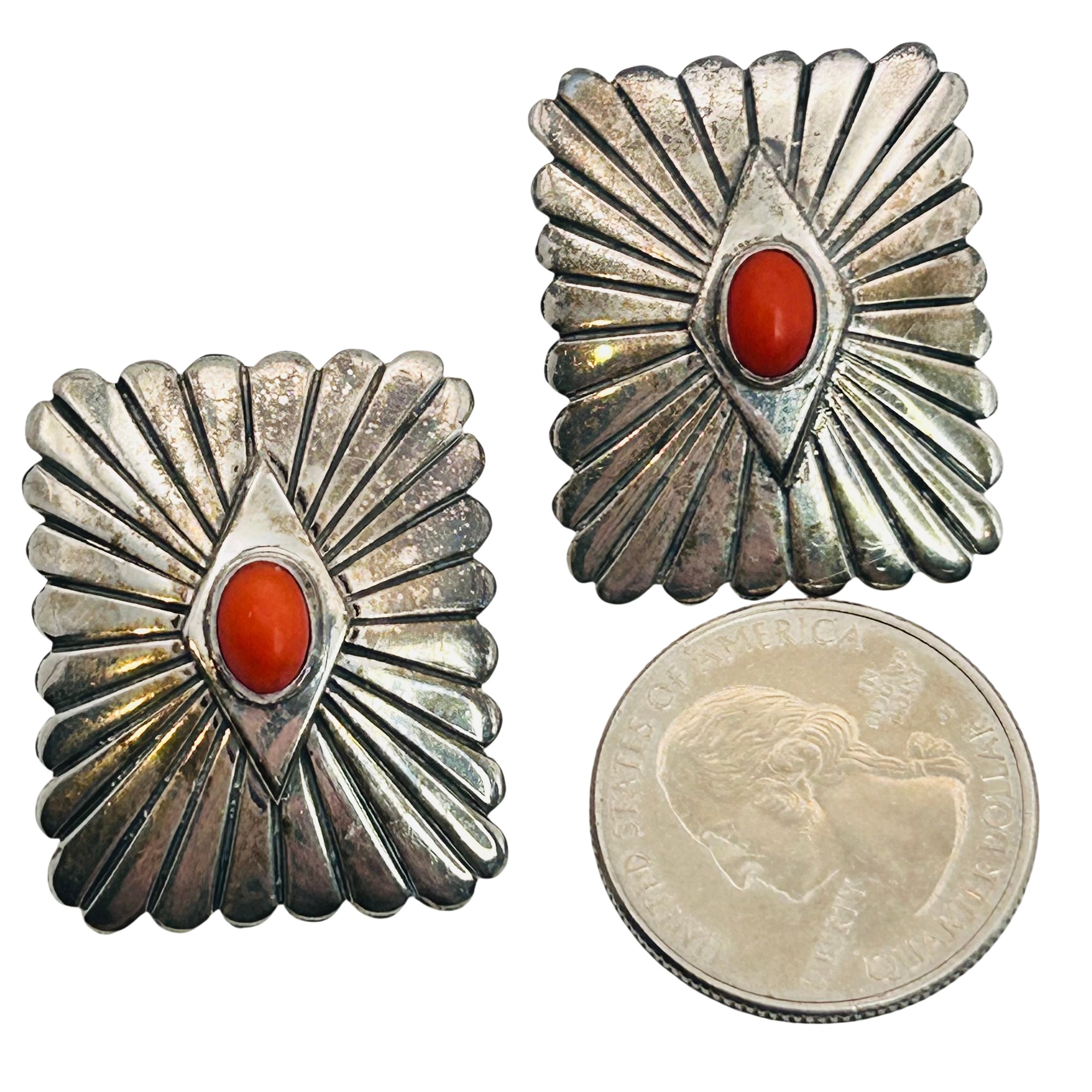 Sterling Vintage Southwest Coral square stud earrings 13.1g