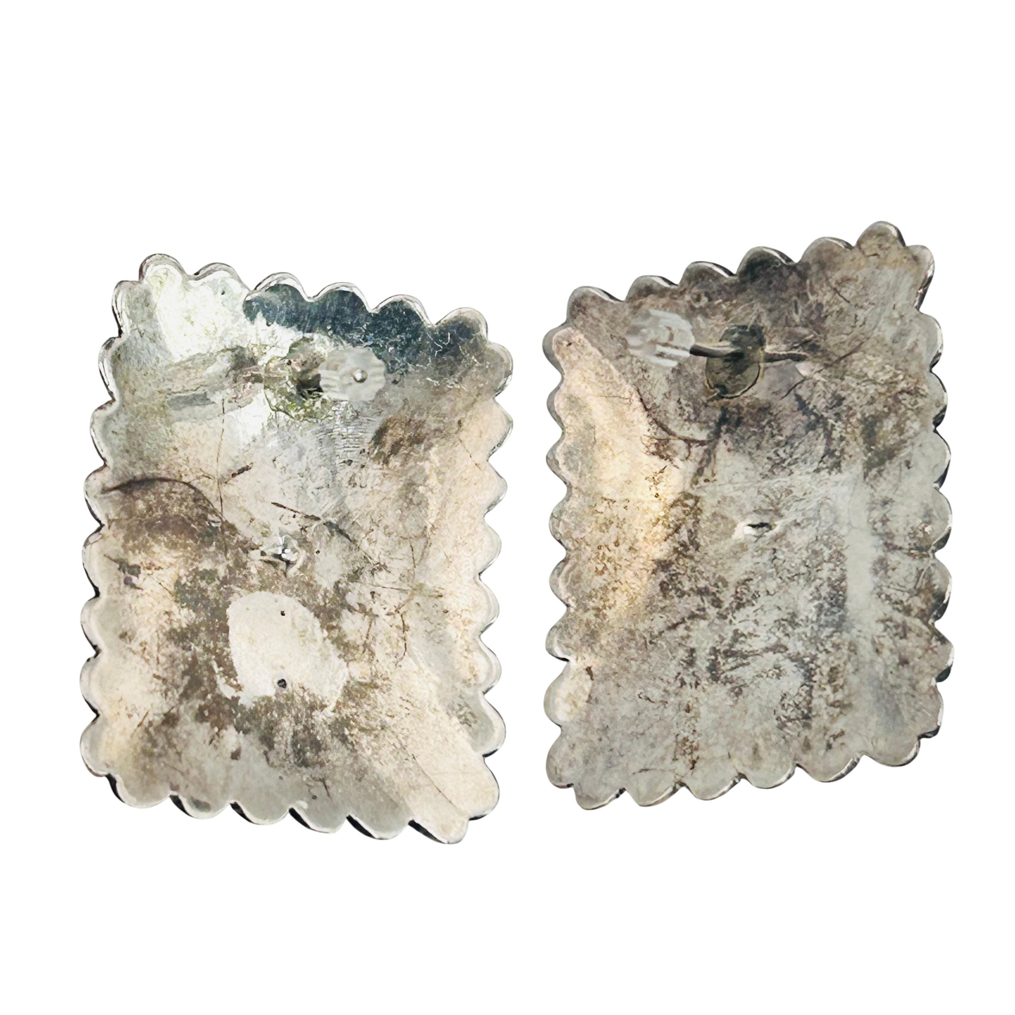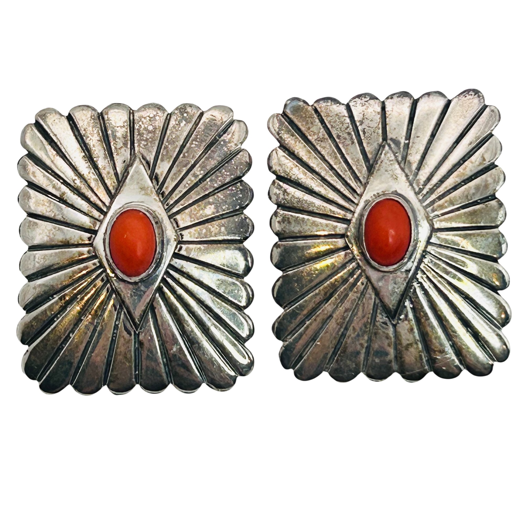 Sterling Vintage Southwest Coral Square Stud Earrings