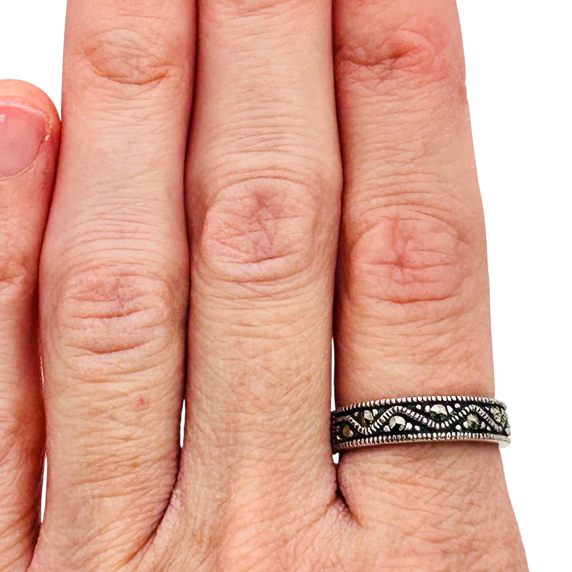 CW Sterling Marcasite Band Size 6.5