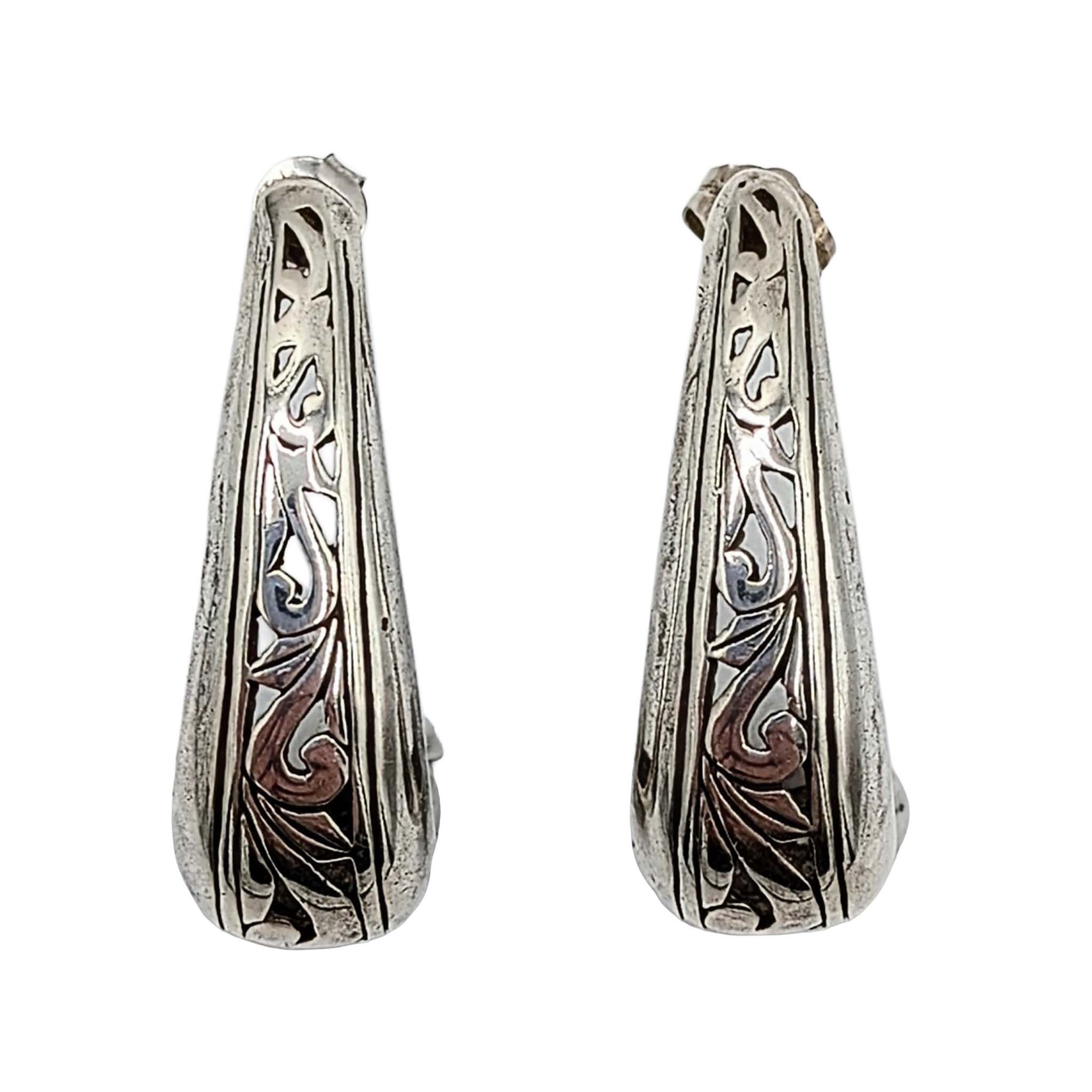 Sterling Silver Scroll Cut Long Cuff Stud Earrings. Signed Sterling. 6.3g