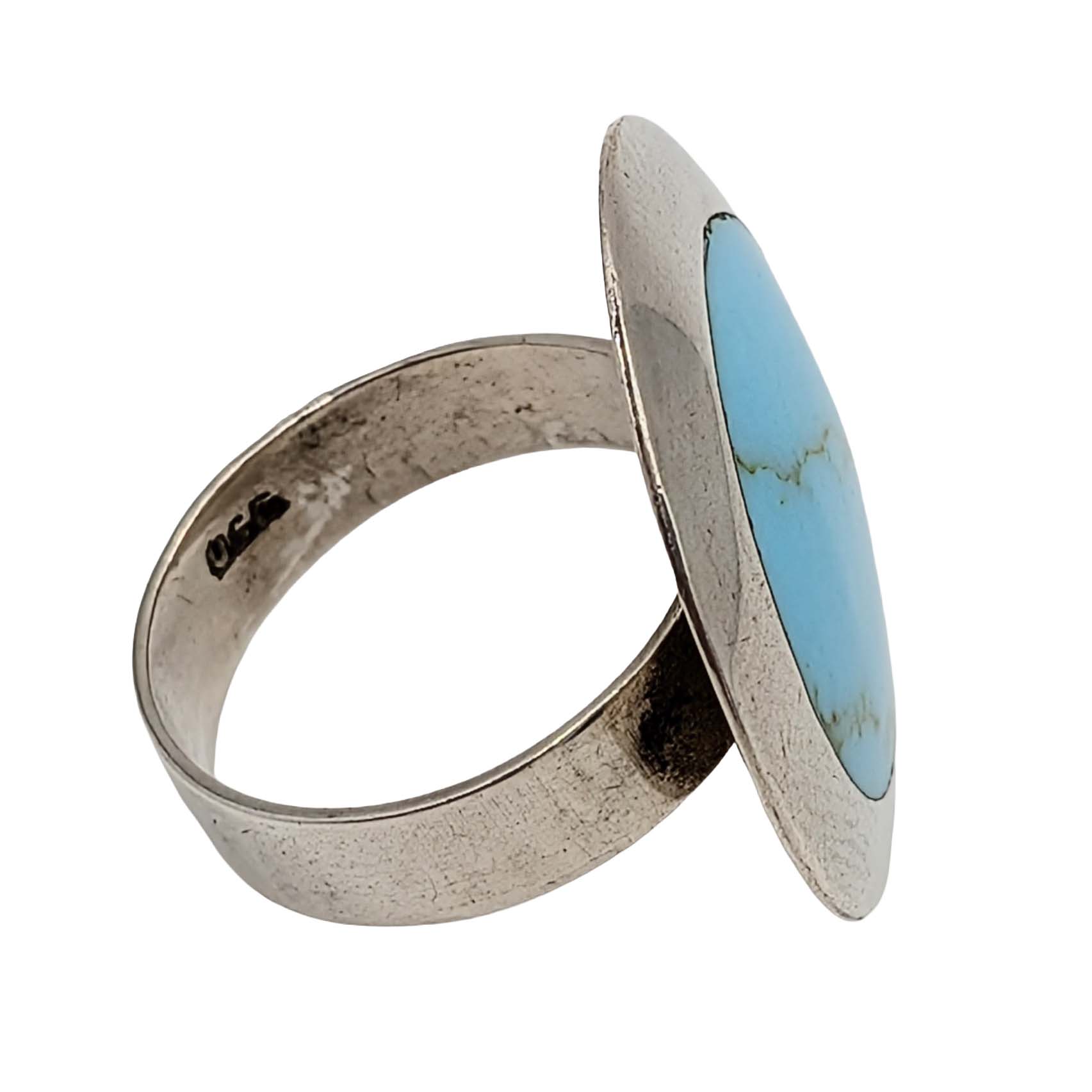 Sterling Silver, Turquoise Round Inlay Ring. Size 7.25. Signed 950. 5.3g